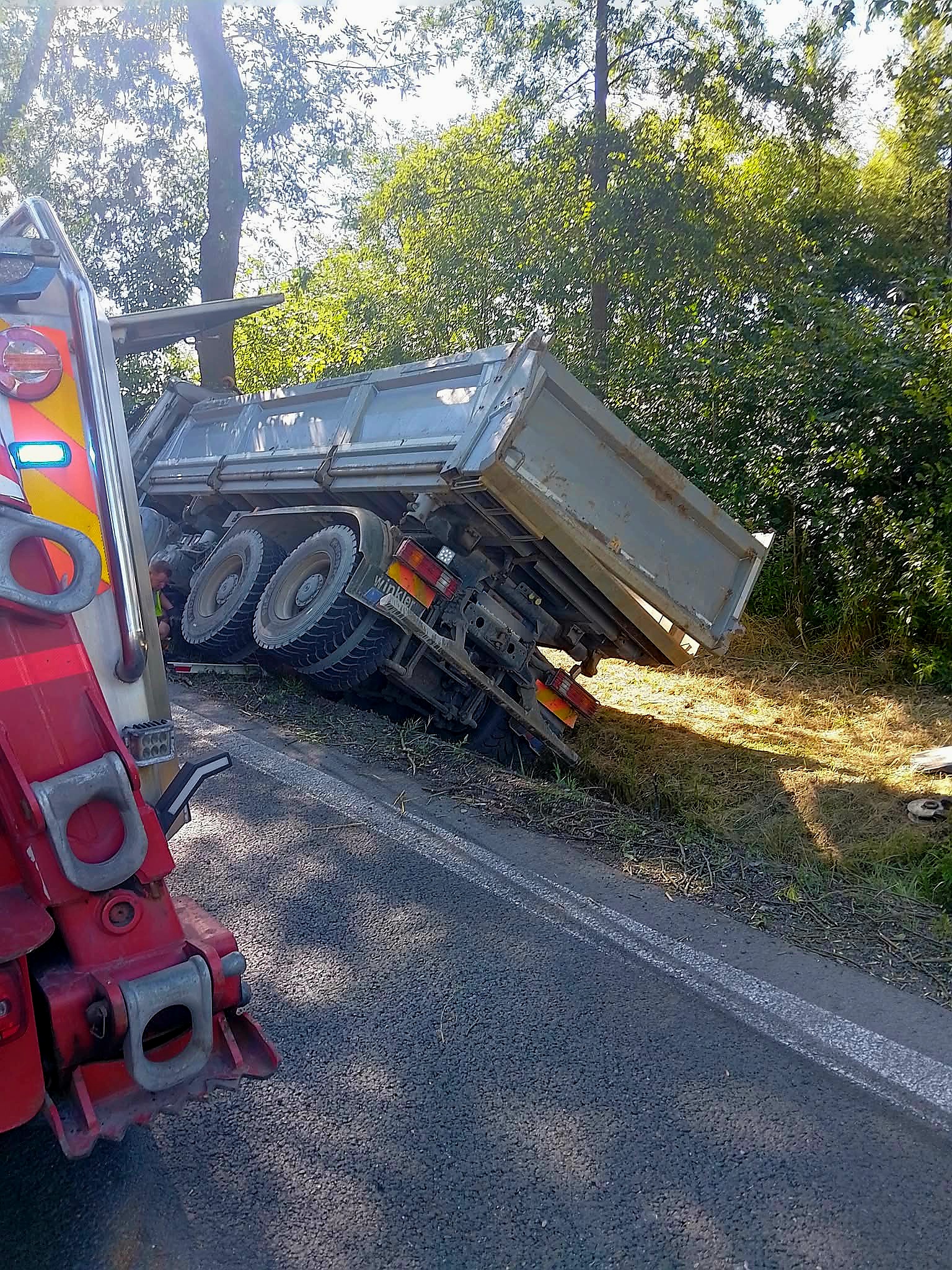 Na miejscu pracowały trzy zastępy straży pożarnej z Łącka i Płocka, policja, służba drogowa oraz firma Zyg-Pol z Gąbina. Na czas wyciągania ciężarówki z rowu, ruch na drodze krajowej nr 60 odbywał się wahadłowo.