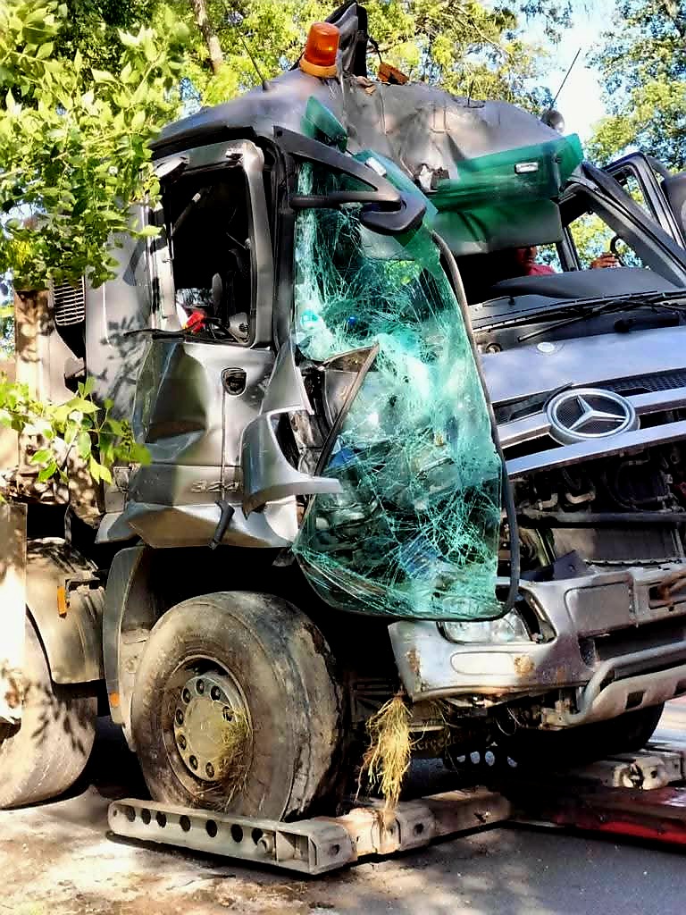 Do zdarzenia doszło około godziny 15:40 na drodze krajowej nr 60, na wysokości stacji benzynowej. Kierowca pojazdu ciężarowego marki mercedes nie zachował bezpiecznej odległości i chcąc uniknąć zderzenia z pojazdem poprzedzającym, zjechał do rowu i uderzył w drzewo.