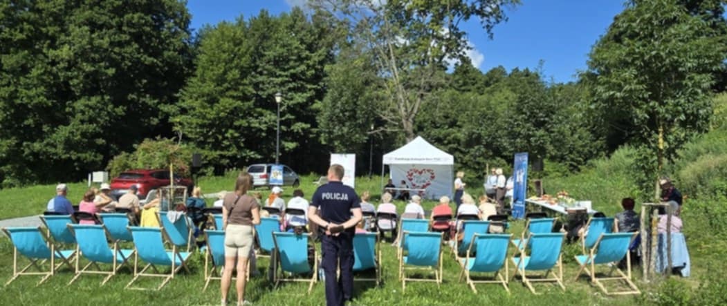 W trzeciej części wydarzenia policjanci z Komendy Powiatowej Policji w Gostyninie informowali Seniorów o szkodliwości nadużywania alkoholu i środków odurzających. Poruszyli również bardzo ważny temat bezpieczeństwa w sieci. Dodatkowo Policjant ruchu drogowego informował o skutkach prawnych kierowania pojazdami mechanicznymi na drodze publicznej pod działaniem alkoholu i środków odurzających. Seniorzy mogli skorzystać z alko- i narkogogli na specjalnie przygotowanym torze, które emitowały stan po spożyciu alkoholu i środków odurzających. Na przygotowanym stoisku można było znaleźć broszury profilaktyczne. Seniorzy również w rozmowach kuluarowych poruszali tematy związane z profilaktyką. Między innymi nawiązano do różnych uzależnień w tym od substancji psychoaktywnych oraz uzależnień behawioralnych. Seniorzy dobrze wiedzą, że uzależnienia od substancji obejmują m.in. alkohol, narkotyki, nikotynę, leki, a uzależnienia behawioralne dotyczą kompulsywnych zachowań, jak hazard, zakupy, gry komputerowe, Internet czy praca. Wszystkie te informacje, skutki uzależnień oraz numery telefonów do ekspertów, Seniorzy znaleźli w broszurach, które zostały udostępnione w punkcie profilaktycznym. Na koniec Joanna Syska poprowadziła Disco Dance i tańce integracyjne.
