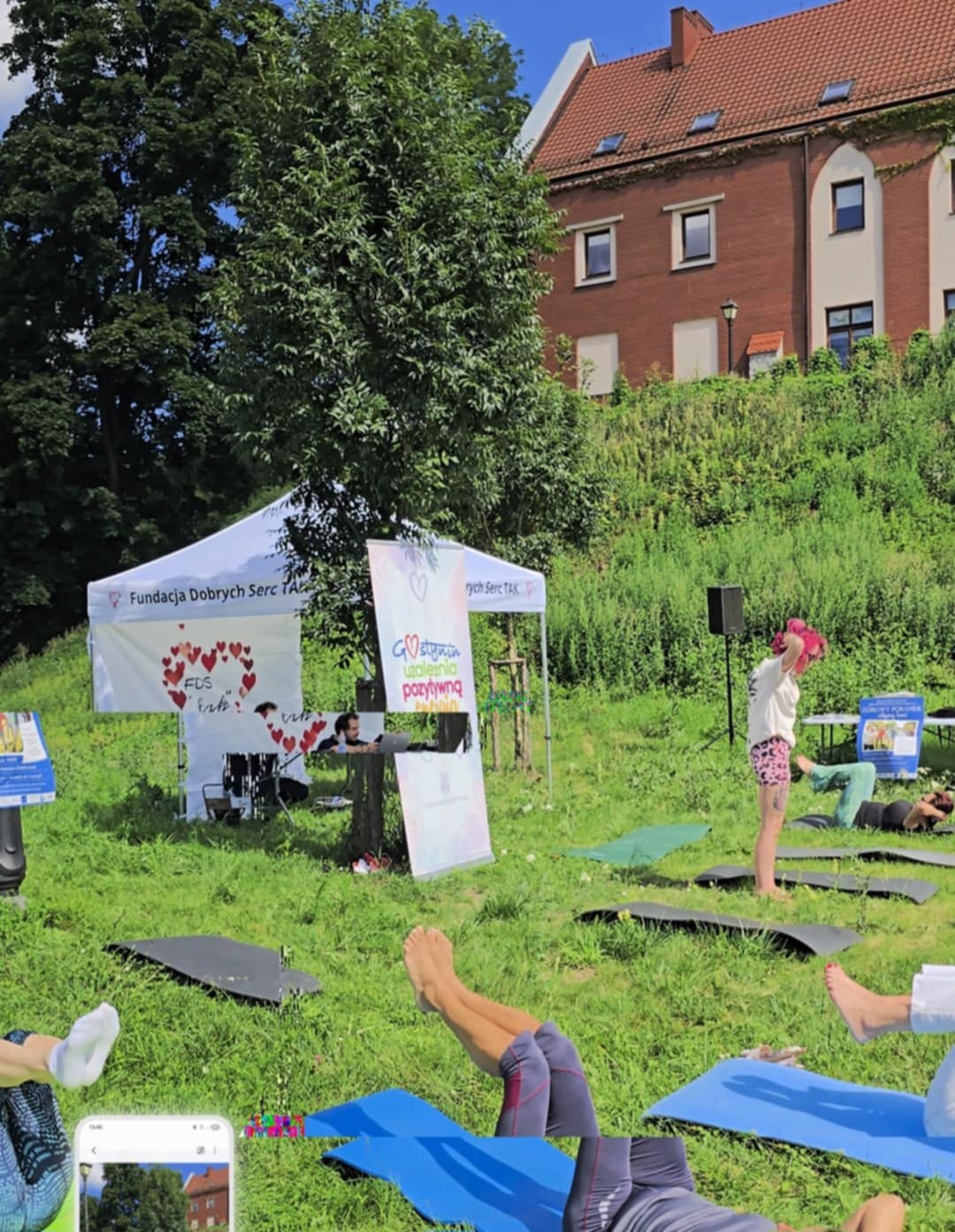 Działanie rozpoczęto aerobikową rozgrzewką, która poprowadziła Joanna Renata Syska. Następnie pilates poprowadziła Dominika Alicja Ciesielska Armata z Pilates Happy Hour.