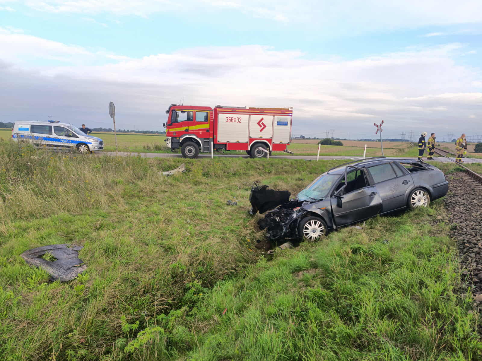 Po dotarciu na miejsce zdarzenia służb, kierujący samochodem osobowym znajdował się pod pojazdem. Strażacy przy użyciu sprzętu pneumatycznego wydobyli przytomnego, ale ciężko rannego kierowcę spod wraku pojazdu. Mężczyzna w stanie zagrażającym życiu został przekazany zespołowi ratownictwa medycznego i przetransportowany do szpitala. Szynobusem podróżowało 12 osób - nic im się nie stało.