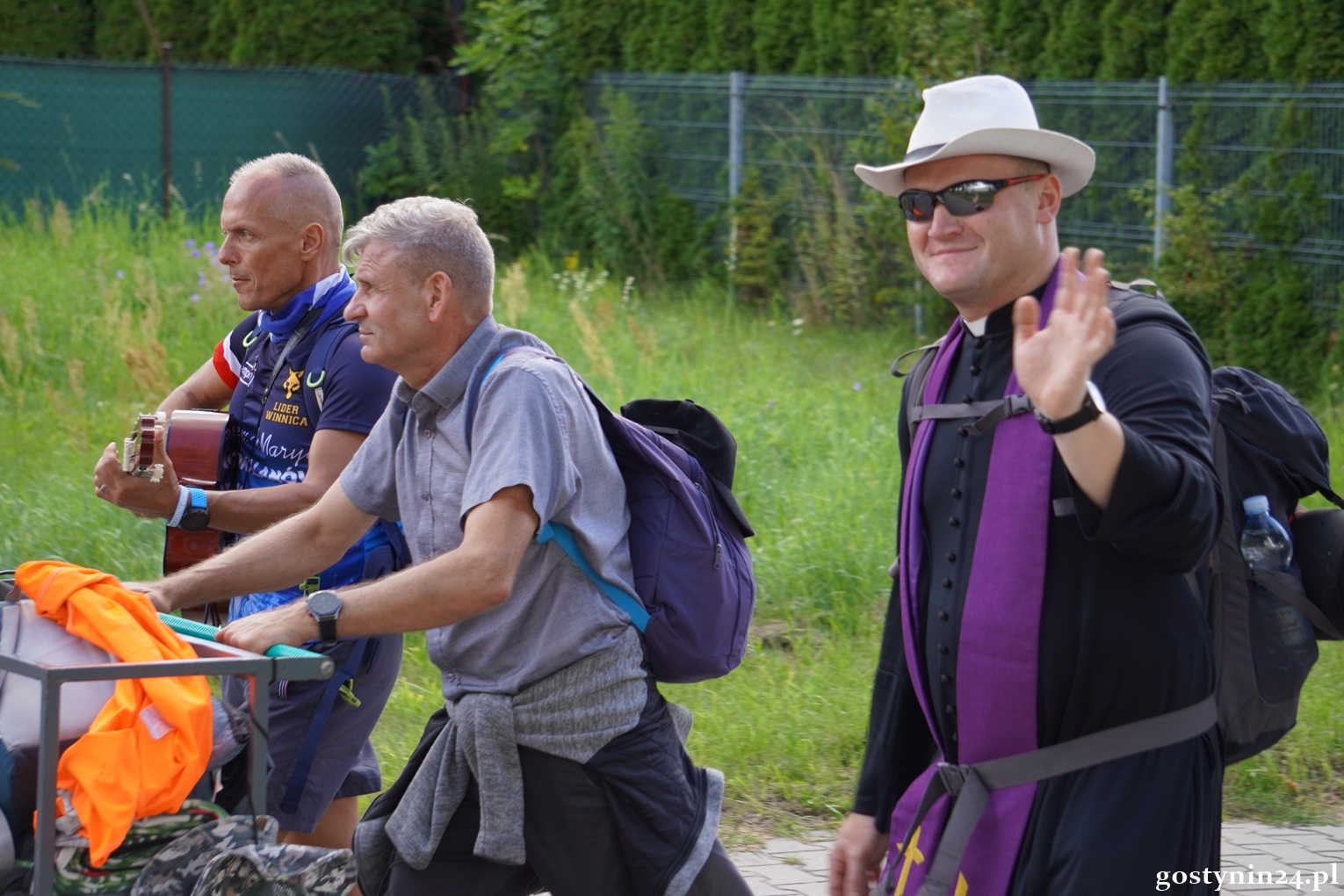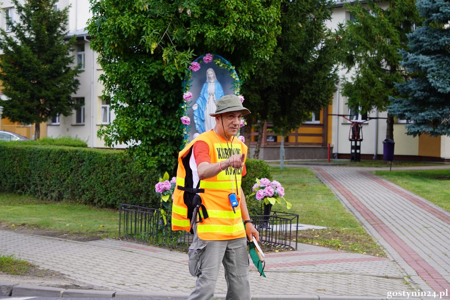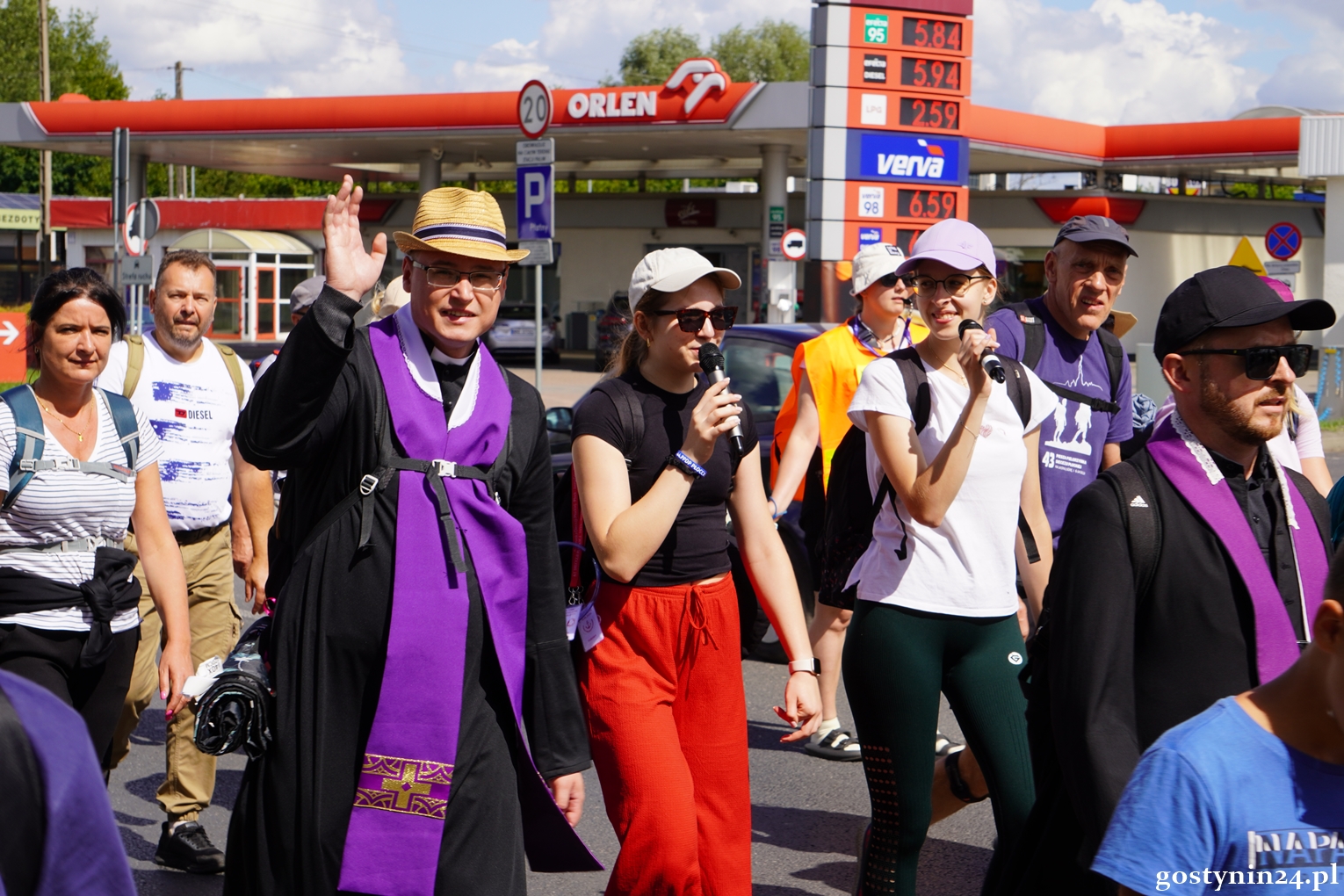 W Gostyninie pątnicy zatrzymują się na obiad. W tym roku jako pierwsi do naszego miasta weszli płocczanie z grupy biało-czerwonej. Gostyninianie wędrują w grupie żółtej połączonej z zieloną z Sierpca i jako gospodarze zamykali dziś stawkę. Przewodnikiem grupy jest ks. Radosław Pilśnik. Pierwszy nocleg tradycyjnie w Sokołowie. Jutro z rana pielgrzymi wyruszą w stronę Głogowca i Kutna. Na Jasną Górę dotrą 14 sierpnia.