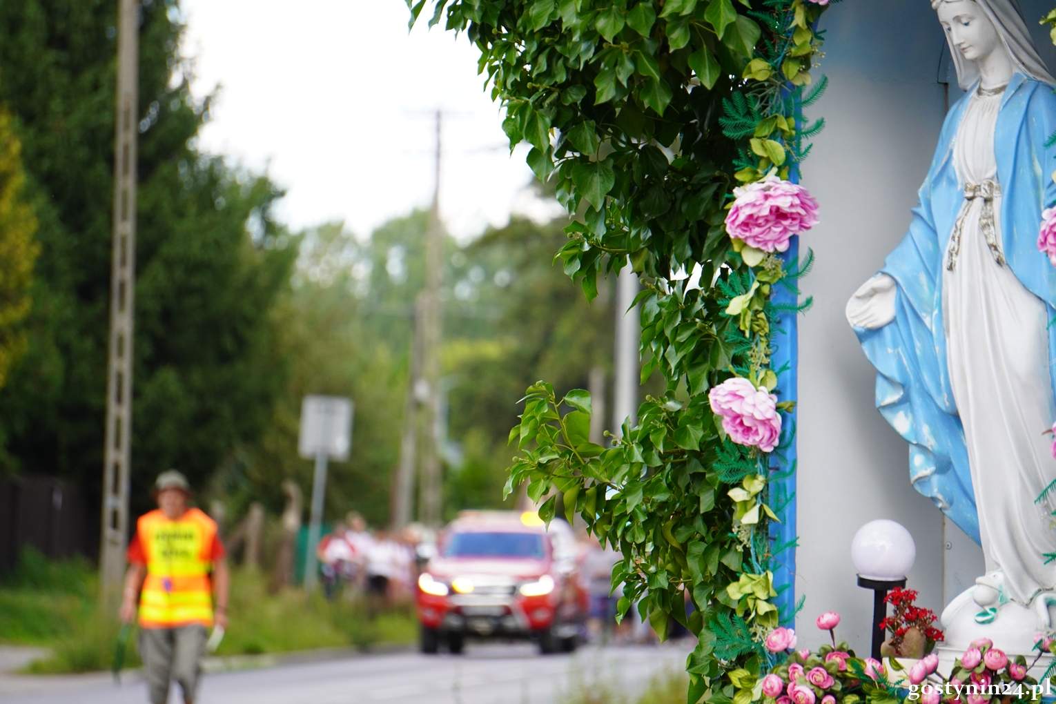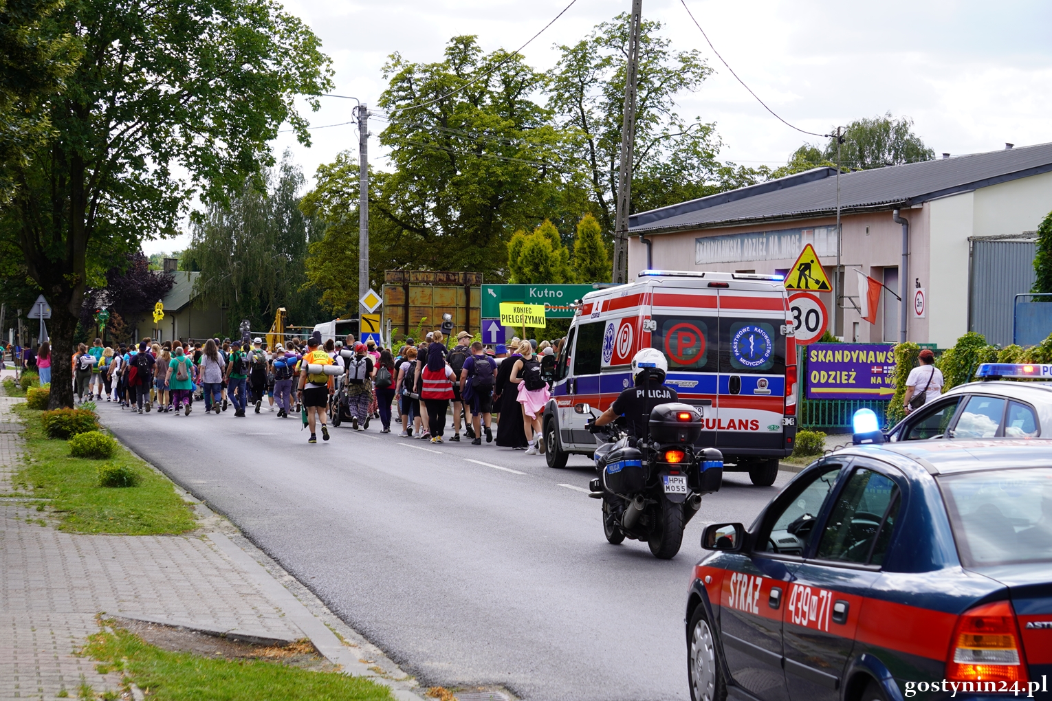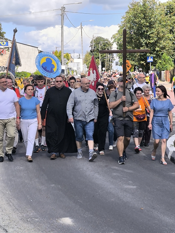 W Gostyninie pątnicy zatrzymują się na obiad. W tym roku jako pierwsi do naszego miasta weszli płocczanie z grupy biało-czerwonej. Gostyninianie wędrują w grupie żółtej połączonej z zieloną z Sierpca i jako gospodarze zamykali dziś stawkę. Przewodnikiem grupy jest ks. Radosław Pilśnik. Pierwszy nocleg tradycyjnie w Sokołowie. Jutro z rana pielgrzymi wyruszą w stronę Głogowca i Kutna. Na Jasną Górę dotrą 14 sierpnia.