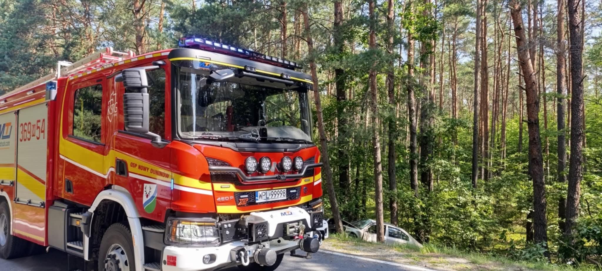 Do zdarzenia doszło na DW573 na odcinku Lucień-Nowy Duninów. Samochód osobowy marki skoda dachował i zatrzymał się w przydrożnym lesie. Osoby podróżujące autem opuściły pojazd o własnych siłach, jednak 20-letnia kobieta doznała lekkich obrażeń ciała. Zespół ratownictwa medycznego zajął się poszkodowaną na miejscu. Na czas akcji służb, droga wojewódzka nr 573 była zablokowana.