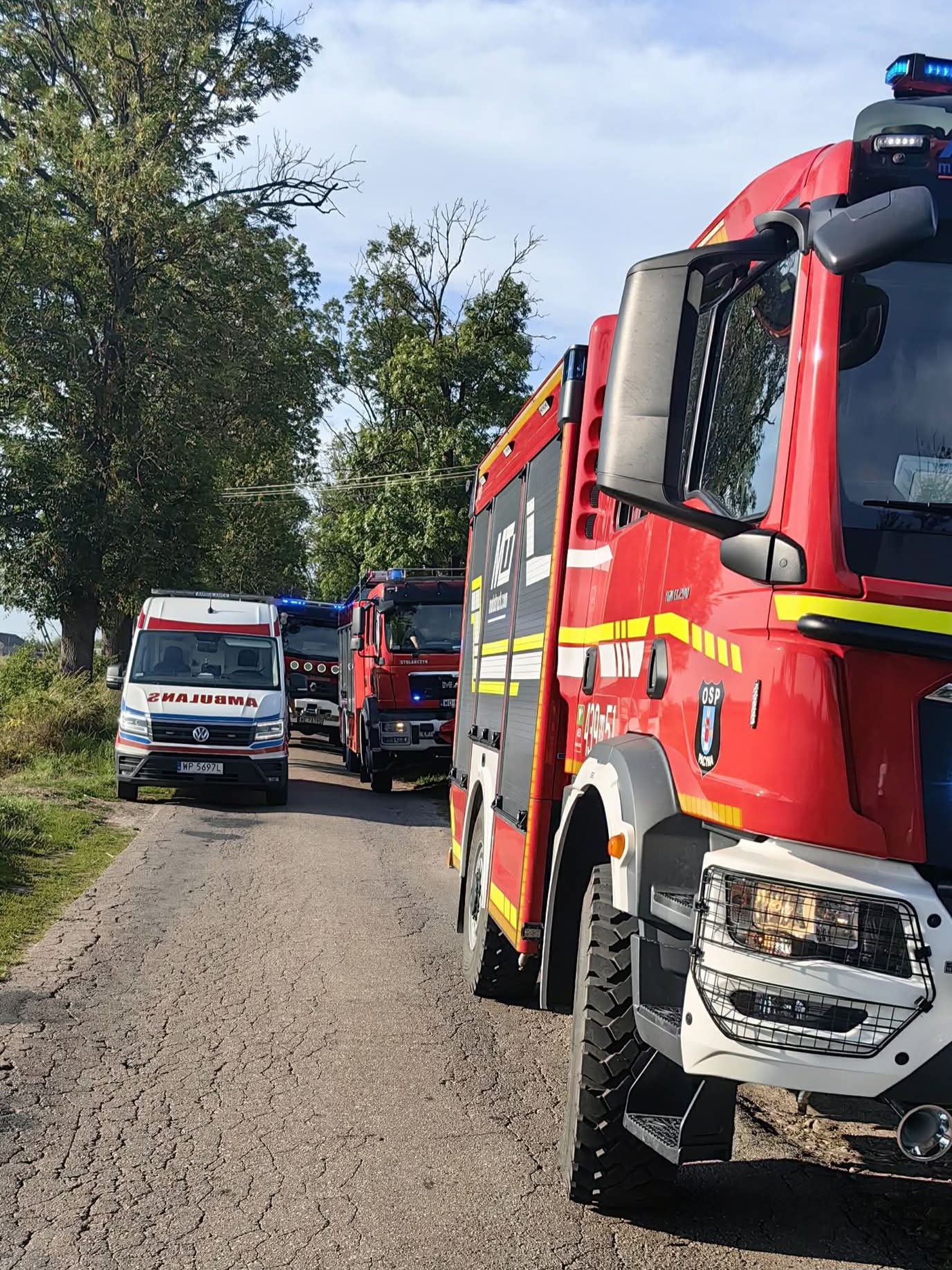 Na miejscu pracowały dwa zastępy PSP Gostynin, OSP Pacyna, LPR, zespół ratownictwa medycznego oraz policja.