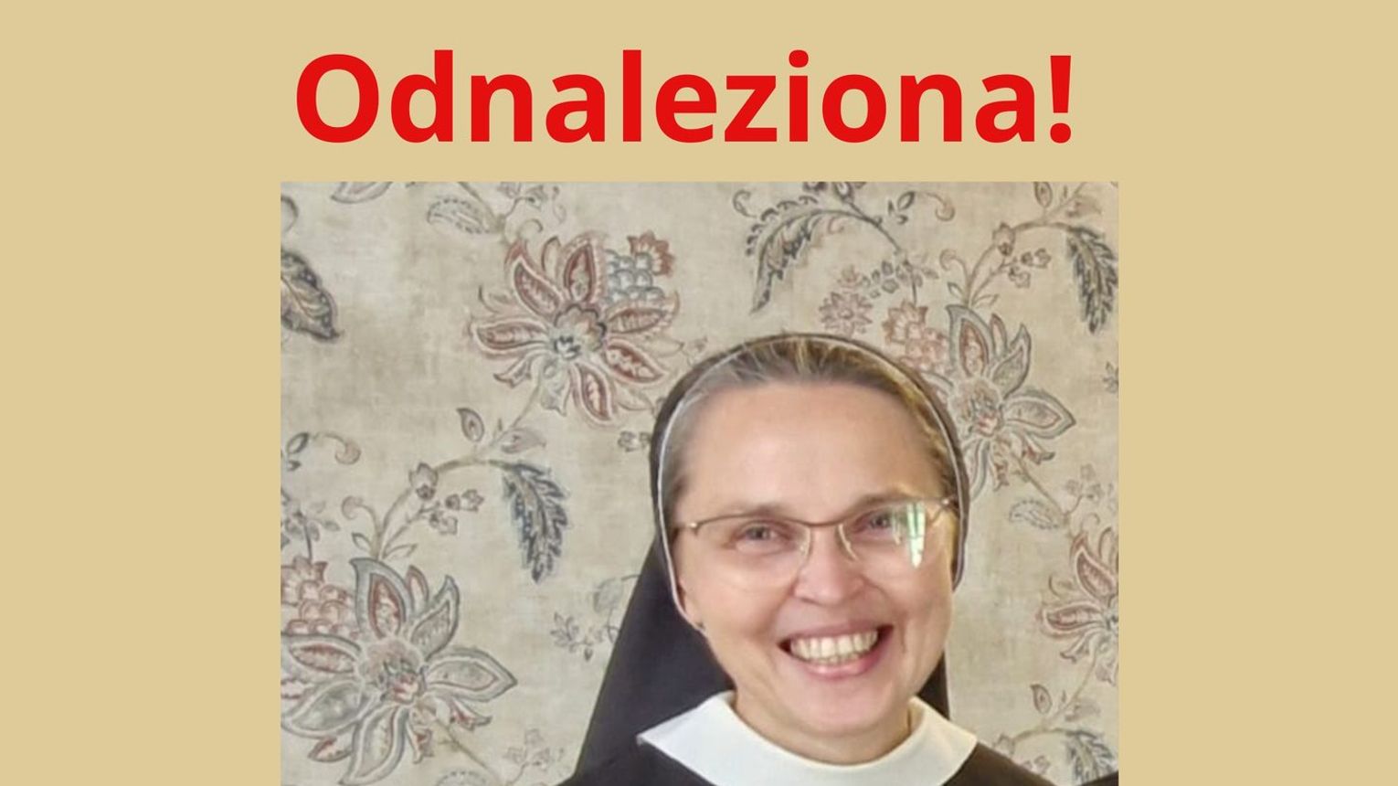 Siostry Pasjonistki informują, że ich siostra Dorota Janiszewska została odnaleziona.