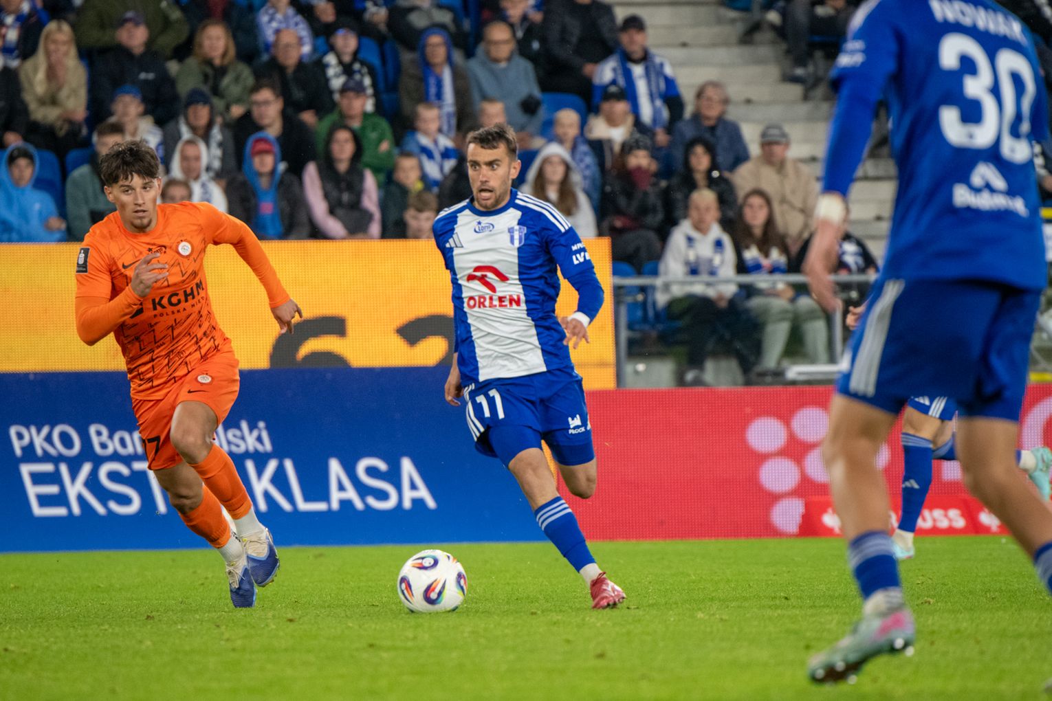 Po zmianie stron od początku było widać determinację naszego zespołu do zmiany losów meczu. W 56. ręką w polu karnym zagrał Michał Nalepa i sędzia wskazał na wapno. Do piłki podszedł kapitan Sekulski i pewnym strzałem dał nam wyrównanie! Po kilku minutach Nowak mógł zaskoczyć bramkarza, kiedy kopnął kozłującą przed linią końcową piłkę, ale ta poszybowała minimalnie za daleko. Później niebiesko-biało-niebiescy zbudowali sobie optyczną przewagę, jednak przed atakami w pole karne skutecznie bronili się goście. Nieco ożywienia wniosły zmiany Matchoi’a Djaló i Krystiana Pomorskiego. który posłał dwa groźne dośrodkowania na piąty metr. Po ładnej akcji w 67. minucie z pierwszej piłki uderzał Jime, ale wyraźnie się pomylił, natomiast 12 minut później płasko przy bliższym słupku przymierzył Nowak, ale zabrakło mu w tym uderzeniu mocy. W końcówce regulaminowego czasu gry okazje mieli Djaló (główkował nad poprzeczką), Pacheco (sprzed pola karnego bez przyjęcia, za wysoko), czy Nowak (po dryblingu na jedenastym metrze, chybił). W pierwszej z trzech doliczonych ze stojącej piłki wyraźnie przestrzelił rezerwowy dziś Iban Salvador, który odkuł się jednak w ostatniej akcji meczu! Reprezentant Gwinei Równikowej zebrał wybitą przed pole karne piłkę, uderzył z półwoleja i mimo próby interwencji Hładuna piłka zatrzepotała w siatce, a bohater Salvador utonął w objęciach kolegów!
