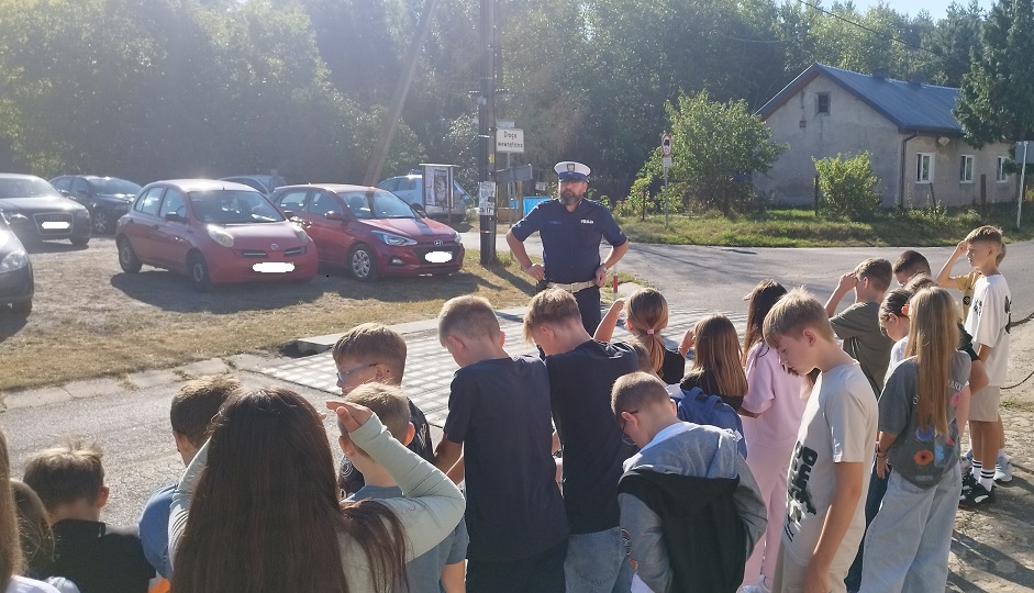 Podczas spotkania policjanci omówili kluczowe zasady i przepisy dotyczące bezpieczeństwa w ruchu drogowym, które pomagają uczniom bezpiecznie poruszać się po drogach.