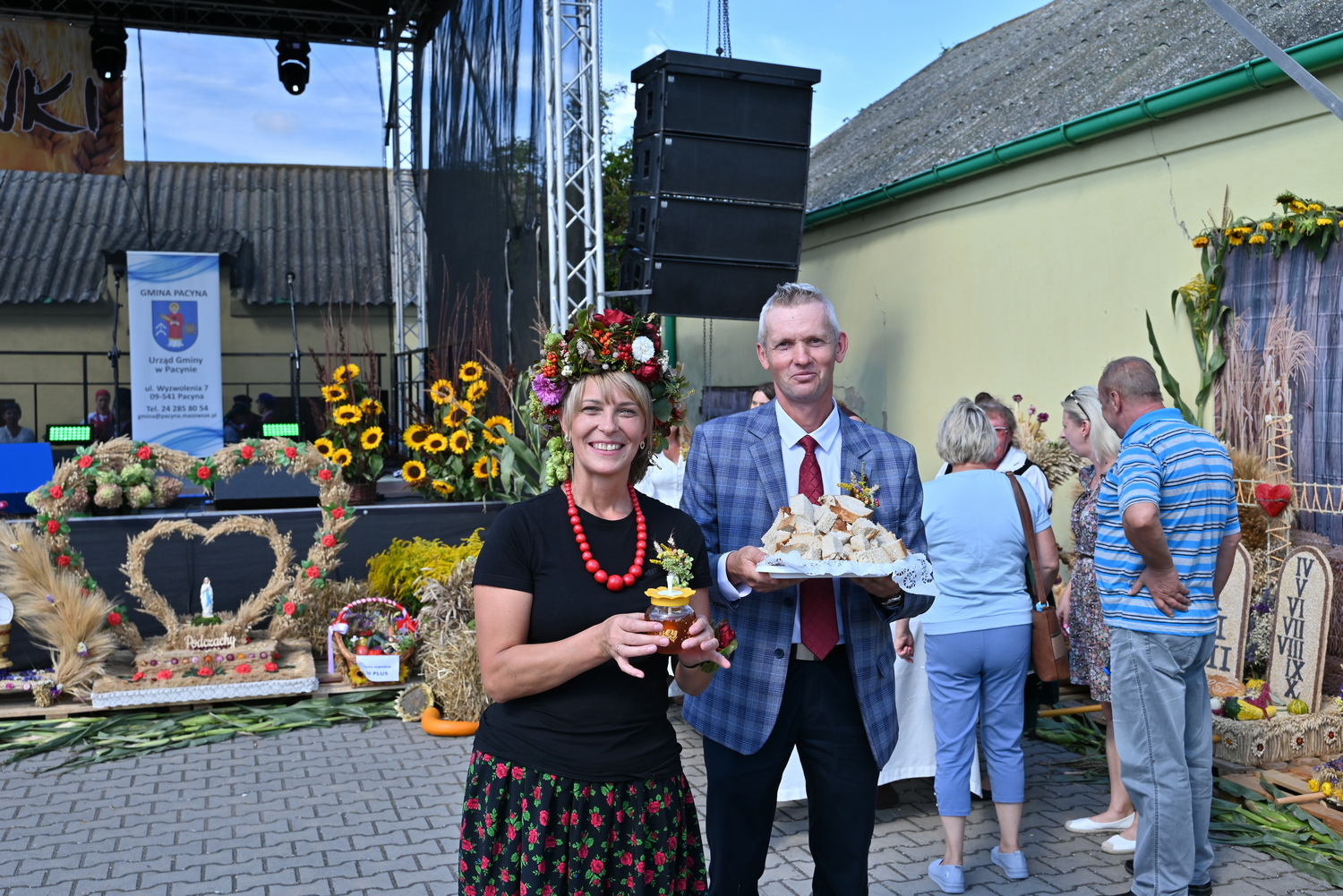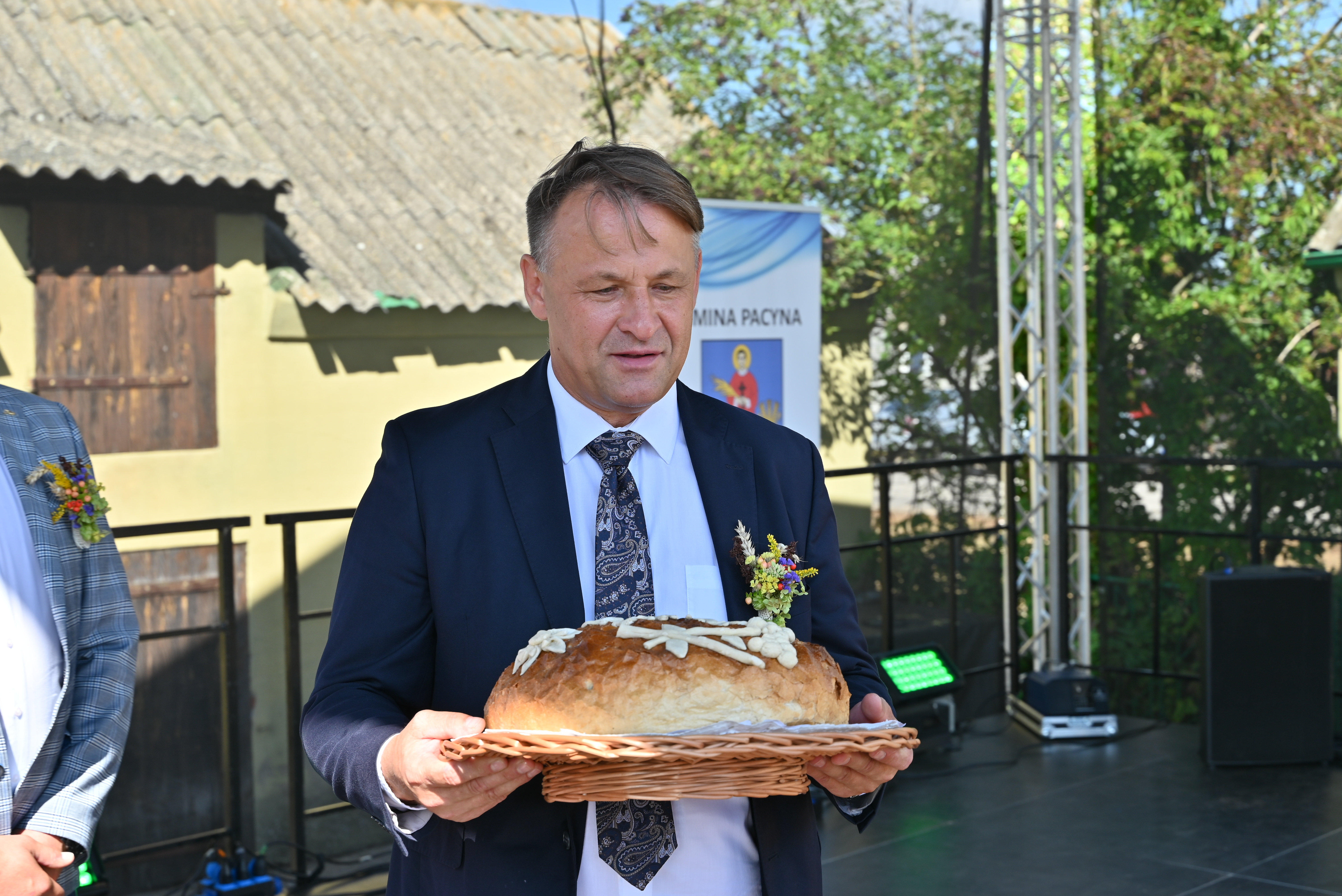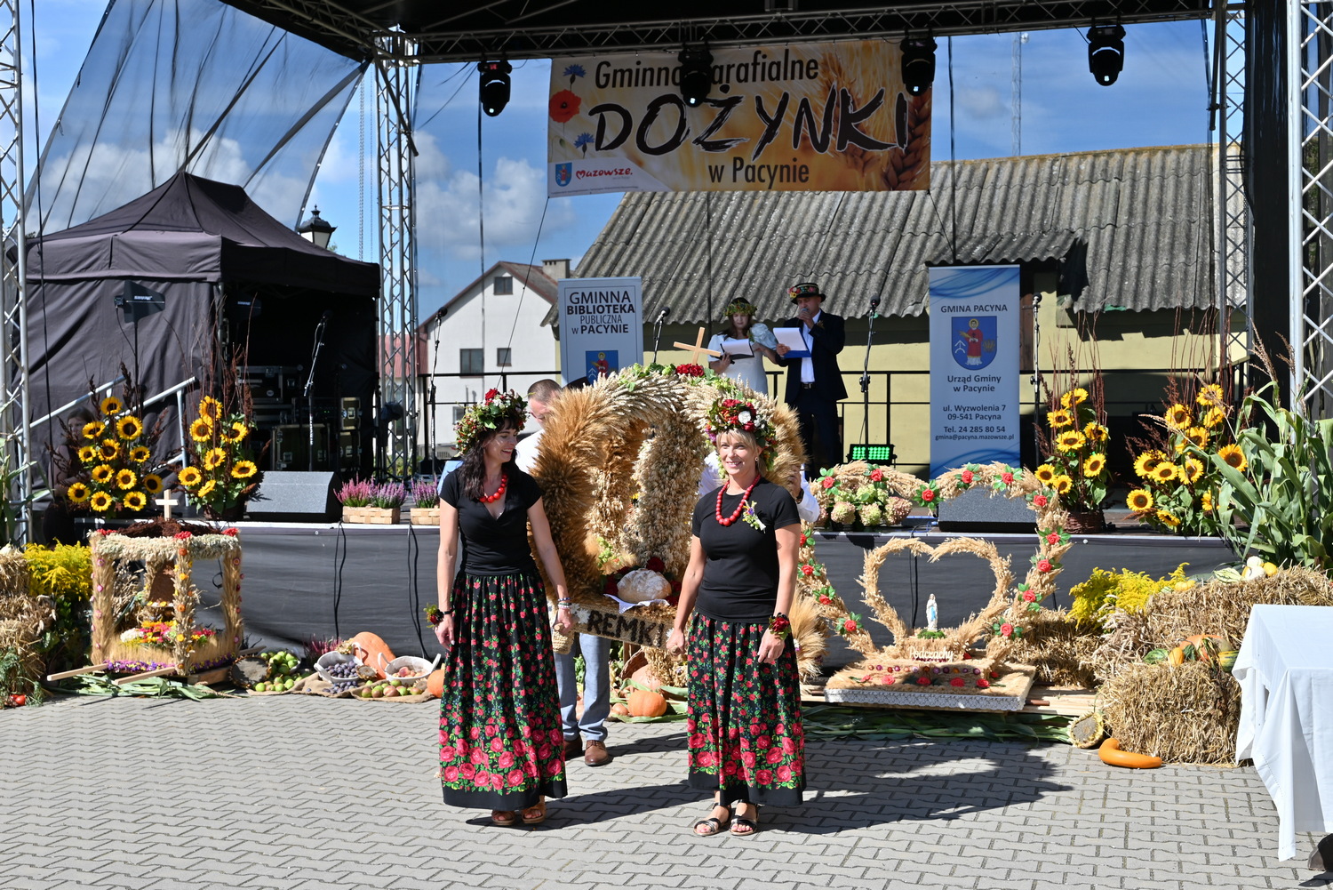 O godzinie 12.00 została odprawiona Msza Święta dziękczynna za tegoroczne plony. Po mszy wszyscy w barwnym korowodzie przeszli na plac obok kościoła, gdzie miała miejsce druga część dożynek. Podczas uroczystości odbył się tradycyjny ceremoniał przekazania chleba i miodu. Starostowie wręczyli bochen chleba upieczony z tegorocznych zbiorów oraz miód od lokalnych pszczelarzy Gospodarzom Dożynek, czyli Wójtowi Gminy Pacyna Tomaszowi Klimczakowi i proboszczowi parafii Pacyna ks. Zbigniewowi Ciechomskiemu. Po obrzędzie chleb został pokrojony i podzielony wśród wszystkich uczestników dożynek. Chleb na tę uroczystość upiekła Piekarnia Pacyna Piotr Majewski, a pyszny miód podarowali Andrzej Adamczyk oraz Renata Walczak.