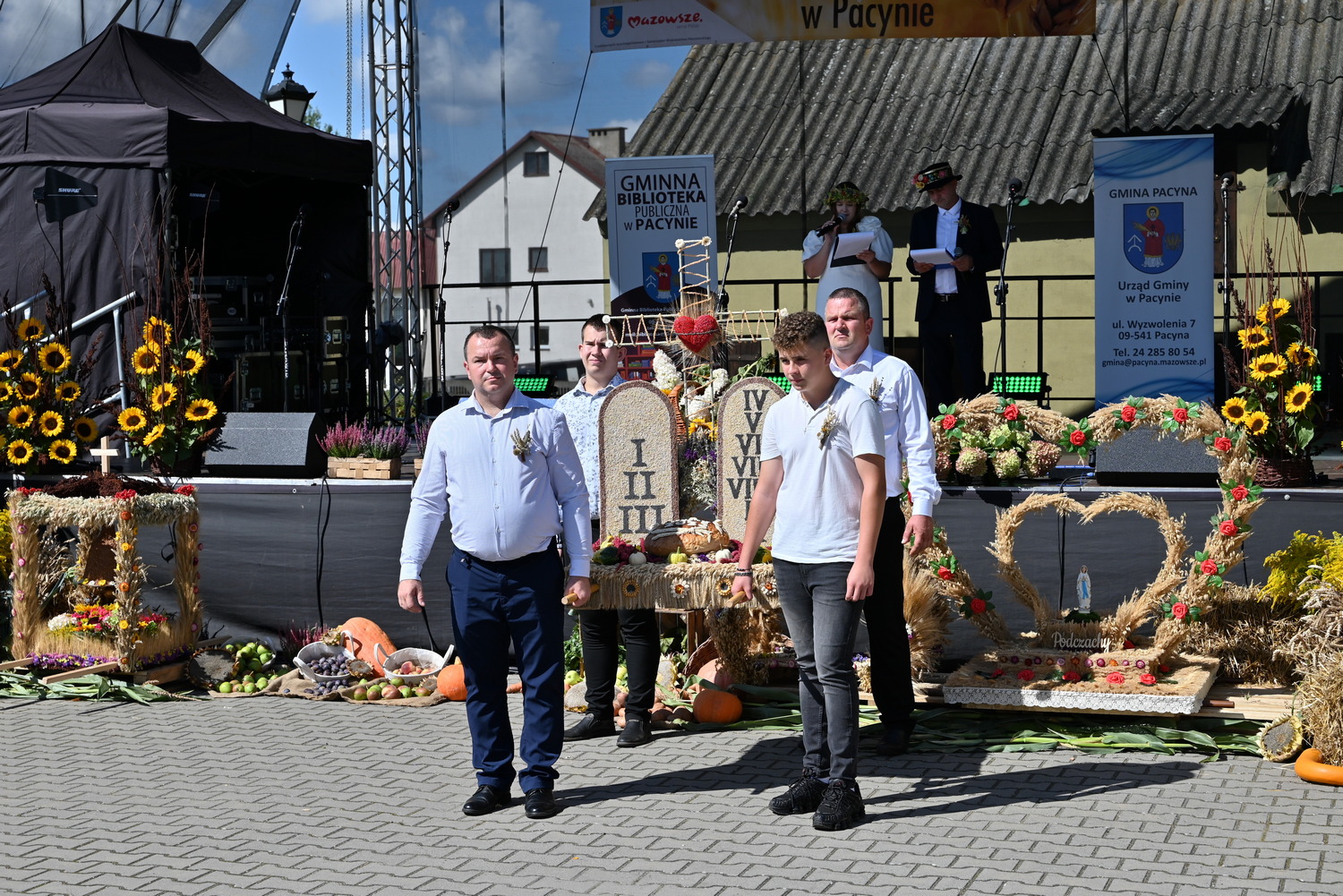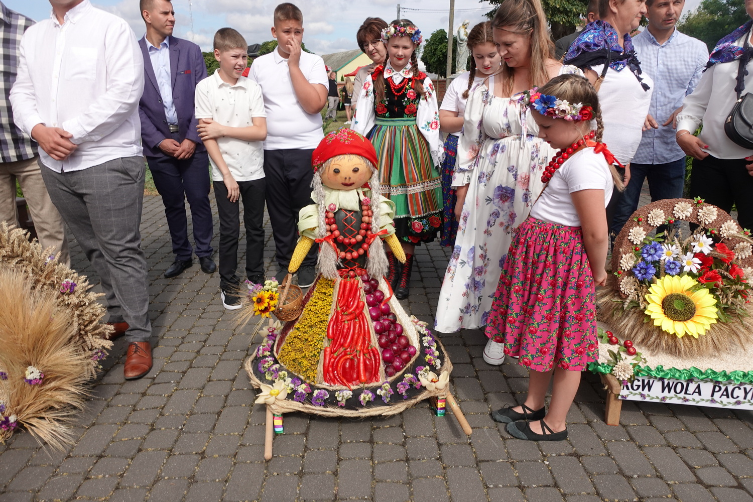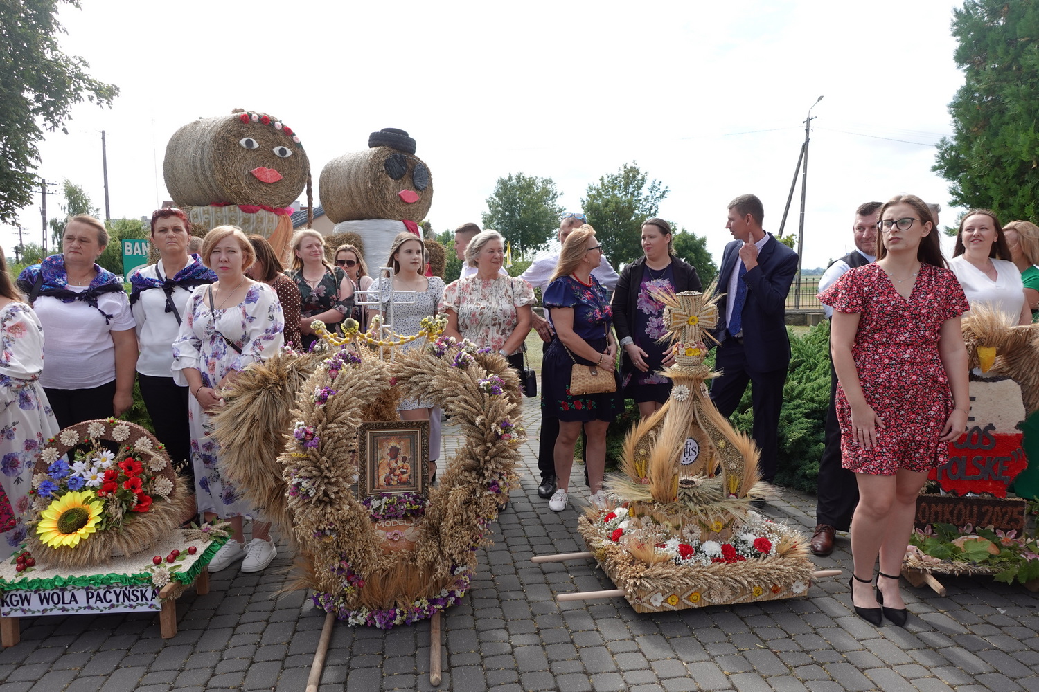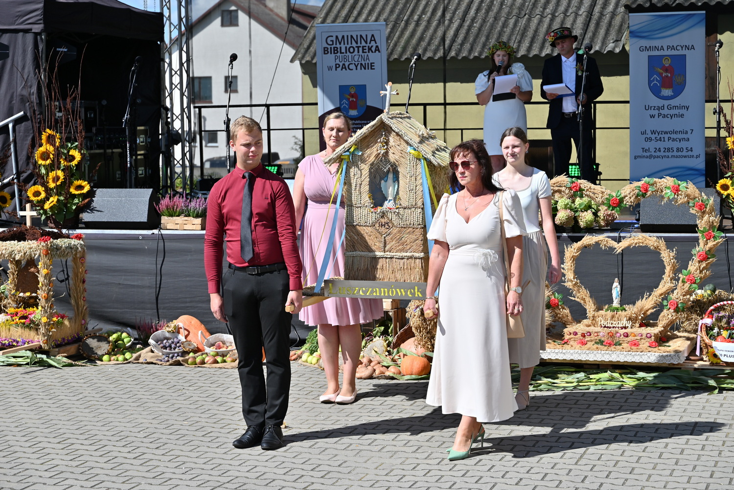 Obydwie wsie leżą na terenie gminy Pacyna. Obok starostów siedziały osoby grające na instrumentach: akordeon, saksofon, tamburyn. Przed kościołem czekali już przedstawiciele poszczególnych wsi z wieńcami dożynkowymi. Barwny korowód zamykał parafianin przebrany za księdza, jadący na rowerze.