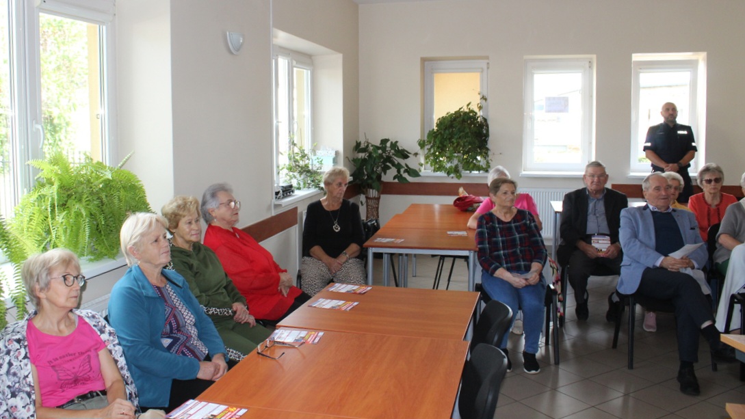 Seniorzy otrzymali również praktyczne wskazówki dotyczące zasad bezpiecznych zakupów w internecie, a także zostali zachęceni do korzystania z nowoczesnych narzędzi wspierających kontakt ze służbami – aplikacji Moja Komenda oraz Krajowej Mapy Zagrożeń Bezpieczeństwa.