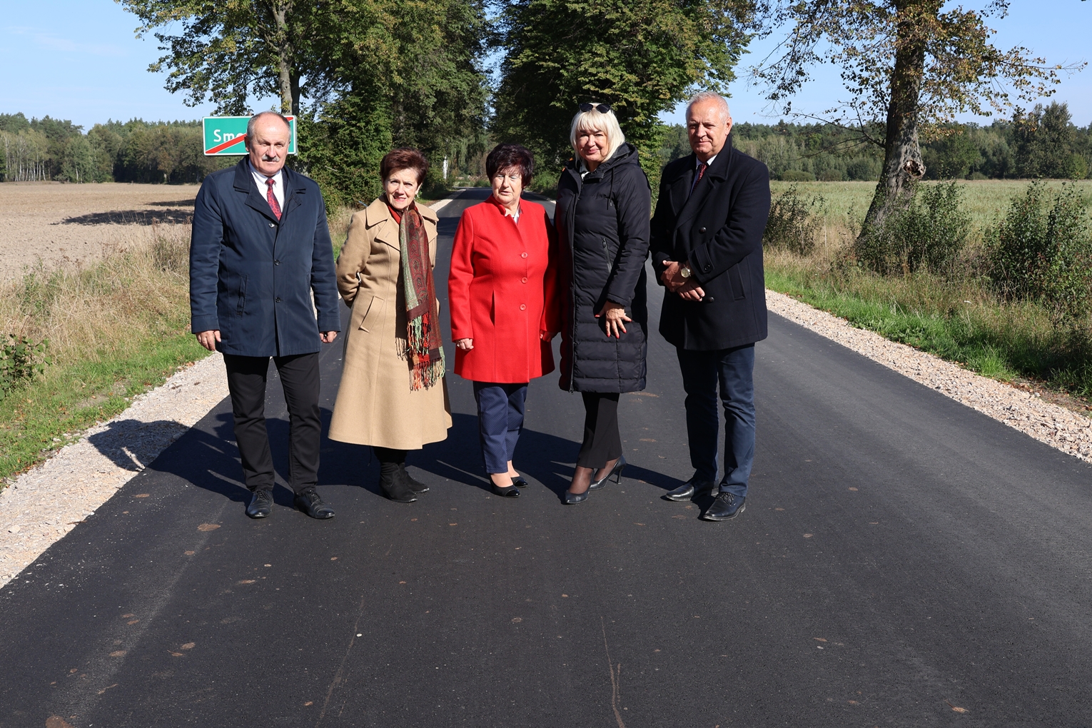 Jako następny odbył się odbiór zadania pn. „Modernizacja odcinka drogi powiatowej 1451W Szczawin Kościelny – Smolenta – Korzeń” w miejscowości Smolenta. Powiat reprezentował Starosta Gostyniński Andrzej Krzewicki, Wicestarosta Grzegorz Geisler, Członek Zarządu Powiatu Gostynińskiego Teresa Pawlak, Skarbik Powiatu Elżbieta Kijek. Gminę Szczawin Kościelny reprezentowała Wójt Gminy Szczawin Kościelny Barbara Stępniak. Odbiór odbył się w obecności Kierownika Zarządu Dróg Powiatowych Pawła Warabiedy, Naczelnika Wydziału Inwestycji, Promocji i Zamówień Publicznych Starostwa Tomasza Lewandowskiego, Zastępcy Kierownika ZDP w Gostyninie Artura Ryfy. Wartość zadania wyniosła 264 606,83 zł przy dotacji z budżetu Gminy Szczawin Kościelny w kwocie 70 000,00 zł.