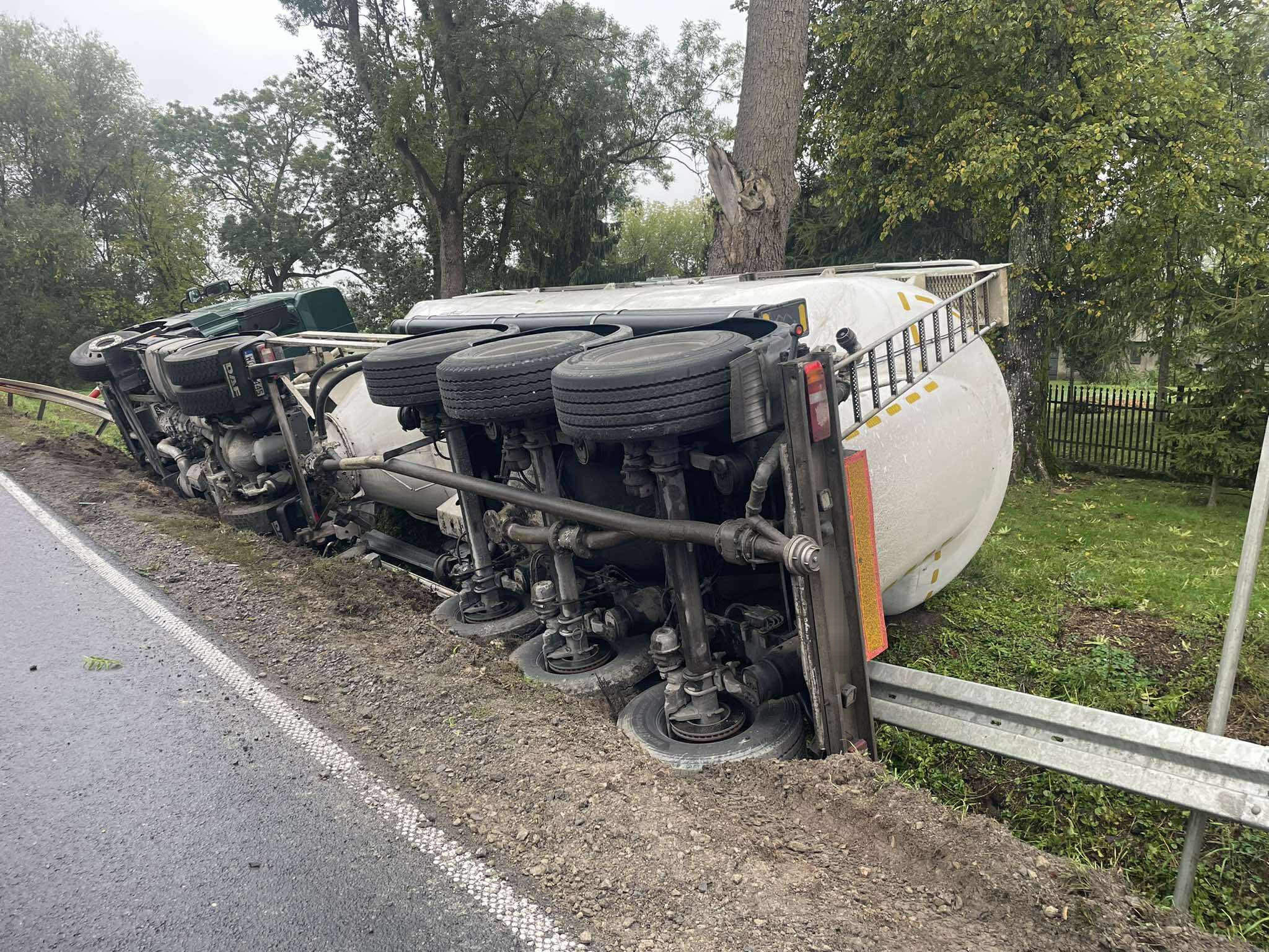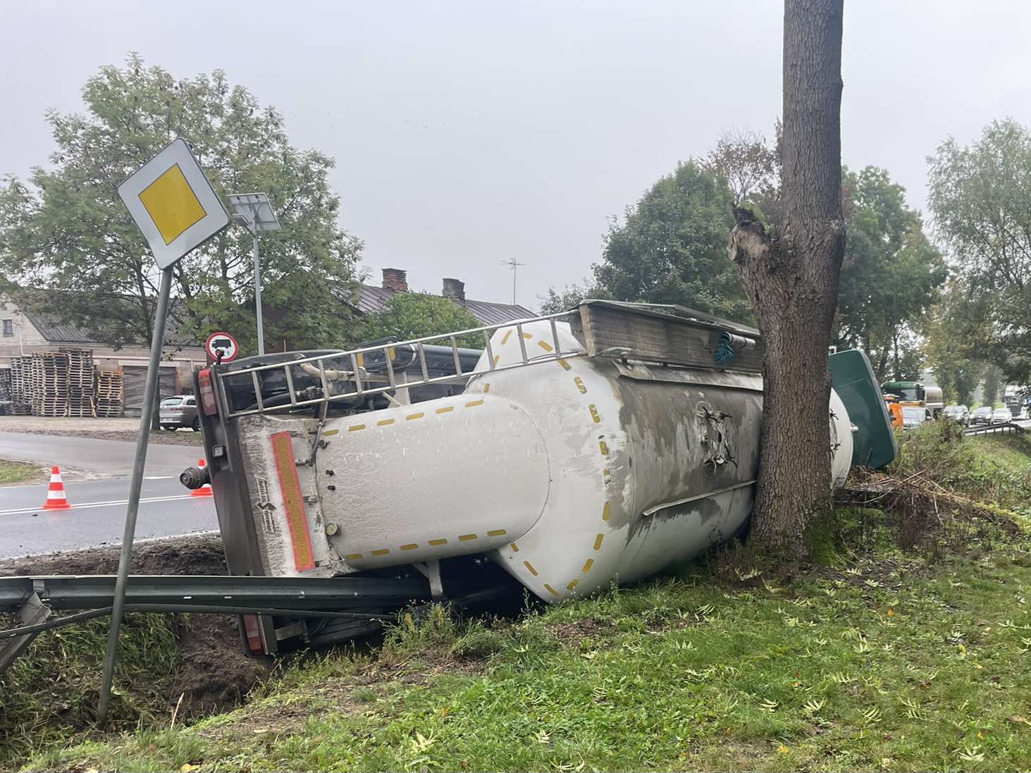 Ze wstępnych ustaleń policjantów wynika, że 27-letni kierujący dafem z naczepą typu cysterna, nie dostosował prędkości do warunków panujących na drodze, w wyniku czego wjechał do rowu. Na szczęście nikt nie doznał poważnych obrażeń. Kierujący był trzeźwy.