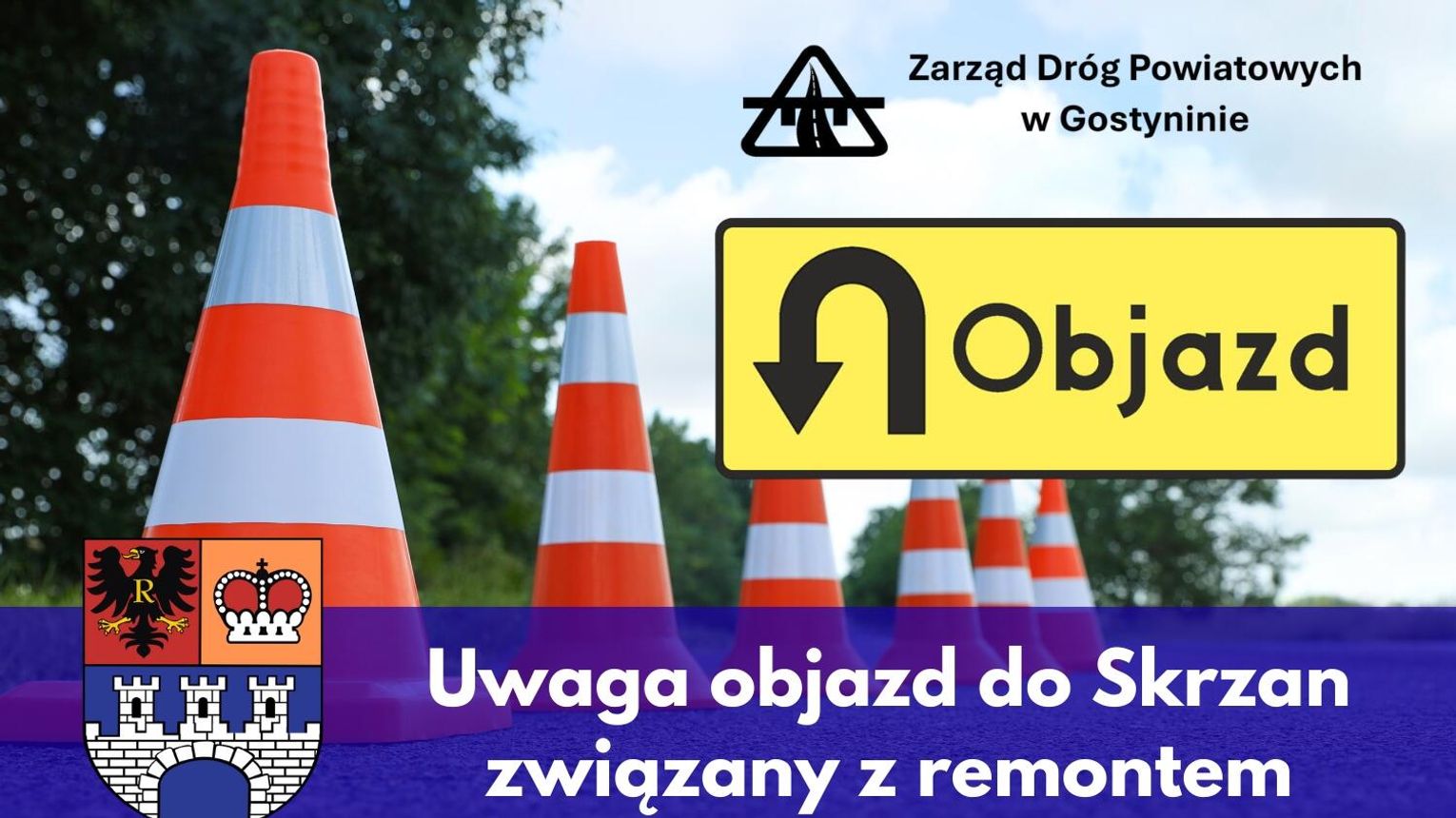 Uwaga - objazd do Skrzan związany z remontem drogi powiatowej 1422W