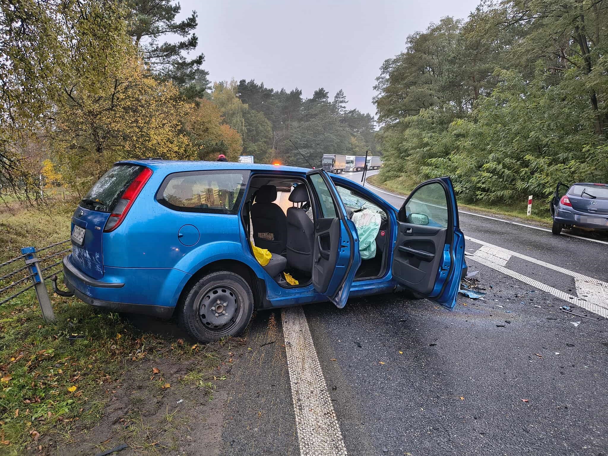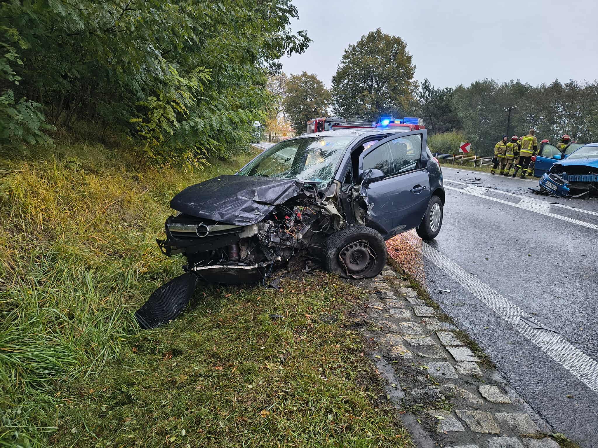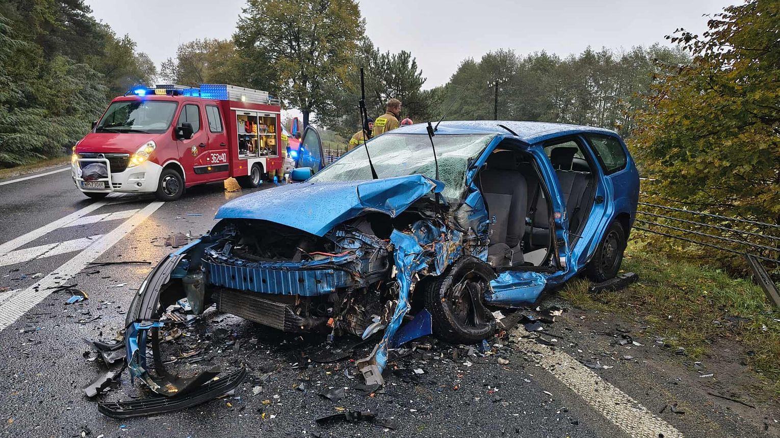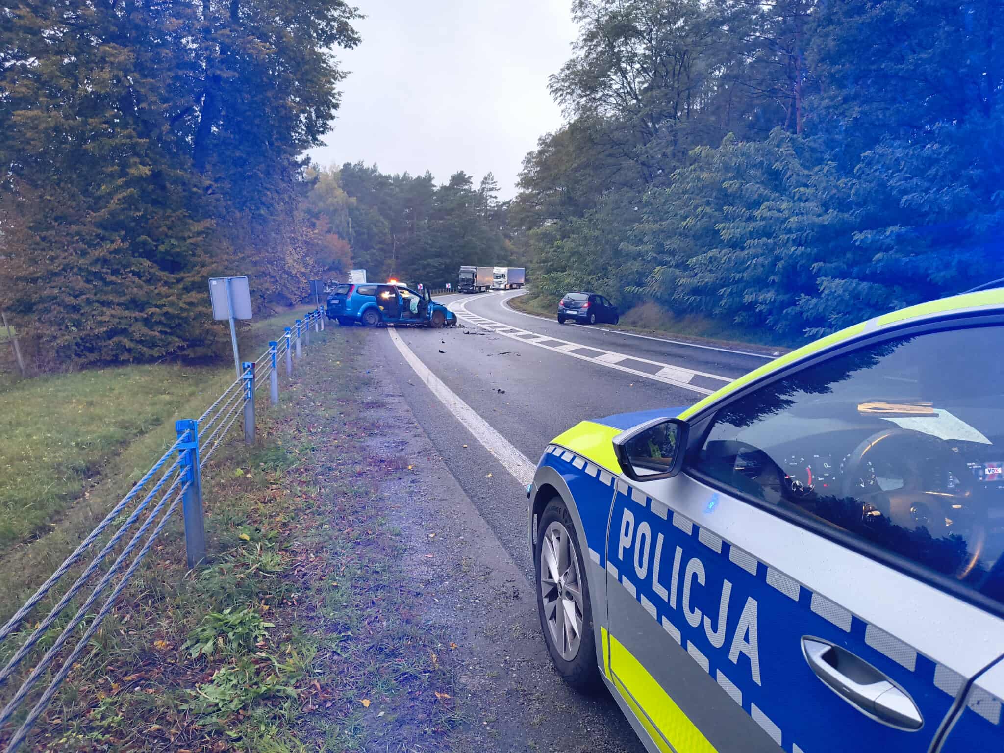 Policjanci ustalili, że 50-letnia kierująca oplem zderzyła się czołowo z 62-letnią kierującą fordem, która jechała w przeciwnym kierunku. W wyniku poniesionych obrażeń 5 osób trafiło do szpitala (obydwie kierujące, 12-letni pasażer opla oraz dwoje pasażerów forda: 68-letnia kobieta oraz 45-letni mężczyzna).