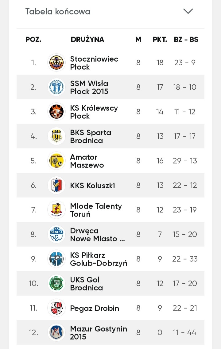 Wyniki MKS Mazur Gostynin prezentują się następująco:
