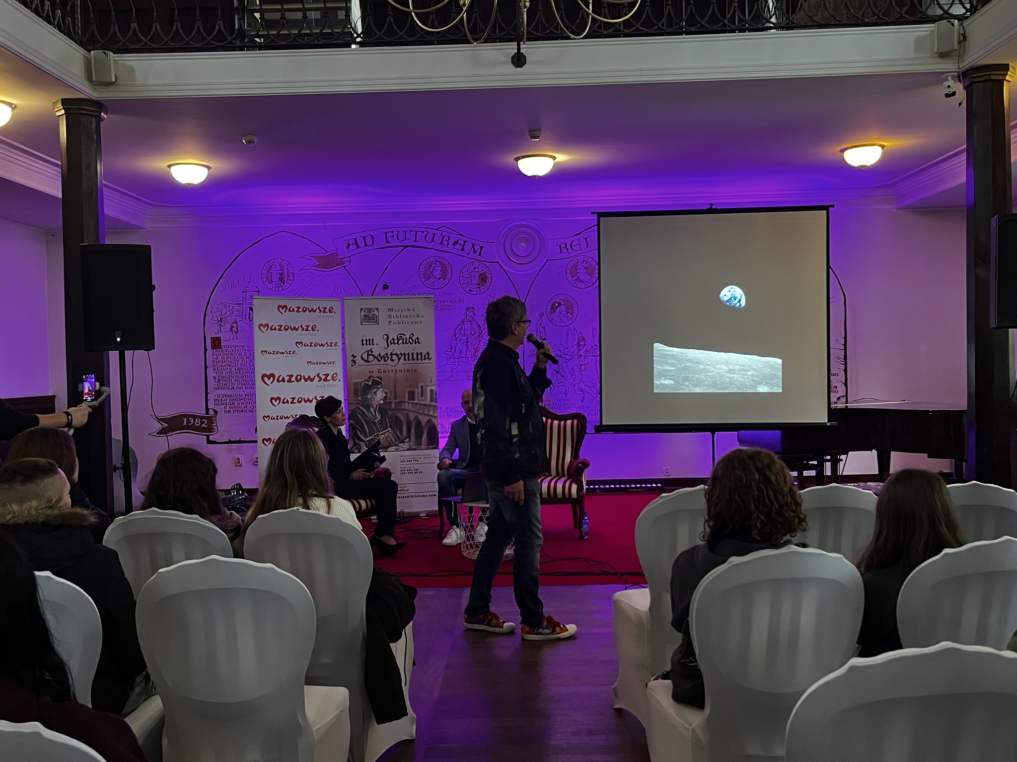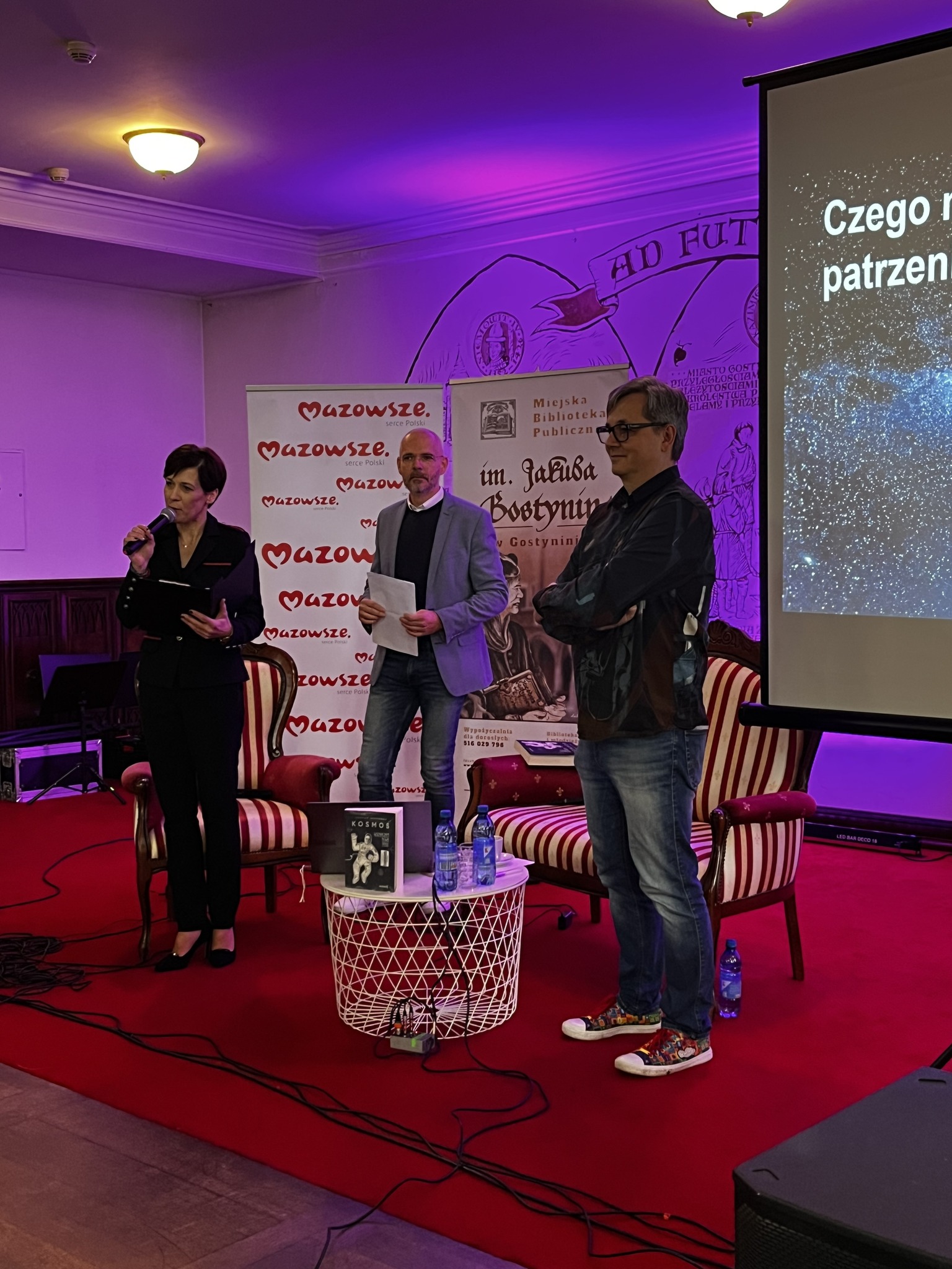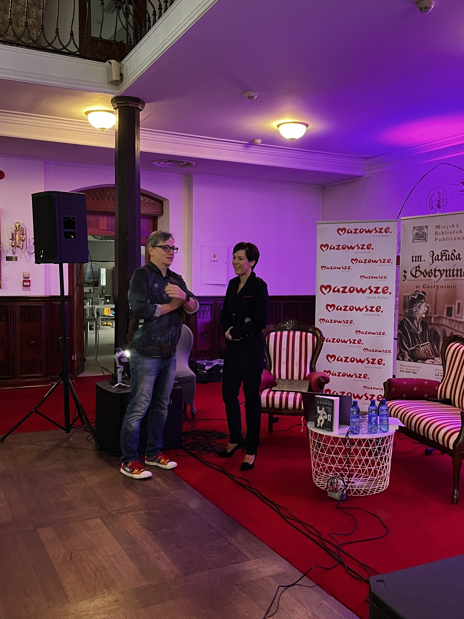 Rozmowę poprowadzili Kamilla Ostrowska, dyrektor Miejskiej Biblioteki Publicznej im. Jakuba z Gostynina oraz Tomasz Balcerzak - fotografia / astrofotografia, którego uczestnicy mogli bliżej poznać podczas kolejnego punktu programu Nocy Bibliotek.