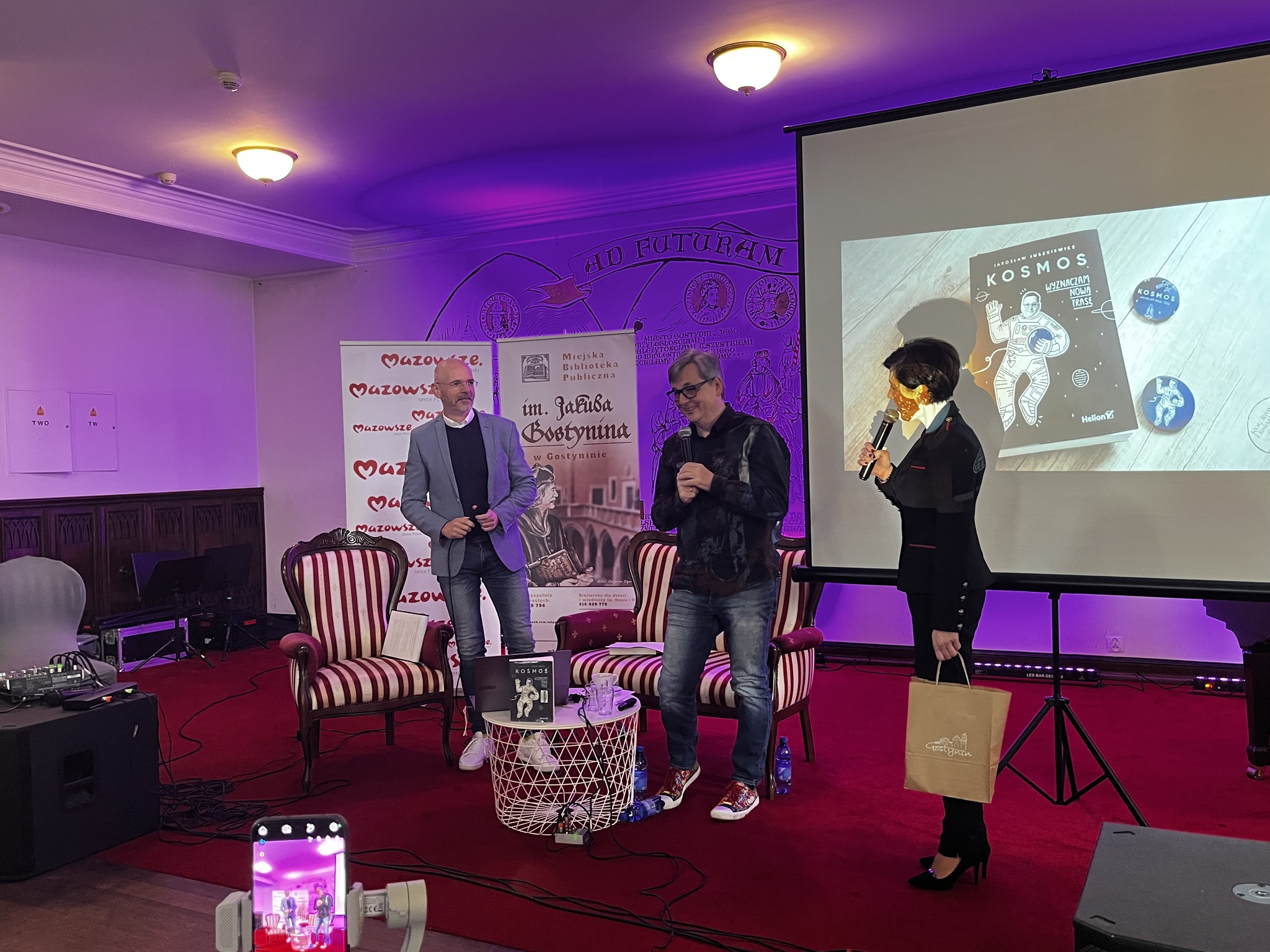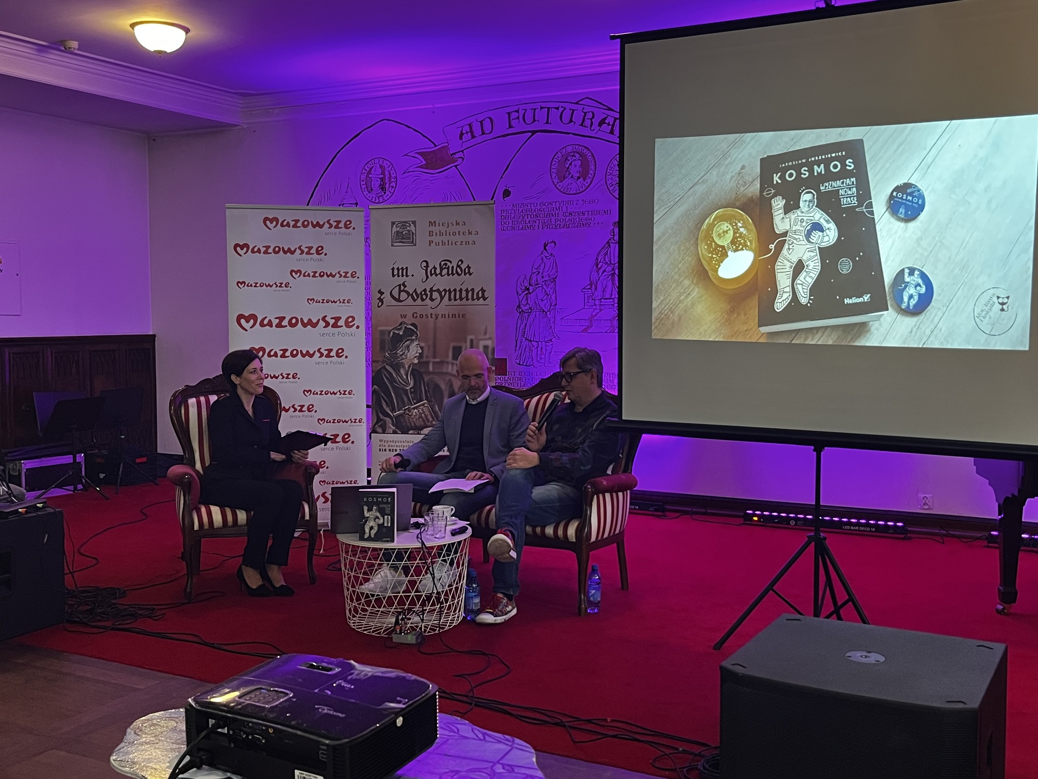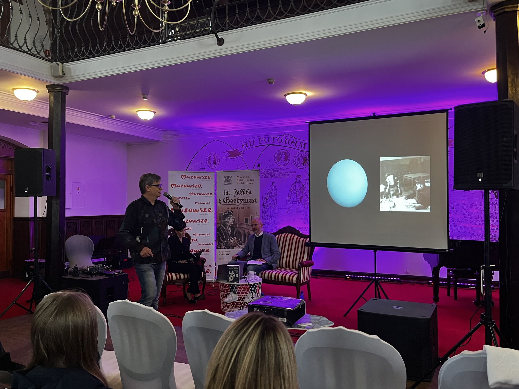 Rozmowę poprowadzili Kamilla Ostrowska, dyrektor Miejskiej Biblioteki Publicznej im. Jakuba z Gostynina oraz Tomasz Balcerzak - fotografia / astrofotografia, którego uczestnicy mogli bliżej poznać podczas kolejnego punktu programu Nocy Bibliotek.