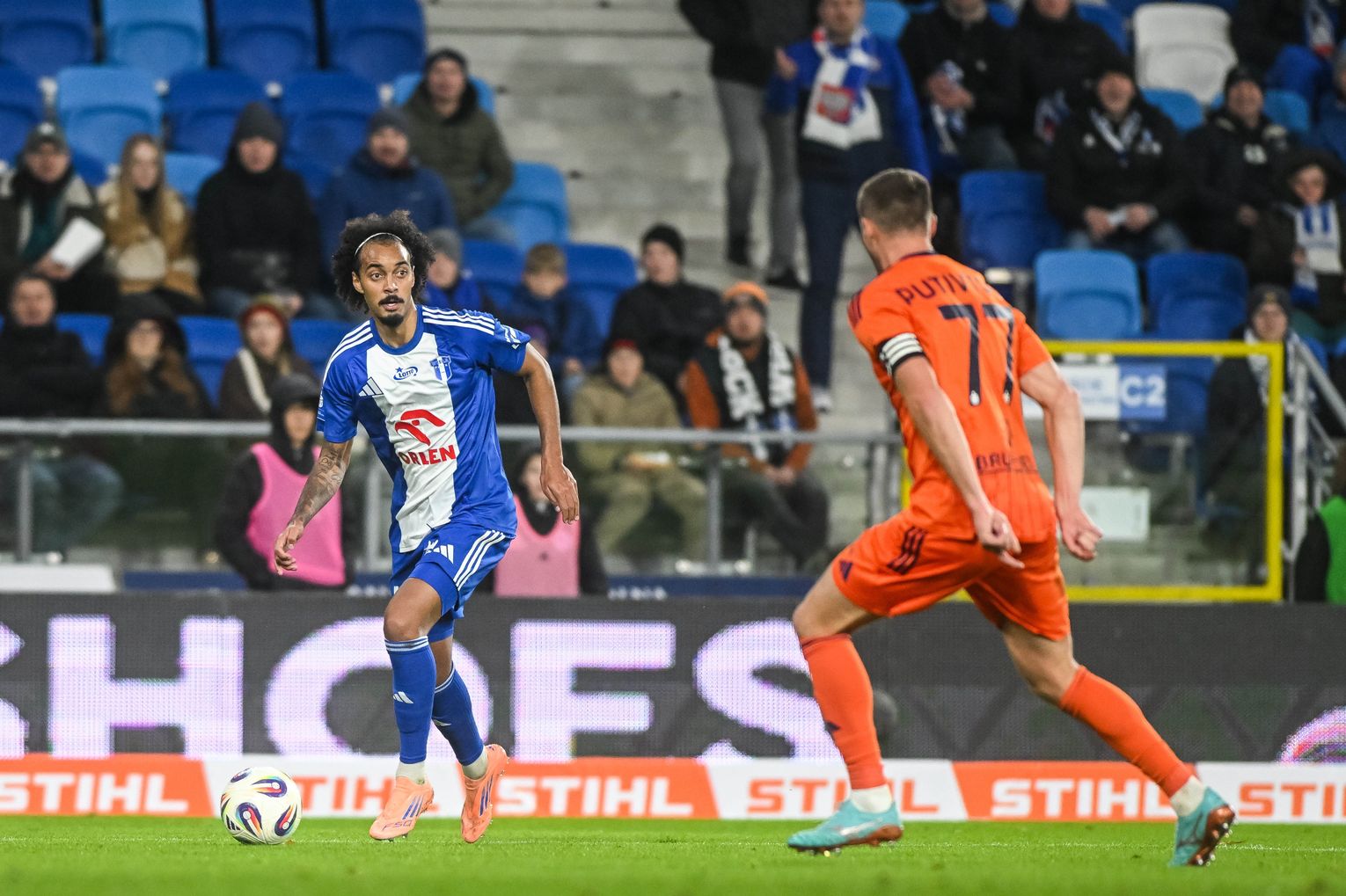 Początkowa faza meczu toczyła się raczej w spokojnym tempie. Wspomnieć należy o niecelnym strzale Marcusa Haglinda-Sangre z 4. minuty czy zatrzymanym przez naszych defensorów kontrataku z 7., ale na większe emocje trzeba było jeszcze poczekać. Nasz zespół próbował kilku dośrodkowań, ale były one albo blokowane, albo wyłapywane przez Miłosza Mleczko. W 18. i 19. minucie uderzeń sprzed szesnastki po dryblingu próbował Dani Pacheco, ale w obu przypadkach na linii piłki stawali obrońcy gości. Kiedy ci w końcu pojawili się w naszej szesnastce, dośrodkowanie Gabriela Isika okazało się za wysokie, żeby Krzysztof Kubica mógł czysto główkować. Wreszcie w 29. minucie jeszcze raz spróbował Pacheco i tym razem mimo nadbiegających w jego stronę defensorów uderzył tak, że piłka wpadła do bramki przy samym słupku! Już za moment Hiszpan miał okazję na dublet, ale tym na wysokości zadania stanęli obrońcy.