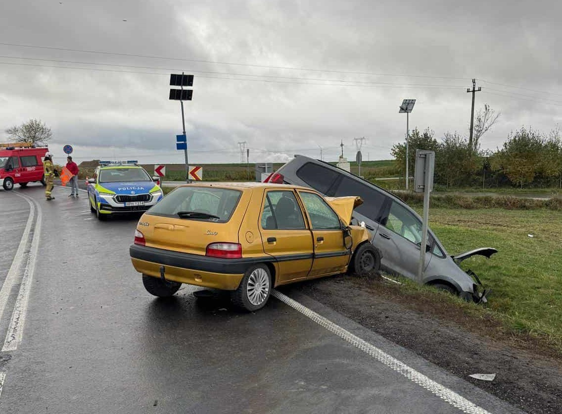42-letni kierujący seatem zderzył się czołowo z 21-letnim kierującym citroenem. W wyniku poniesionych obrażeń obydwaj kierujący oraz 80-leteni pasażer citroena trafili do szpitala. Do zdarzenia doszło na łuku drogi. Ze wstępnych ustaleń policjantów wynika, że kierujący seatem najprawdopodobniej stracił panowanie nad pojazdem z powodu zanieczyszczeń na jezdni i zjechał na przeciwległy pas ruchu.