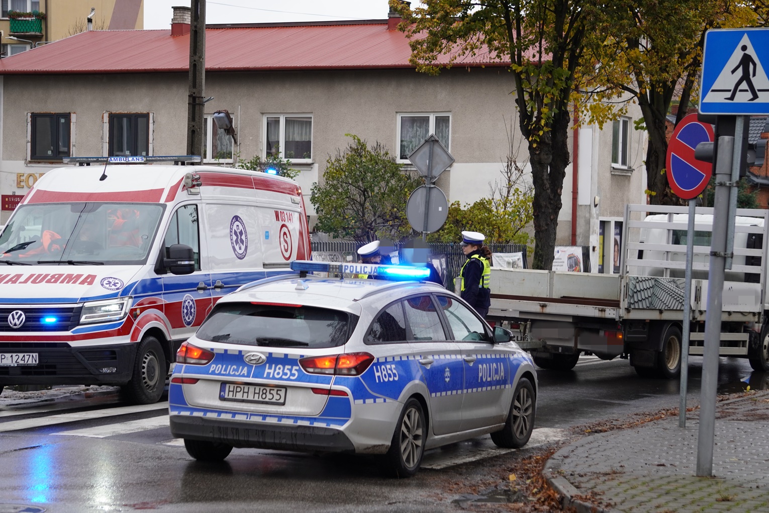 Do zdarzenia doszło w godzinach porannych na ruchliwym skrzyżowaniu Wojska Polskiego i Floriańskiej w Gostyninie. Kierowca samochodu potrącił kobietę, która w wyniku odniesionych obrażeń została przetransportowana do szpitala. Na miejscu pracowały służby ratunkowe i policja, która zabezpieczyła teren i przeprowadziła wstępne czynności. Funkcjonariusze zbierają dowody, przesłuchują świadków i analizują zapisy kamer, aby ustalić przebieg zdarzenia oraz odpowiedzieć na pytanie, czy poszkodowana znajdowała się na przejściu dla pieszych w chwili potrącenia.