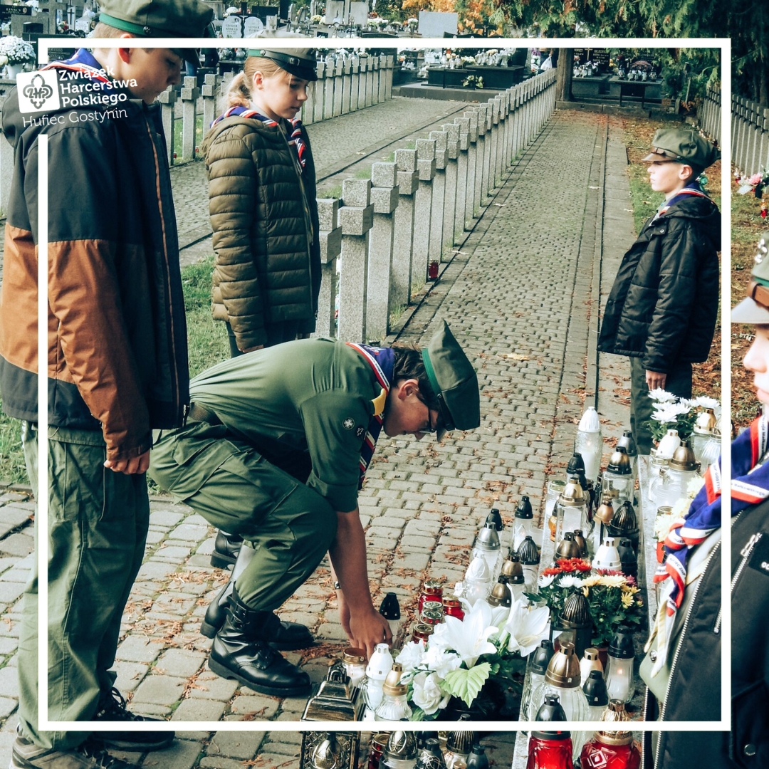 Przygotowujemy się do tych dni ze szczególną uwagą: porządkujemy nagrobki i teren wokół nich, dbamy o odpowiednią ilość zniczy i kwiatów – by nie zabrakło ich na żadnym z ważnych dla nas miejsc na cmentarzu. Listopad to szczególny miesiąc dla harcerzy w całej Polsce – także tych naszych, gostynińskich.