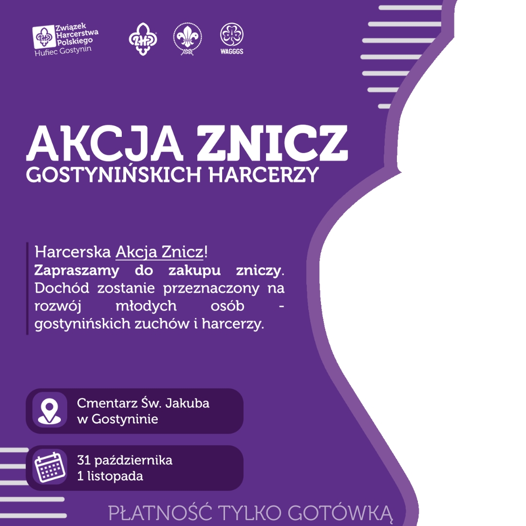 W tym roku także ich nie zabraknie. Powracają także ze swoją, znaną nam wszystkim Harcerską akcją „Znicz", podczas której prowadzą sprzedaż zniczy i wiązanek. Dochód z tej akcji przeznaczą na swoje cele statutowe – na rozwój, na szkolenia, na wyjazdy, na wszelkie niezbędne sprzęty.