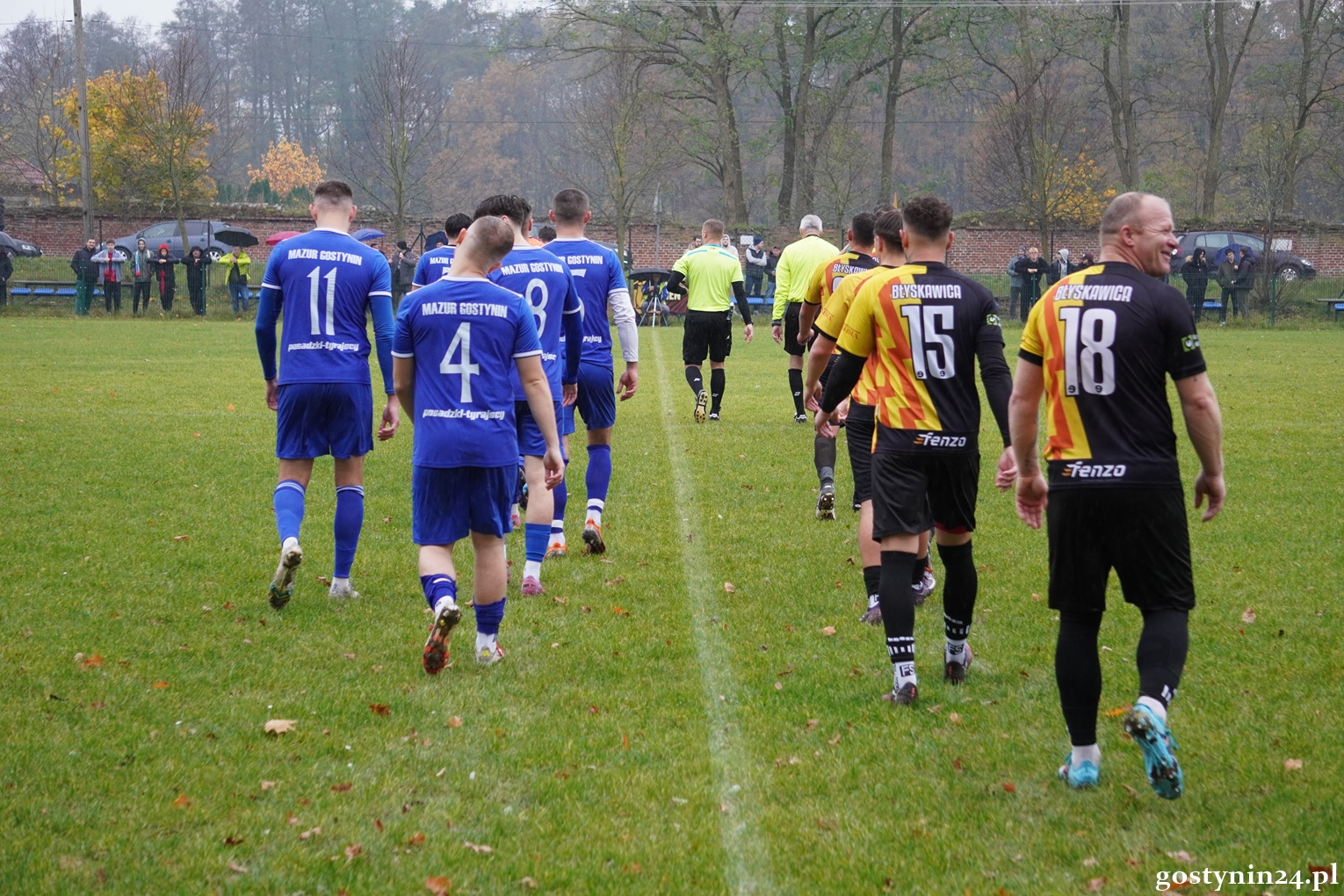 Przed godziną 13.00 w niedzielę w Lucieniu zaczął padać deszcz i tak było przez całe spotkanie derbowe, które rozpoczęło się o godzinie 14.00. Snajperzy Mazura, którzy w ostatnich meczach ligowych wykazywali się skutecznością, na śliskiej murawie nie mogli pokazać w pełni swoich umiejętności. Padający deszcz utrudniał grę obu zespołom.