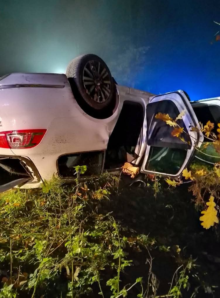 Auto uderzyło w przydrożne drzewa, a następnie dachowało. W pojeździe znajdował się jedynie kierowca. Mężczyzna był przytomny i z obrażeniami ciała został przewieziony do szpitala w Płocku.