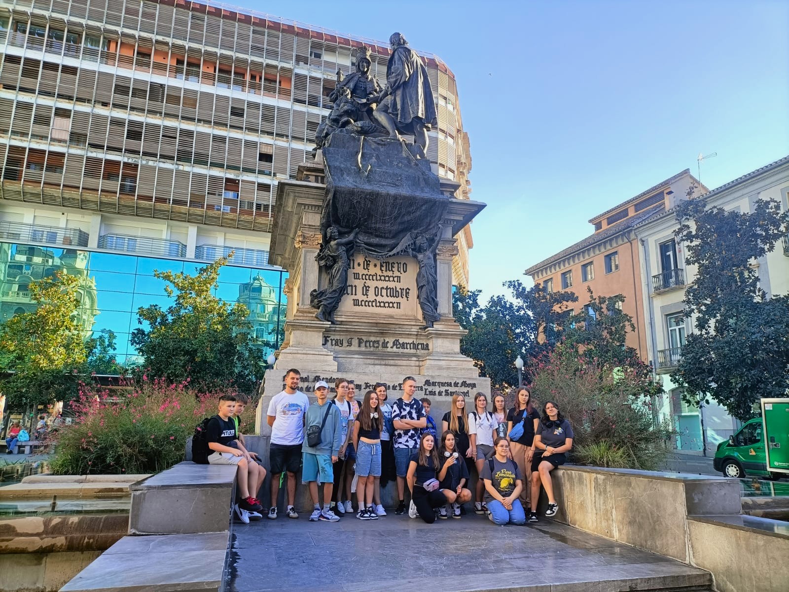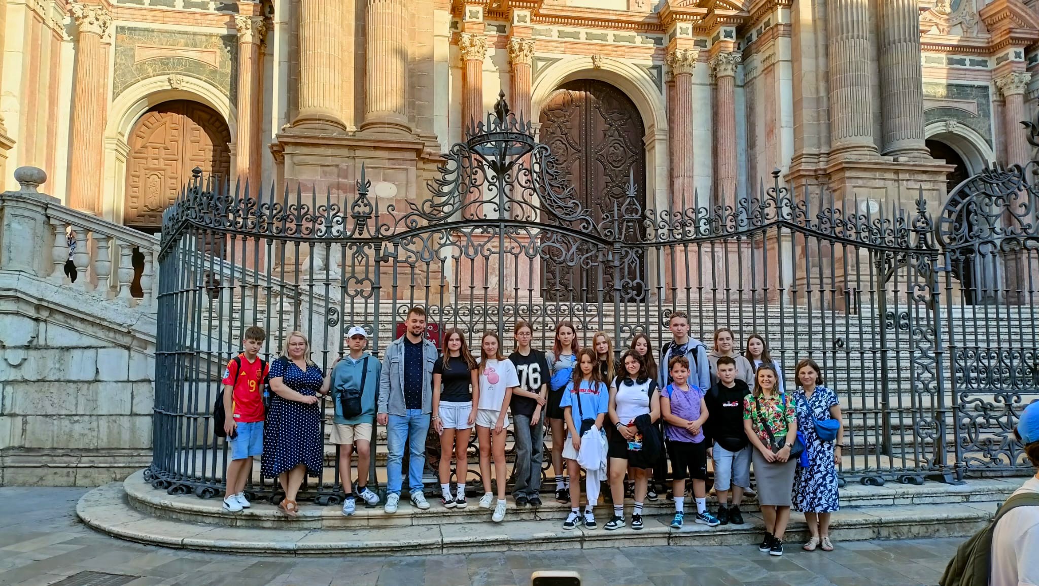 Drugi dzień przyniósł wizytę w niezwykłej Grenadzie – mieście o bogatej historii i arabskim dziedzictwie. Z tarasu widokowego San Nicolas uczniowie podziwiali zapierającą dech w piersiach panoramę z Alhambrą w tle. Odwiedzili Pałac Karola V, zajrzeli do Dobla de Oro, a na Plaza Isabel La Catolica zobaczyli pomnik królowej Izabeli I Kastylijskiej z kłaniającym się Krzysztofem Kolumbem. Niezwykłe wrażenie zrobiła monumentalna katedra, której budowa trwała aż 181 lat.