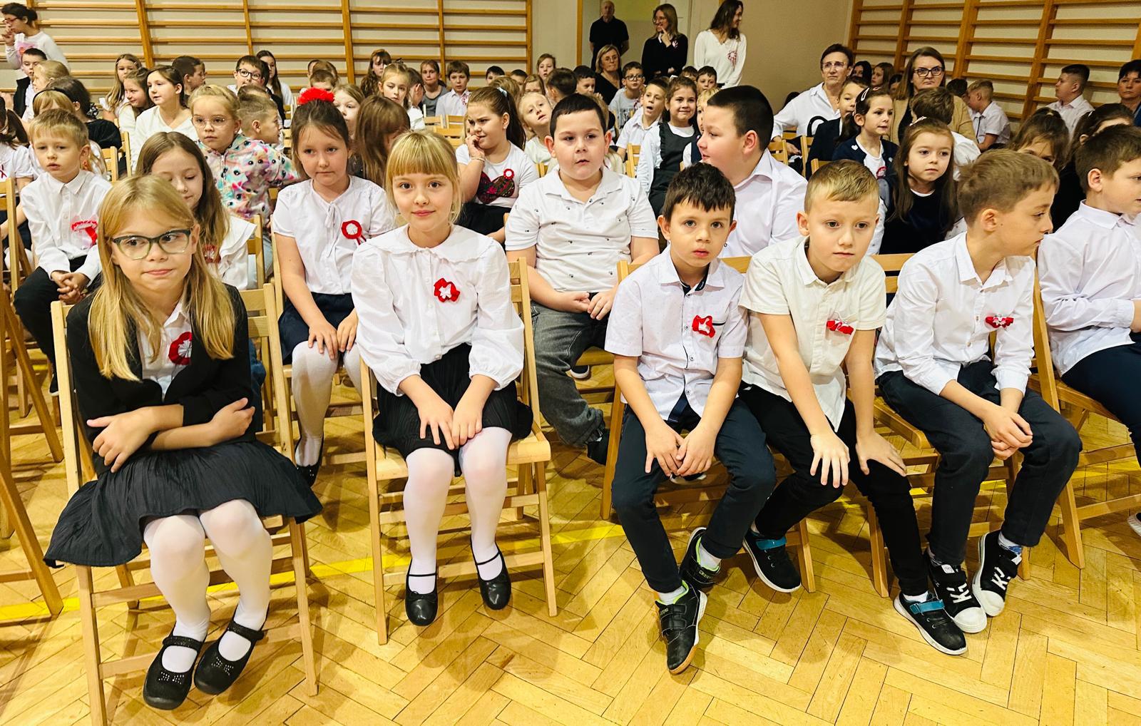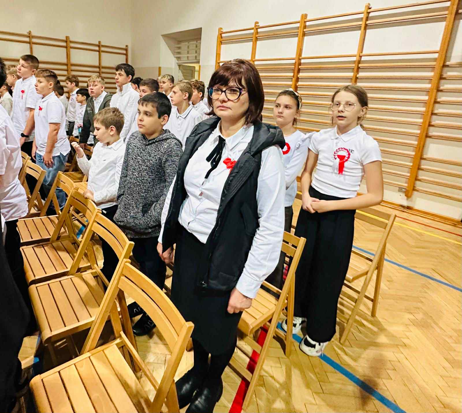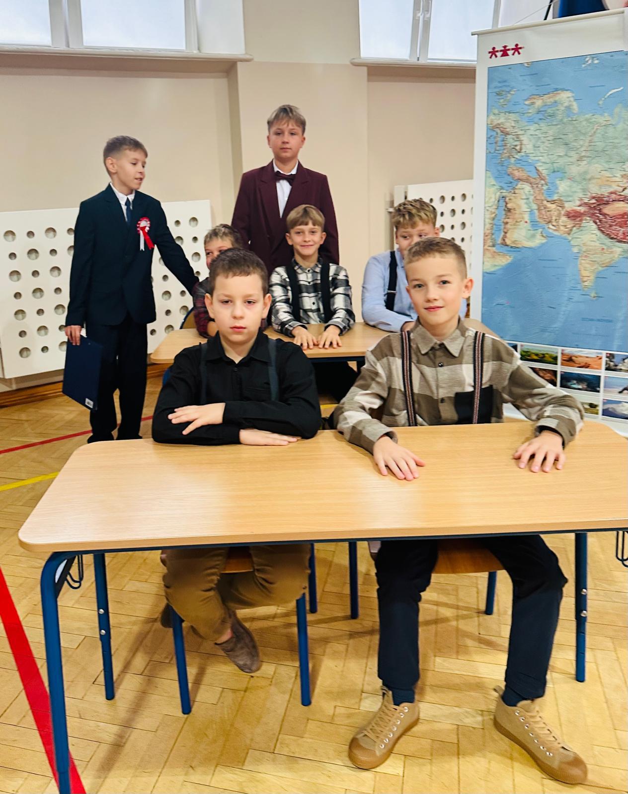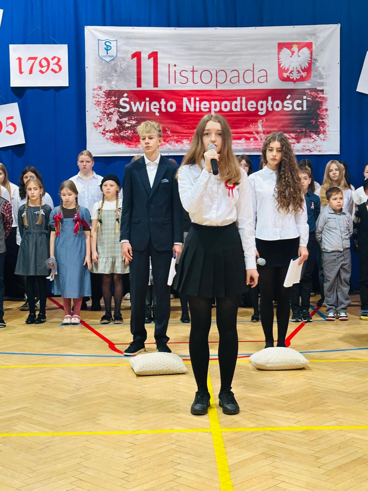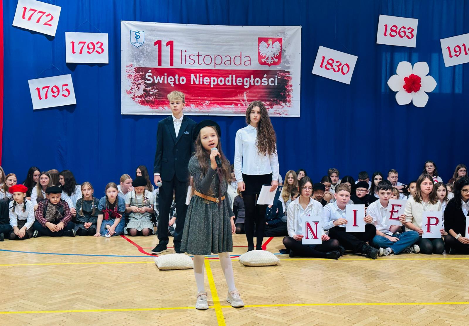 W spektaklu słowno – muzycznym uczniowie Jedynki przypomnieli zebranym w sali gimnastycznej, przepełnioną cierpieniem historię narodu polskiego oraz uczcili pamięć tych, dzięki którym żyjemy dziś w wolnym kraju. Wspaniała lekcja patriotyzmu ukazała heroiczną i nierówną walkę naszych przodków o wyzwolenie. Kulminacyjnym momentem szkolnej uroczystości był taniec poloneza w wykonaniu uczniów klasy ósmej. Młodzież ubrana w epokowe stroje, z niezwykłą gracją zaprezentowała narodowy taniec, który od wieków towarzyszy najważniejszym wydarzeniom w dziejach naszego kraju. Widownia nagrodziła występ długimi brawami, doceniając zarówno kunszt tancerzy, jak i piękno polskiej tradycji.