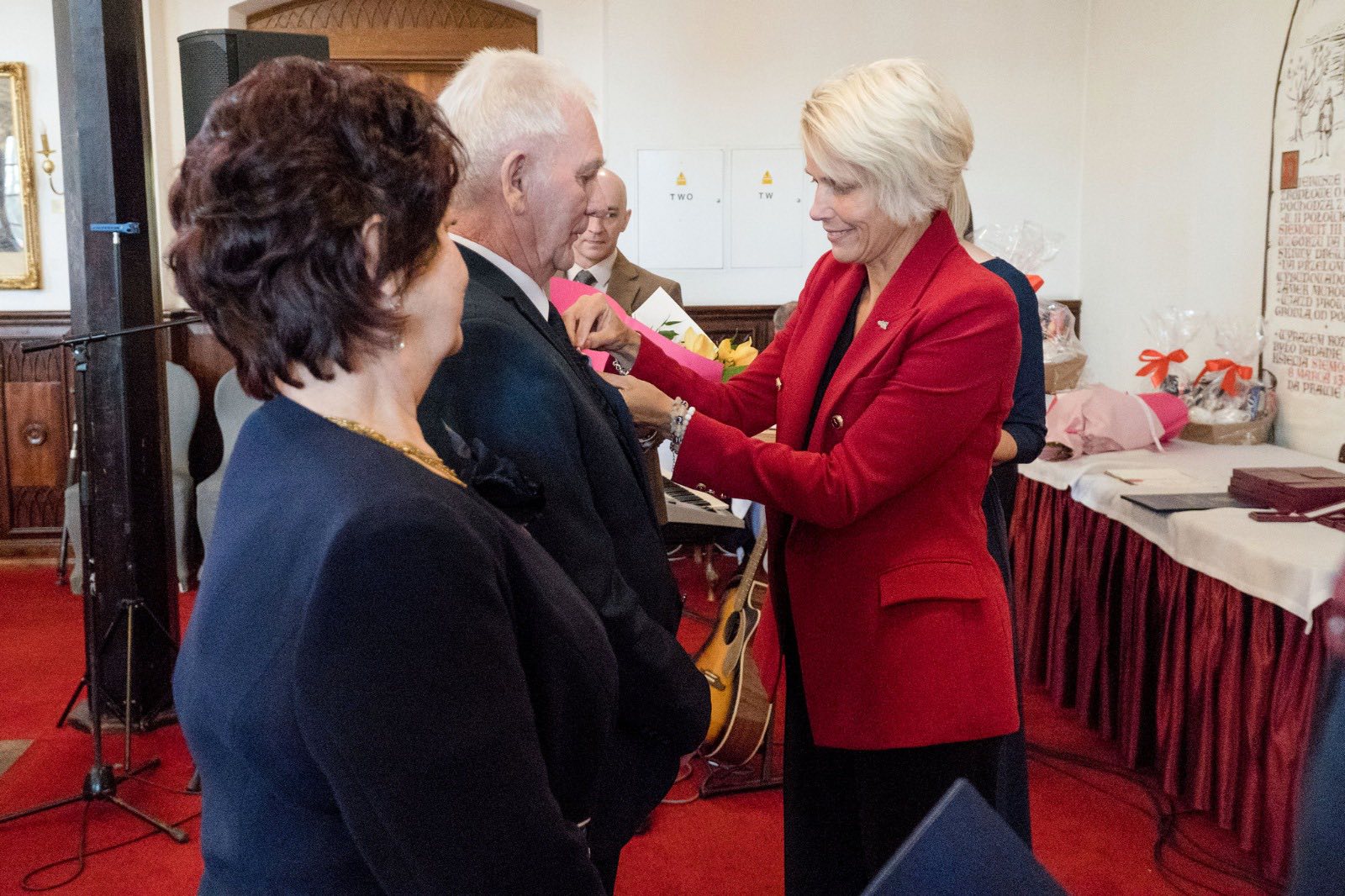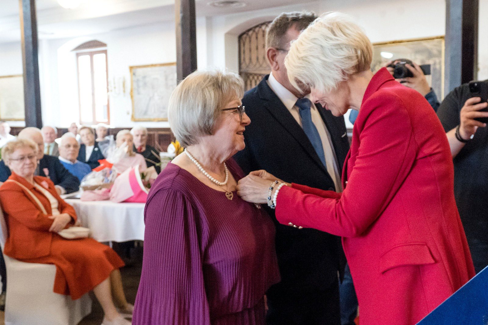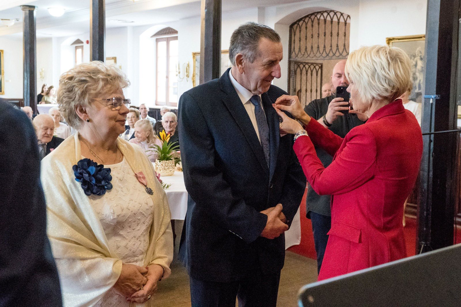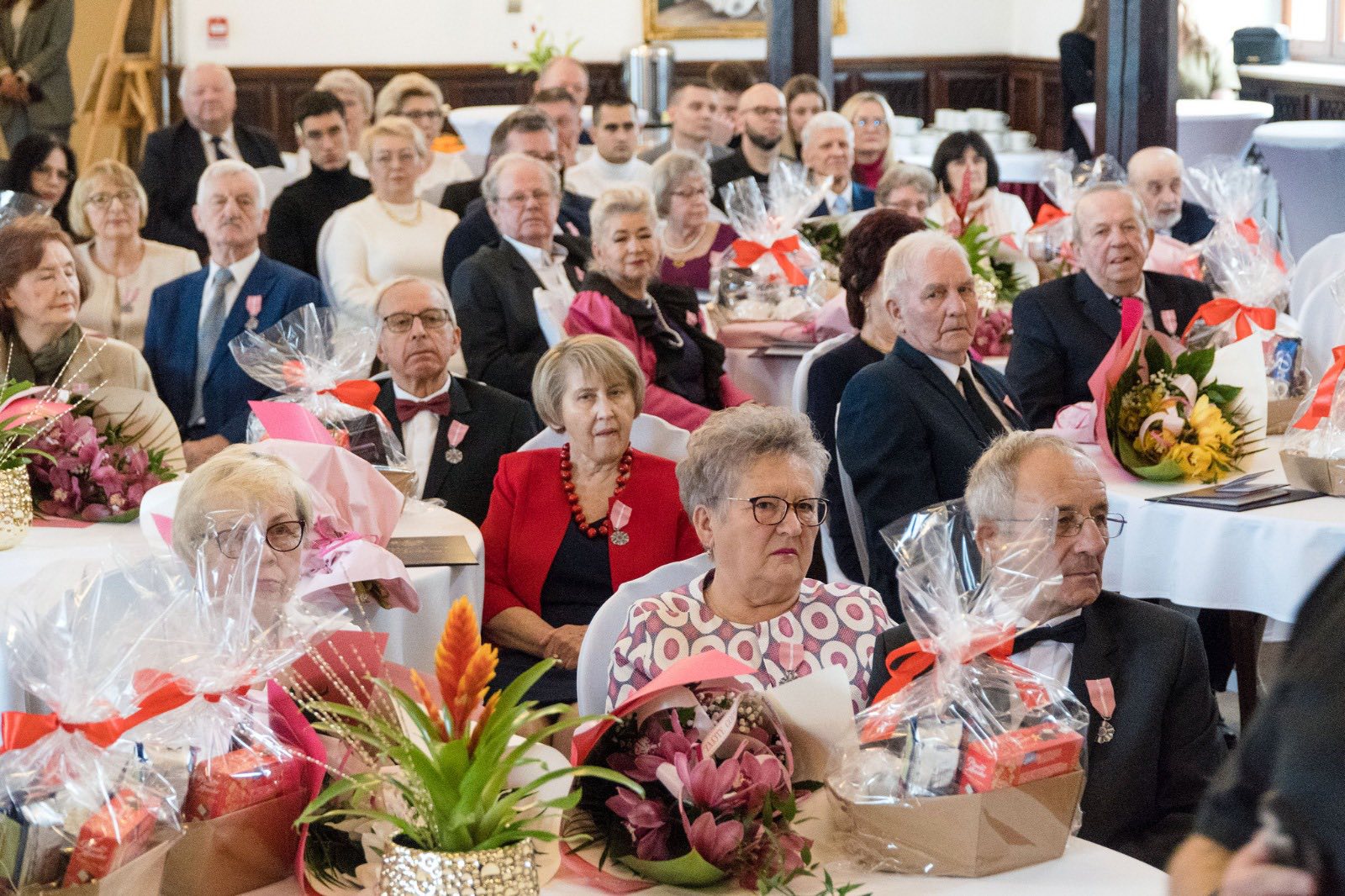 Kluczowym momentem było odznaczenie Jubilatów Medalami za Długoletnie Pożycie Małżeńskie, nadanymi przez Prezydenta Rzeczypospolitej Polskiej. Aktu dekoracji dokonała Burmistrz Miasta Gostynina, Pani Agnieszka Korajczyk-Szyperska, która w swoich słowach podziękowała wszystkim parom za piękny dowód trwałości uczuć, odpowiedzialności i poświęcenia. Podkreśliła, że ich postawa wzmacnia więzi społeczne i lokalne tradycje.