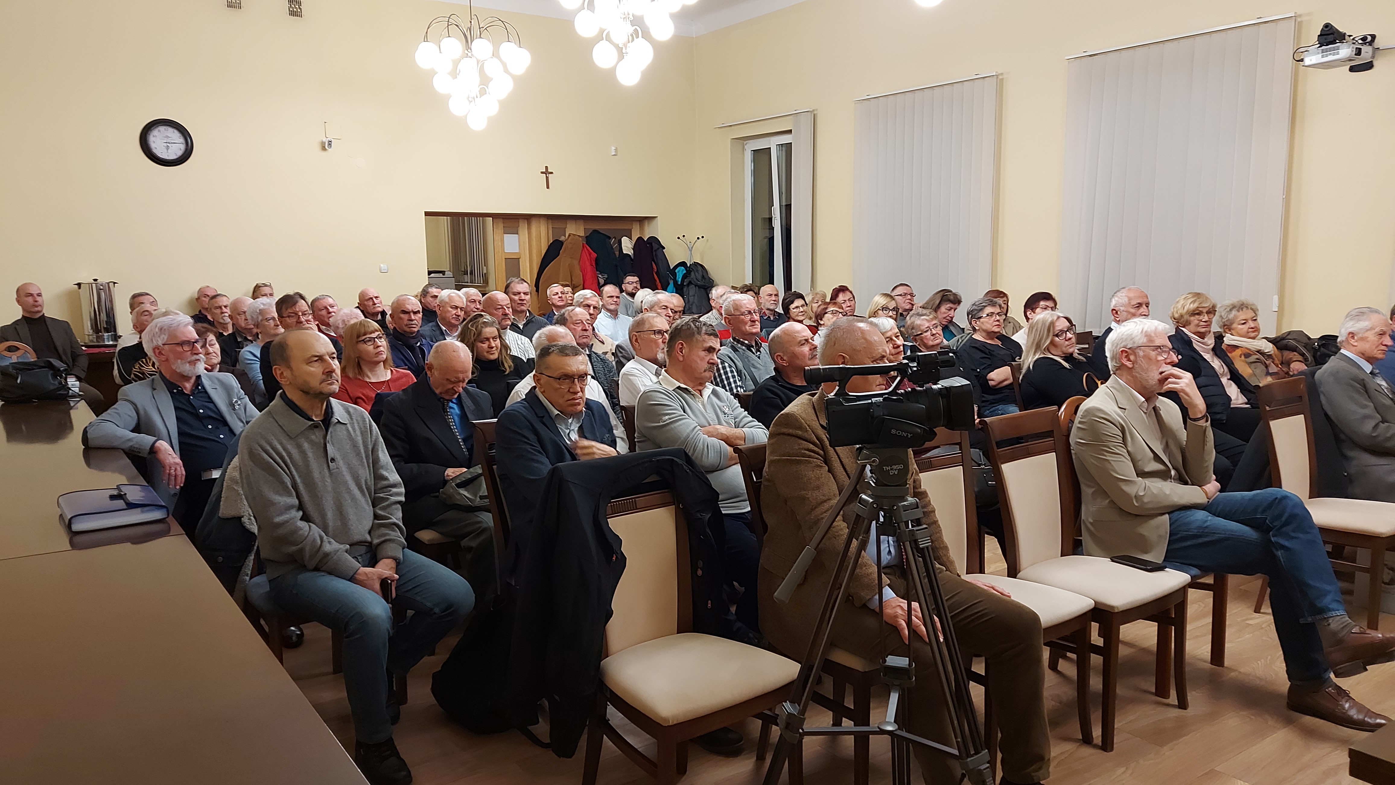 Jacek Liziniewicz w żartobliwy sposób przypomniał, że w sali, w której doszło do spotkania z wybitnym historykiem, w okresie PRL spotykali się towarzysze, a ulica nosiła nazwę Juliana Marchlewskiego. Wypowiedział się również odnośnie nowych nazw dla gostynińskich rond.