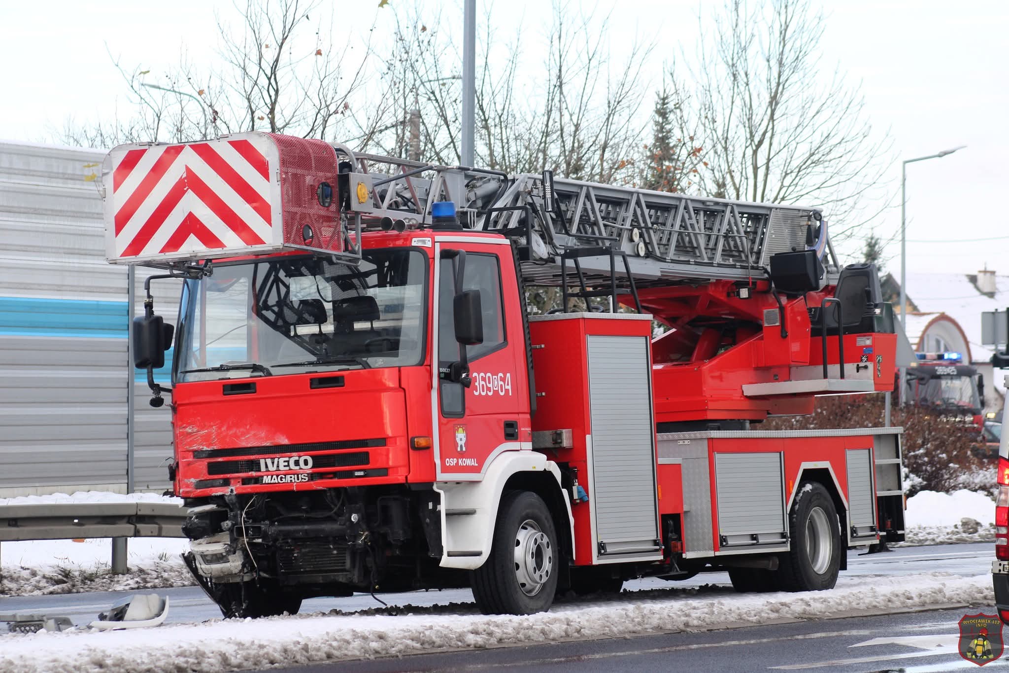 Do zdarzenia doszło w czwartek, 27 listopada, na drodze krajowej nr 91 w miejscowości Kowal. Według wstępnych ustaleń wóz strażacki Ochotniczej Straży Pożarnej w Kowalu, jadący na sygnałach świetlnych i dźwiękowych, wjechał na skrzyżowanie mimo czerwonego światła i zderzył się z samochodem osobowym marki audi. Siła uderzenia była znaczna — samochód osobowy doznał poważnych uszkodzeń, a na jezdni pozostały fragmenty karoserii i rozbite elementy.