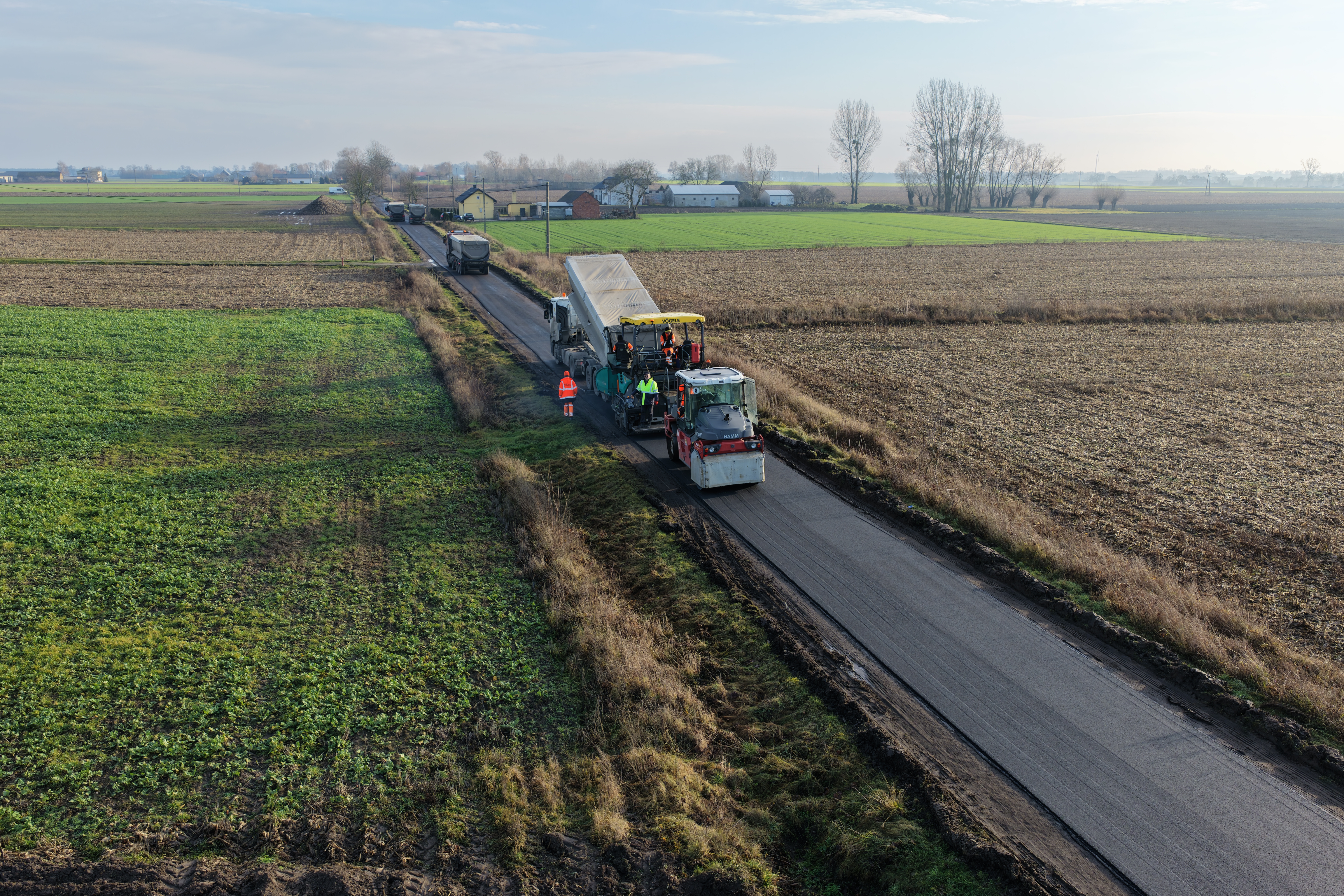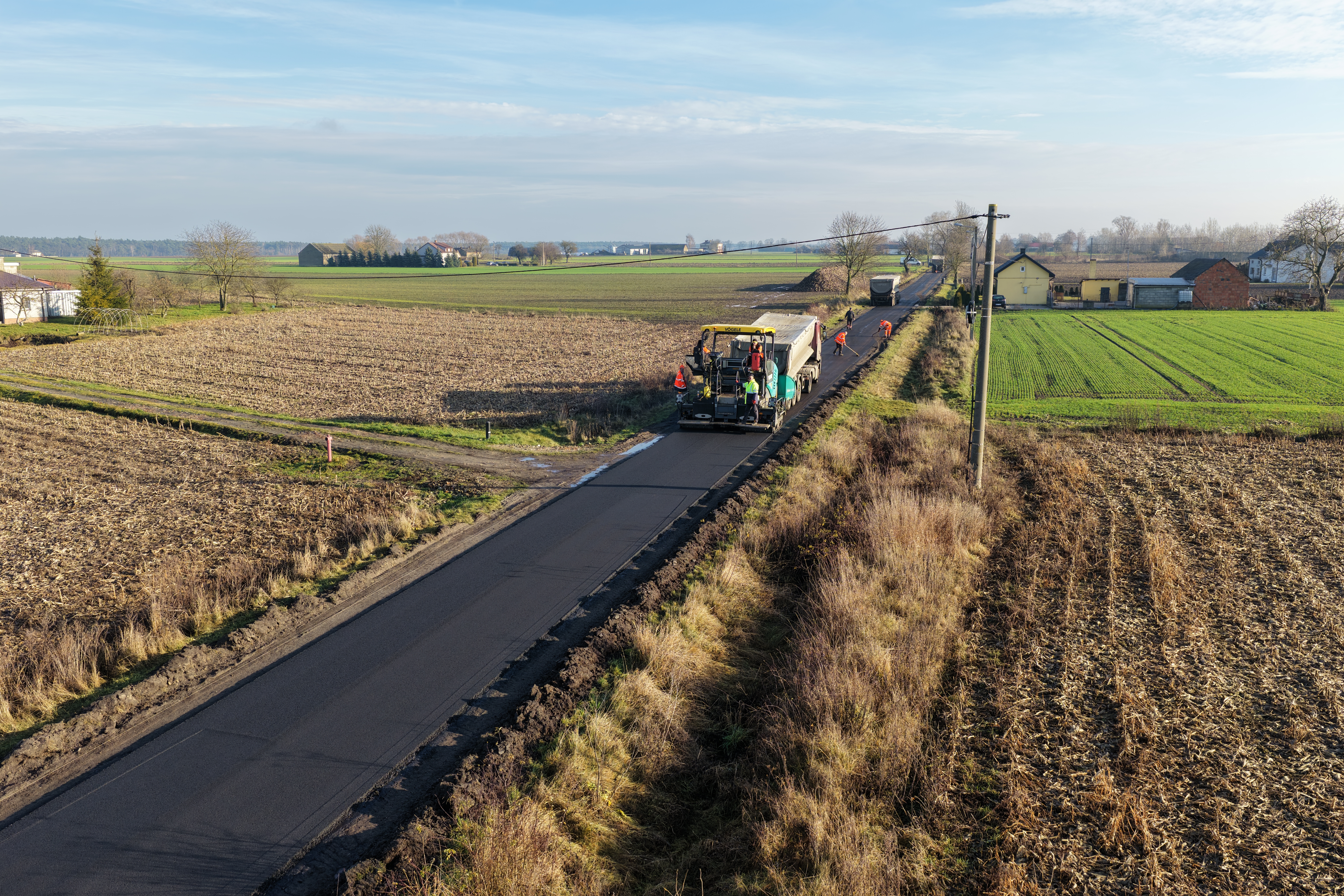Inwestycja obejmuje kompleksowe roboty poprawiające stan techniczny oraz bezpieczeństwo ruchu na kolejnej drodze powiatowej. W ramach prac wykonawca realizuje: wyrównanie istniejącej nawierzchni przy użyciu mieszanki mineralno-asfaltowej, wykonanie warstwy ścieralnej z betonu asfaltowego, mechaniczne ścinanie poboczy o grubości 15 cm, wykonanie obustronnych poboczy.