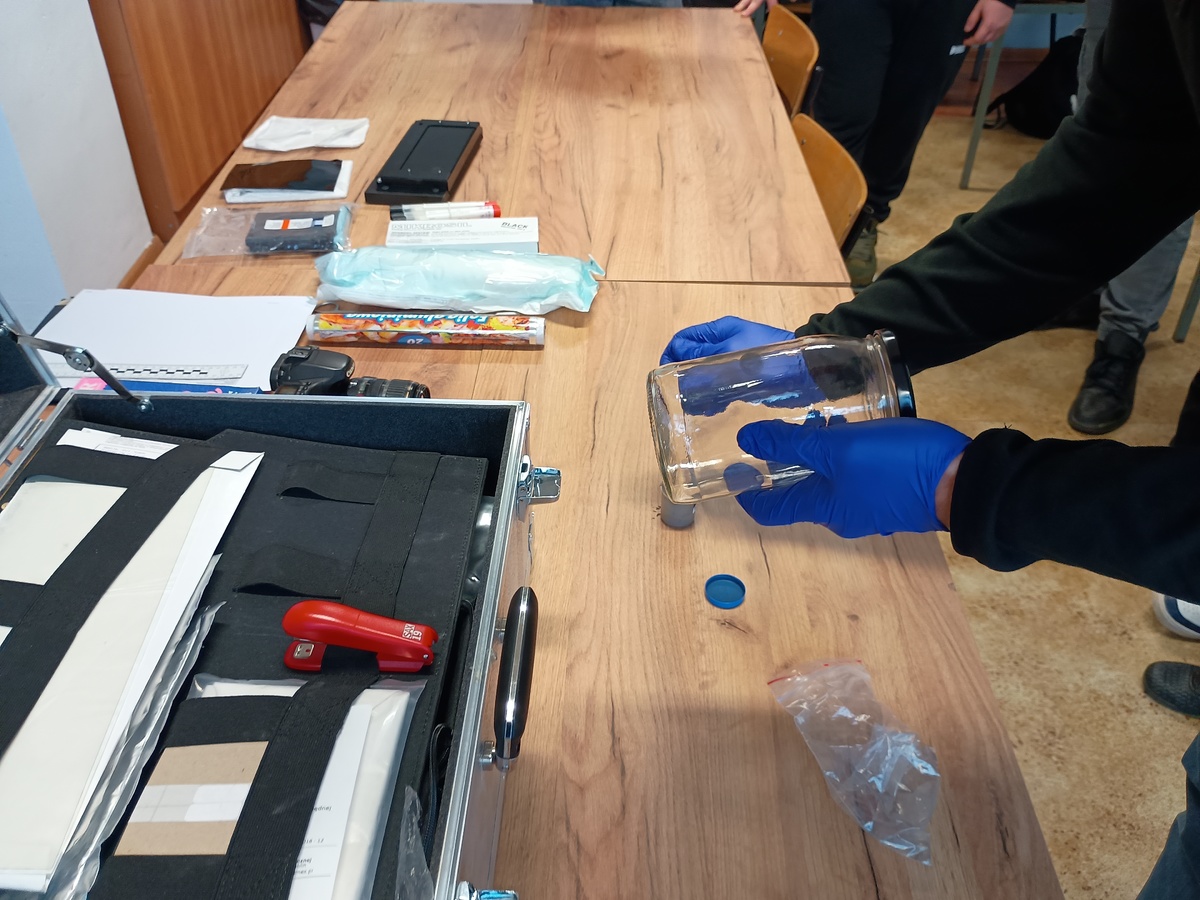 Po części teoretycznej uczestnicy mieli możliwość praktycznego zapoznania się z metodami zabezpieczania śladów, wykorzystywanymi w codziennej pracy policyjnej. Spotkanie cieszyło się dużym zainteresowaniem i było okazją do przybliżenia młodzieży specyfiki służby w Policji oraz możliwych ścieżek rozwoju zawodowego.