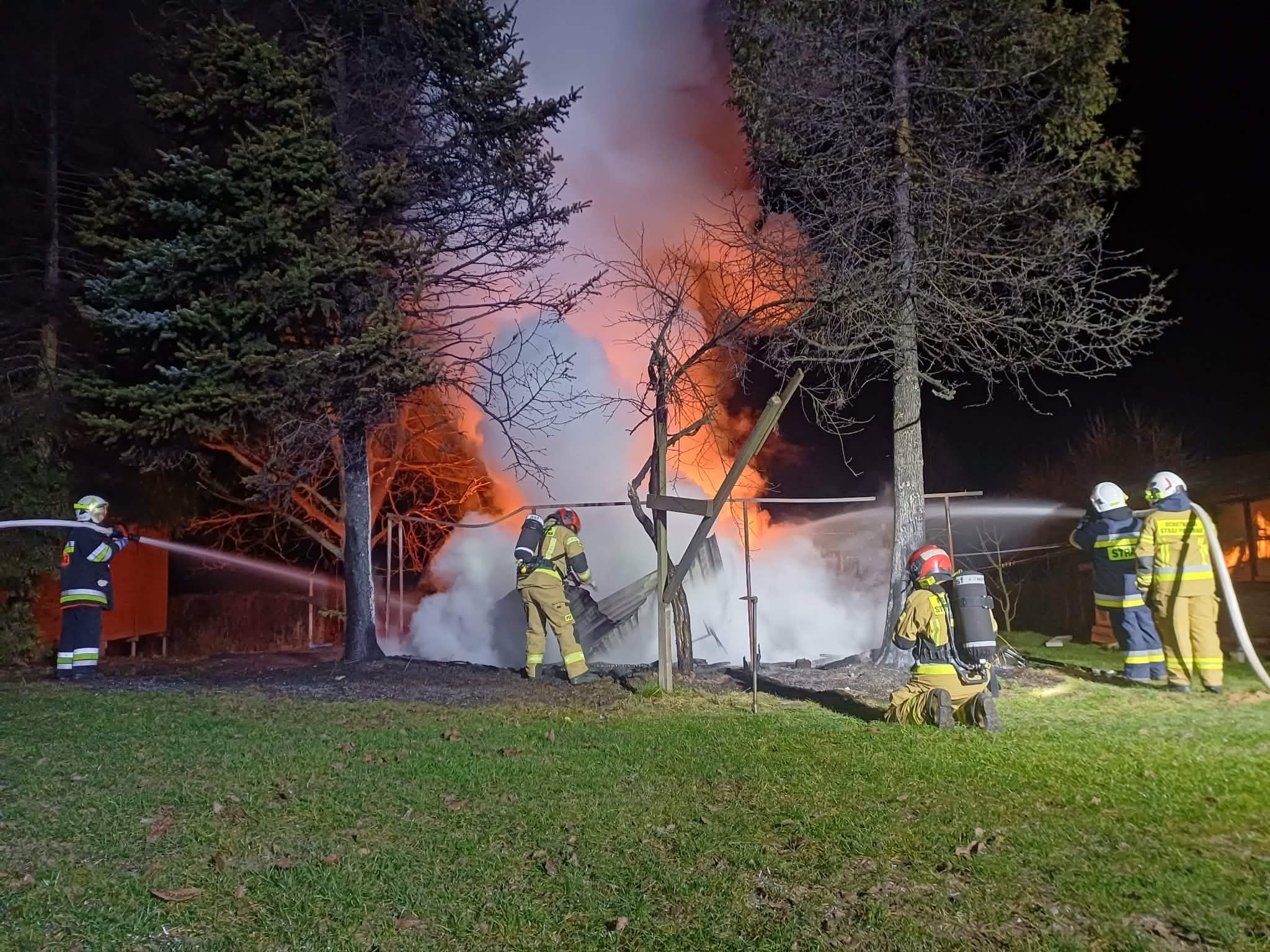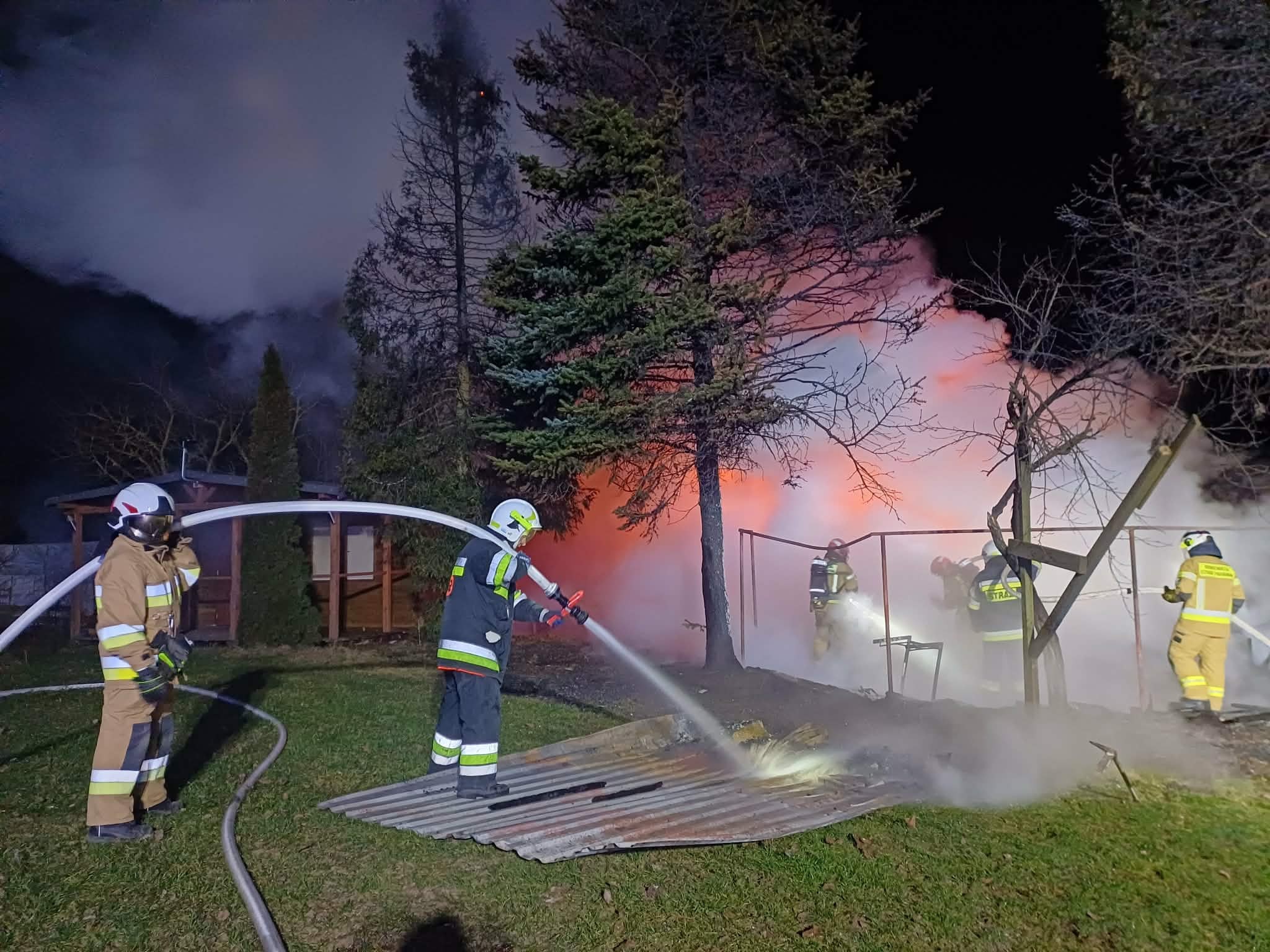 Działania gaśnicze zostały przeprowadzone sprawnie i w sposób skoordynowany. Strażacy skoncentrowali się na opanowaniu ognia oraz zabezpieczeniu sąsiednich zabudowań, co pozwoliło zapobiec rozprzestrzenieniu się pożaru poza teren domku. Akcja przebiegała bez zakłóceń pomimo nocnych warunków. Na szczęście w wyniku zdarzenia nikt nie odniósł obrażeń.