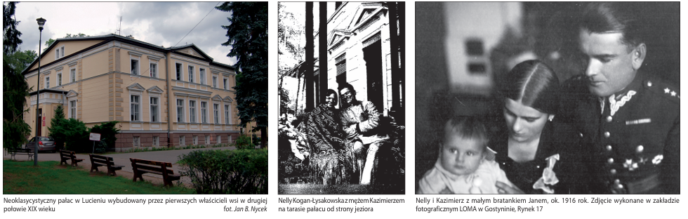 Właścicielką została Żydówka Nelly Helena Kogan, urodzona w 1876 roku w Odessie, córka Adolfa i Łucji Koganów. Rodzina posiadała dobra w Rosji, Włoszech i Belgii. Po stracie majątku w wyniku rewolucji rosyjskiej osiedli we Włoszech. Natomiast Nelly chciała zamieszkać w słowiańskiej części Europy. Córka Koganów była kobietą ładną, choć nieszczęśliwą z powodu garbu i problemów z chodzeniem. Jej ulubionym zajęciem było przesiadywanie w fotelu z kółkami nad jeziorem, do którego wiodła alejka z pałacu. Jezioro Lucieńskie ma rynnowy kształt, jest drugie co do głębokości (maksymalna głębokość 20 m) i trzecie co do powierzchni na całym Pojezierzu Gostynińskim. Z jeziorem związana jest tragiczna historia z 1976 roku braci Huberta i Piotra, synów porucznika Henryka Ossowskiego, byłego żołnierza Hubala, ale o tym napiszemy innym razem.
