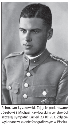 Małżeństwo Łysakowskich nie miało własnych dzieci, usynowili więc dzieci brata Kazimierza, w tym Jana, urodzonego w 1913 roku. Pod wpływem stryja Jan wstąpił do Szkoły Podchorążych Rezerwy Kawalerii w Grudziądzu. W 1936 roku został awansowany na stopień podporucznika rezerwy i przydzielony do 10. Pułku Strzelców Konnych, stacjonującego w Łańcucie. W latach 1936–1939 mieszkał w Lucieniu i pomagał w administrowaniu majątkiem. Z powodu zagrożenia wojną i mobilizacji udał się do Łańcuta.