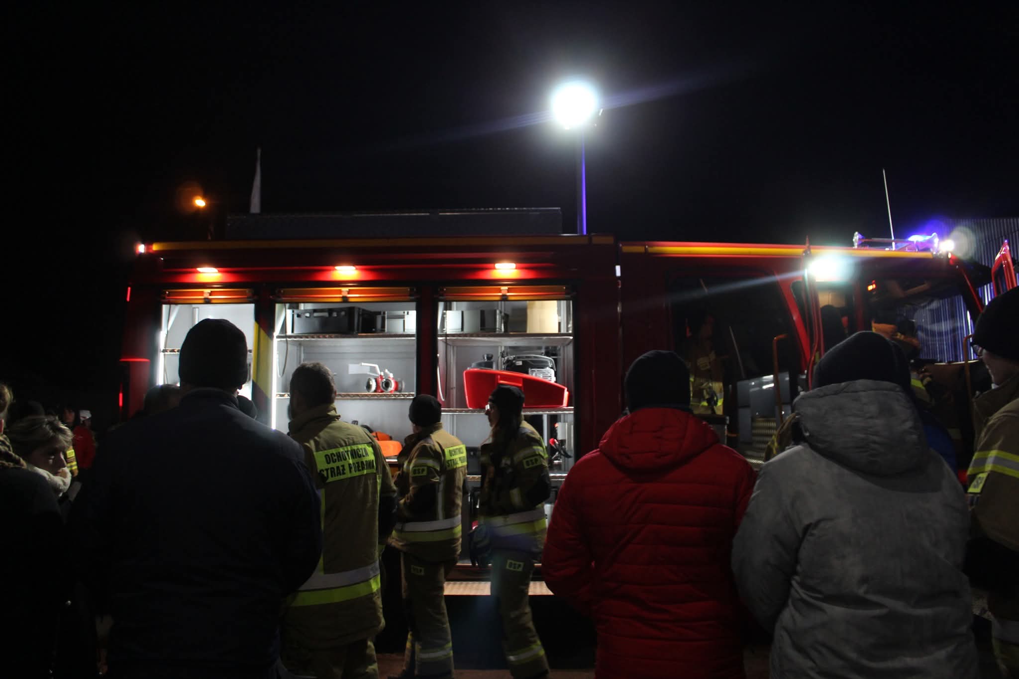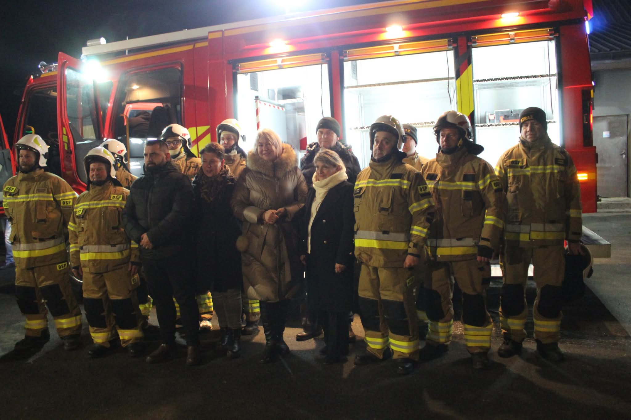 Przyjazd nowego pojazdu odbył się w uroczystej oprawie: kolumna 11 pojazdów strażackich z zaprzyjaźnionych jednostek OSP towarzyszyła wozowi przy dźwiękach syren, blasku flar i pokazie fajerwerków. Wydarzenie zgromadziło druhów, przedstawicieli władz gminy, licznych mieszkańców, sympatyków oraz zaproszonych gości, co podkreśliło wagę tej chwili dla całej społeczności.