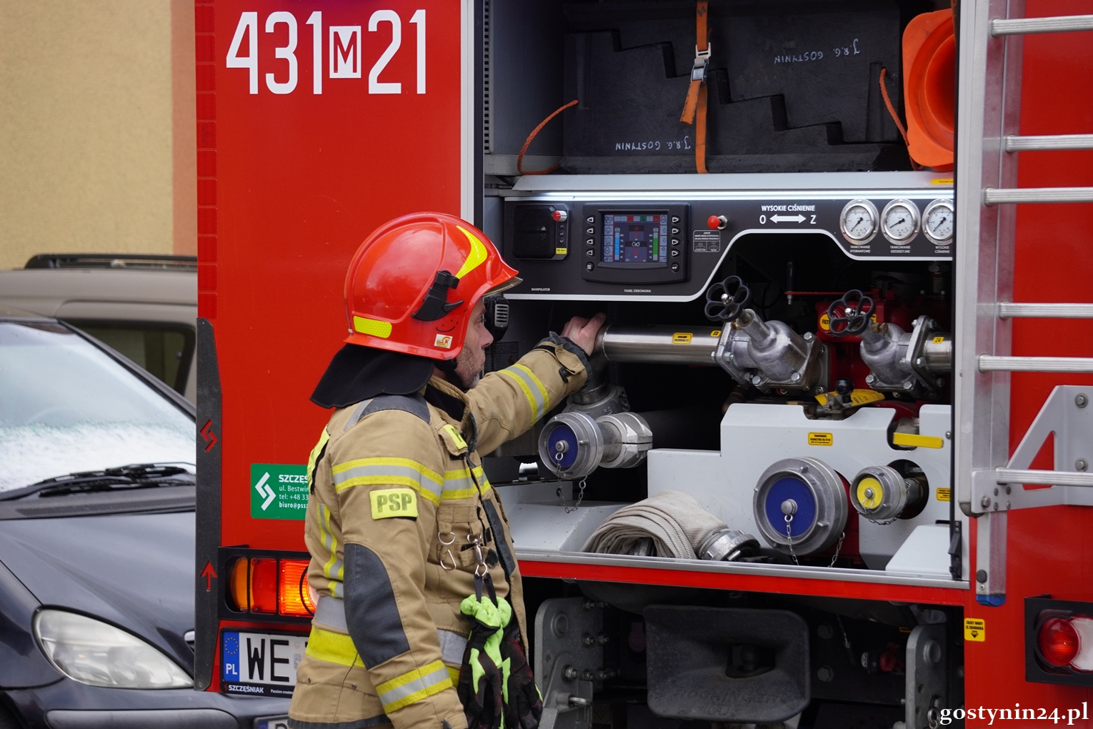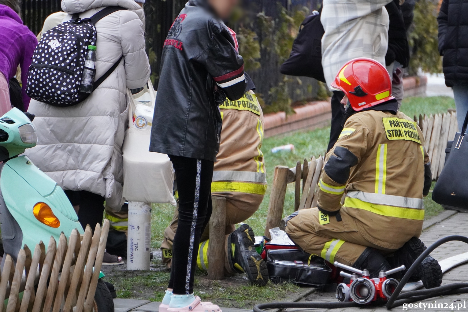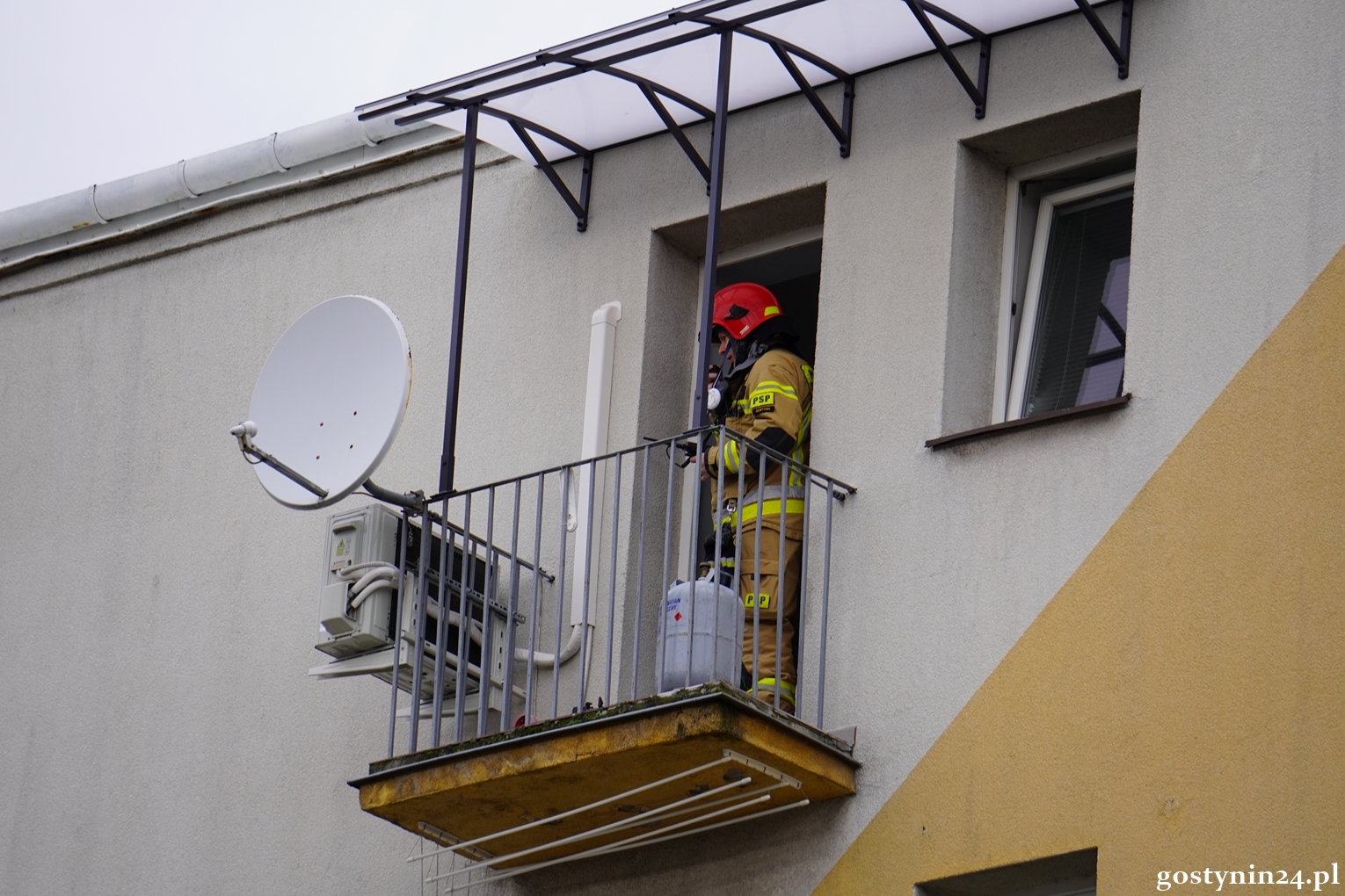 Strażacy przystąpili niezwłocznie do działań gaśniczych oraz zabezpieczenia miejsca zdarzenia, szybko opanowali ogień i ugasili pożar gaśnicą proszkową. Z mieszkania wyniesiono butlę propan-butan i umieszczono ją na balkonie, by wyeliminować ryzyko wybuchu i dalszego rozprzestrzeniania się ognia. Przewietrzono pomieszczenia oraz sprawdzono je pod względem obecności tlenku węgla.