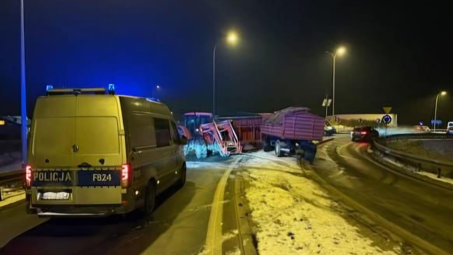 Do zdarzenia doszło we wtorek, 6 stycznia około godziny 18:00 na drodze krajowej nr 60 w miejscowości Sójki. Traktorzysta stracił panowanie nad przyczepą, która przewróciła się na bok, blokując jeden pas ruchu.