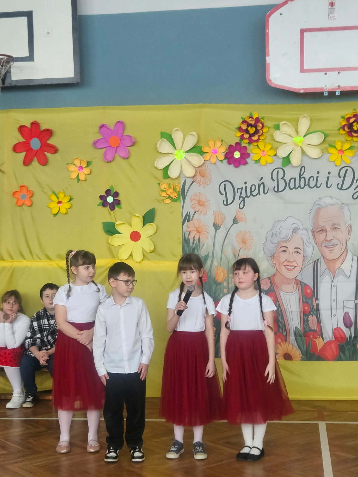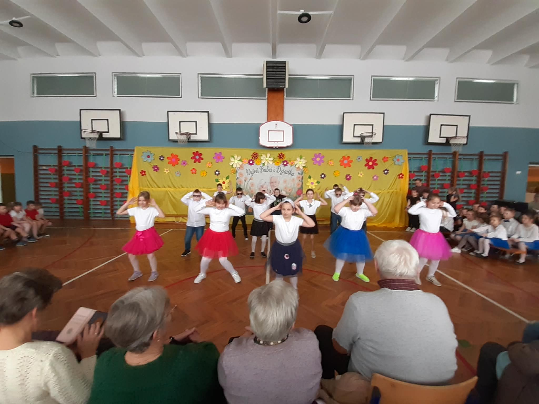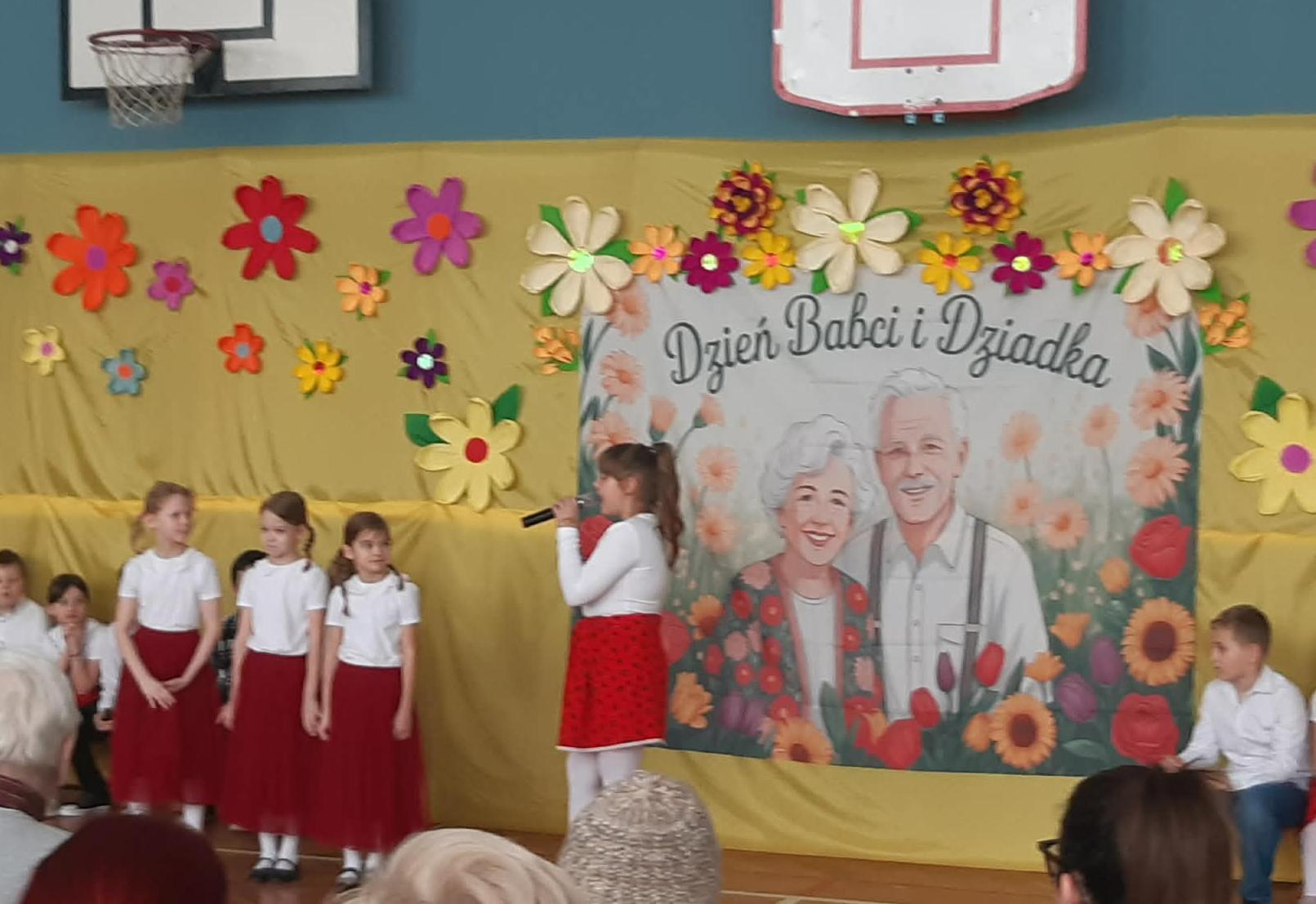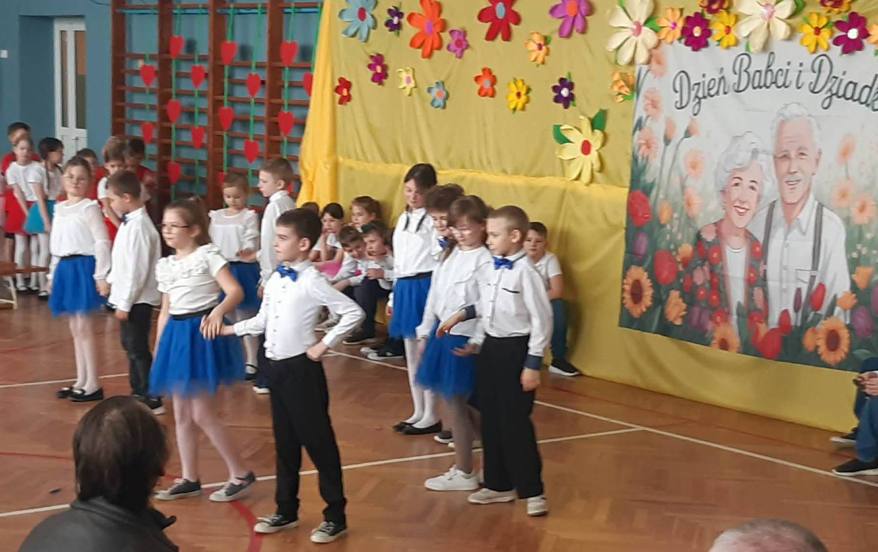 Nieco wcześniej ze względu na to, iż od poniedziałku rozpoczynają się ferie zimowe. Najmłodsi uczniowie zaprosili swoje babcie i dziadków, aby w przygotowanym programie artystycznym podziękować im za miłość, troskę i czas, który poświęcają wnukom. Dzieci zaprezentowały tańce tradycyjne (poloneza, poleczkę i walczyka) i nowoczesne. Śpiewały piosenki, w których pokazały jak dobre jest przebywanie u babci i dziadka. Wierszem wyraziły swoją miłość i troskę o ukochane osoby. Każde dziecko miało możliwość pokazania swoich talentów wokalnych, tanecznych, recytatorskich albo gimnastycznych. Radość na twarzach dzieci pokazała ogromne ich zaangażowanie w każdą część występu. A radość i duma gościła na twarzach dziadków i babć. Na koniec każda babcia i dziadek otrzymali drobny upominek od wnucząt.