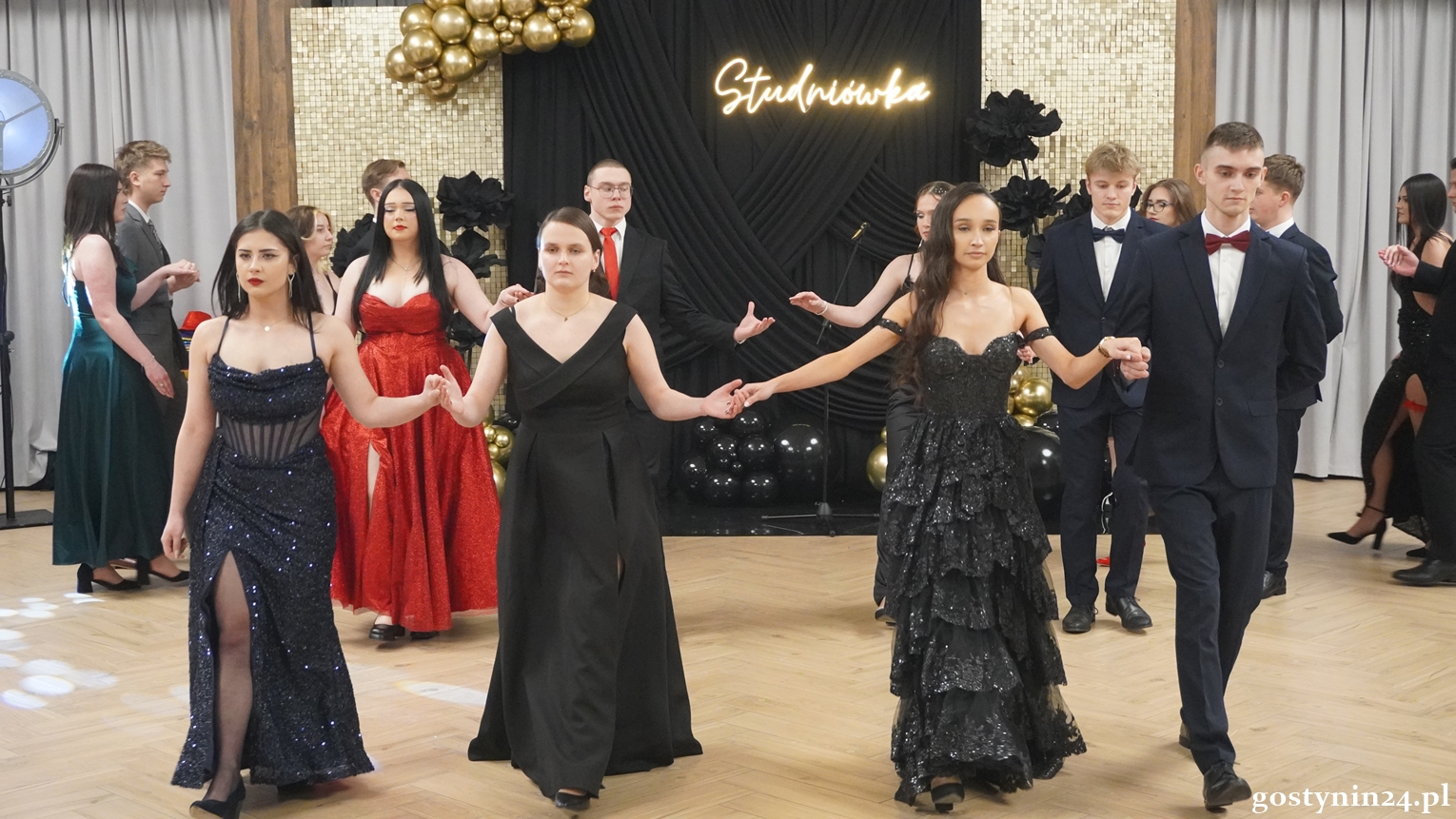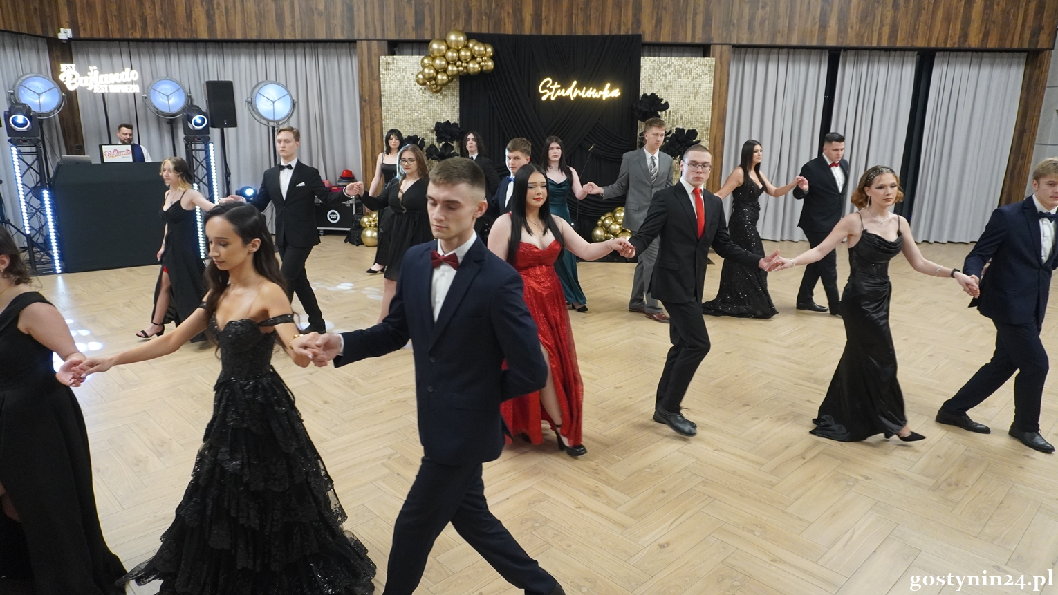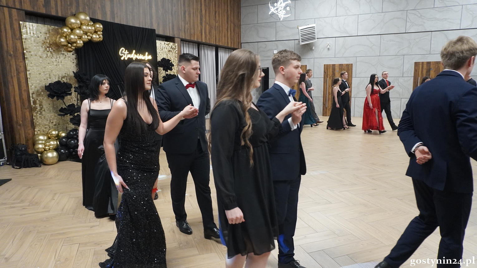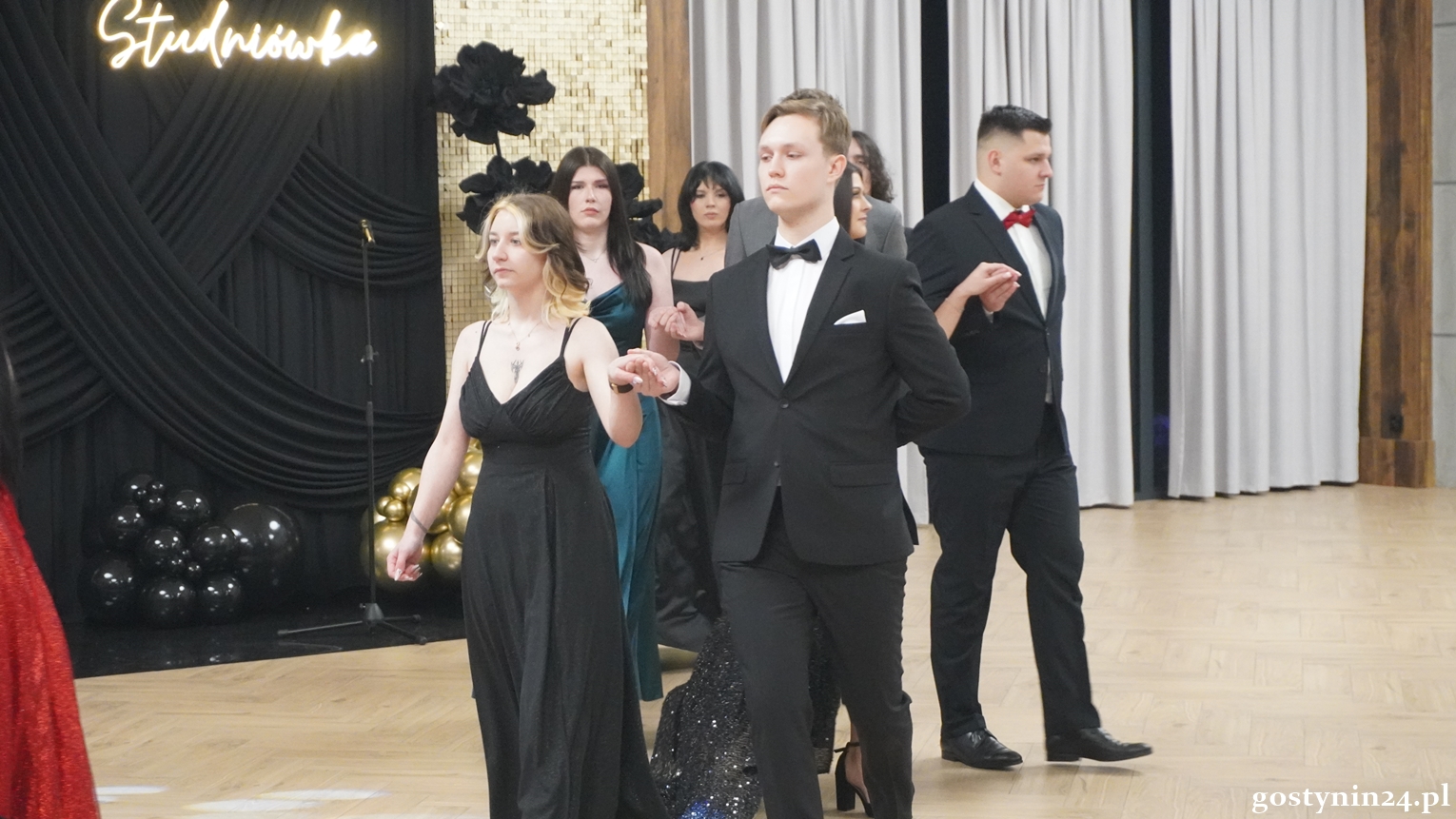 Poloneza w pierwszej parze zatańczył dyrektor Gostynińskiego Centrum Edukacyjnego Wojciech Kiełbasa. Studniówkę poprowadzili Ewelina Przygórska i Jakub Folgier. Młodzież bawi się przy muzyce Krzysztofa "Bajlando" Wichrowskiego.