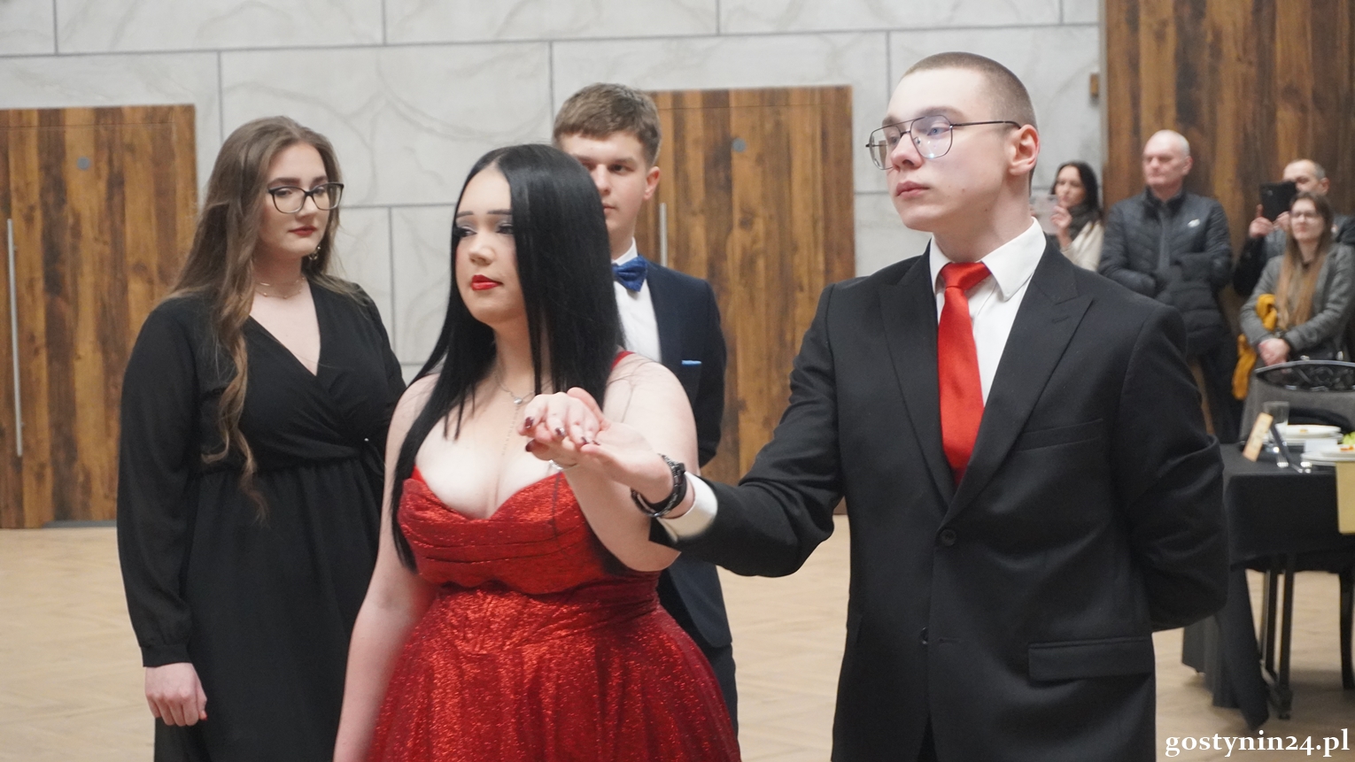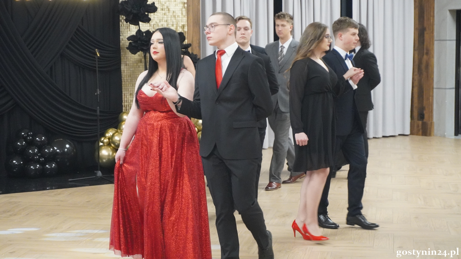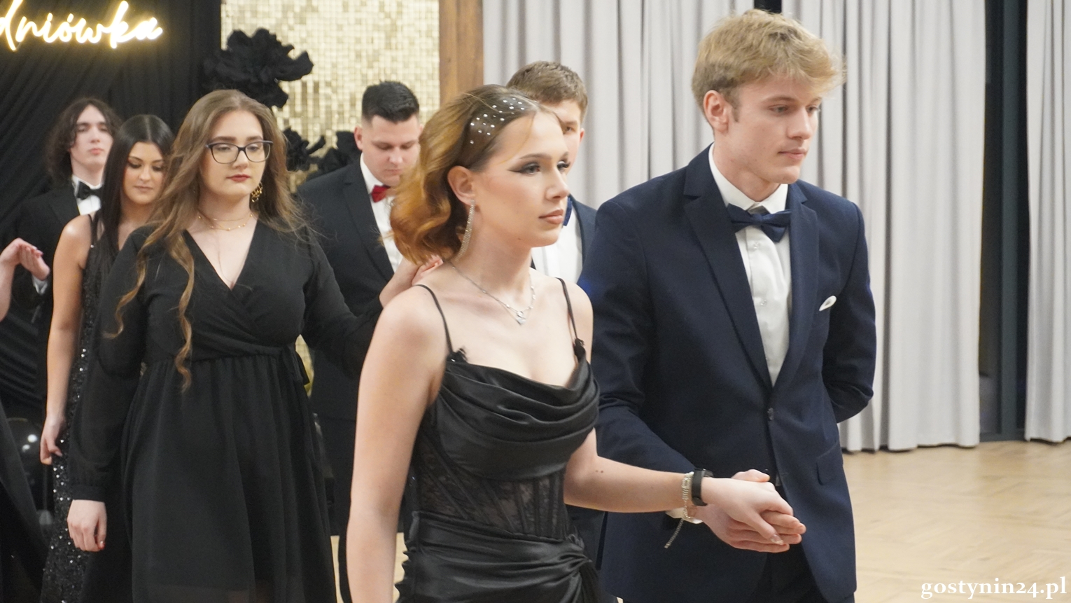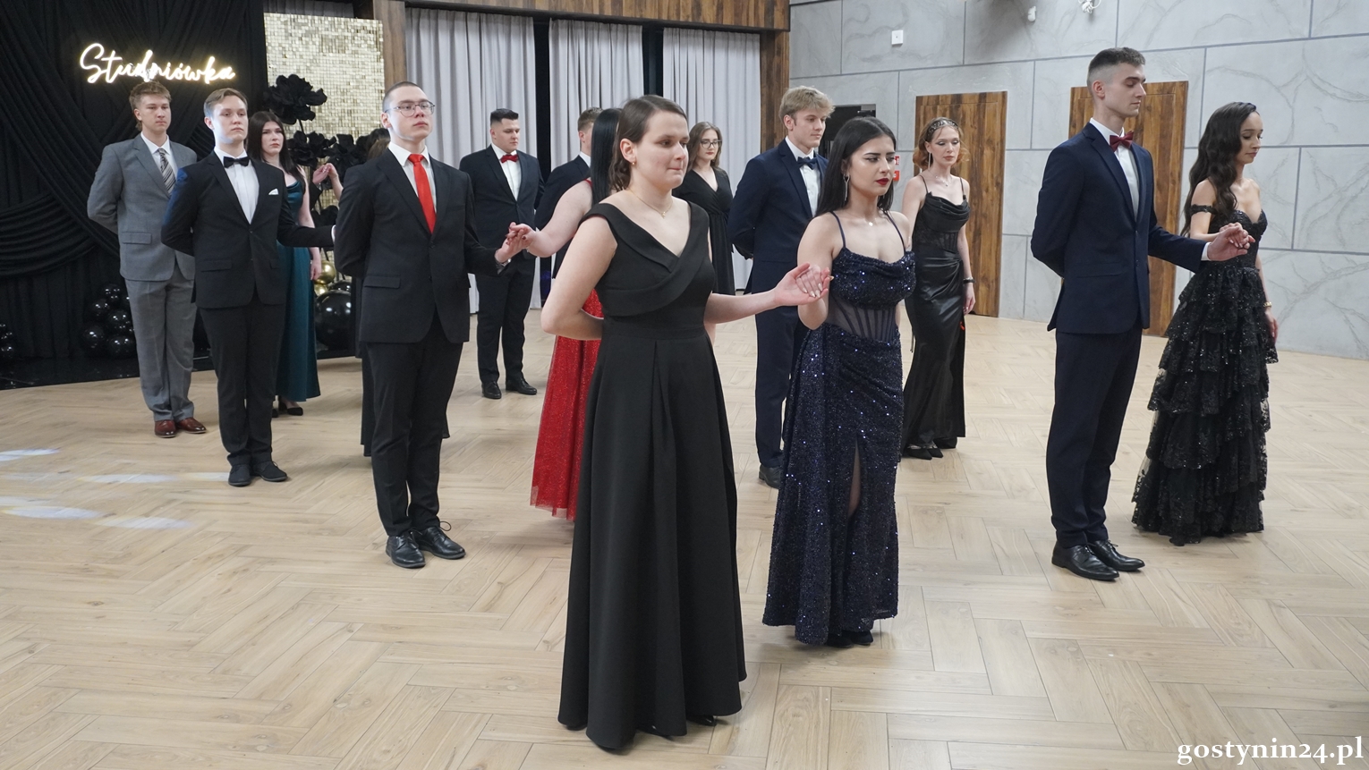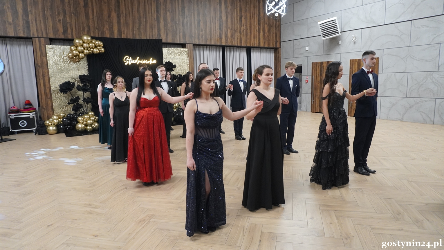 Poloneza w pierwszej parze zatańczył dyrektor Gostynińskiego Centrum Edukacyjnego Wojciech Kiełbasa. Studniówkę poprowadzili Ewelina Przygórska i Jakub Folgier. Młodzież bawi się przy muzyce Krzysztofa "Bajlando" Wichrowskiego.