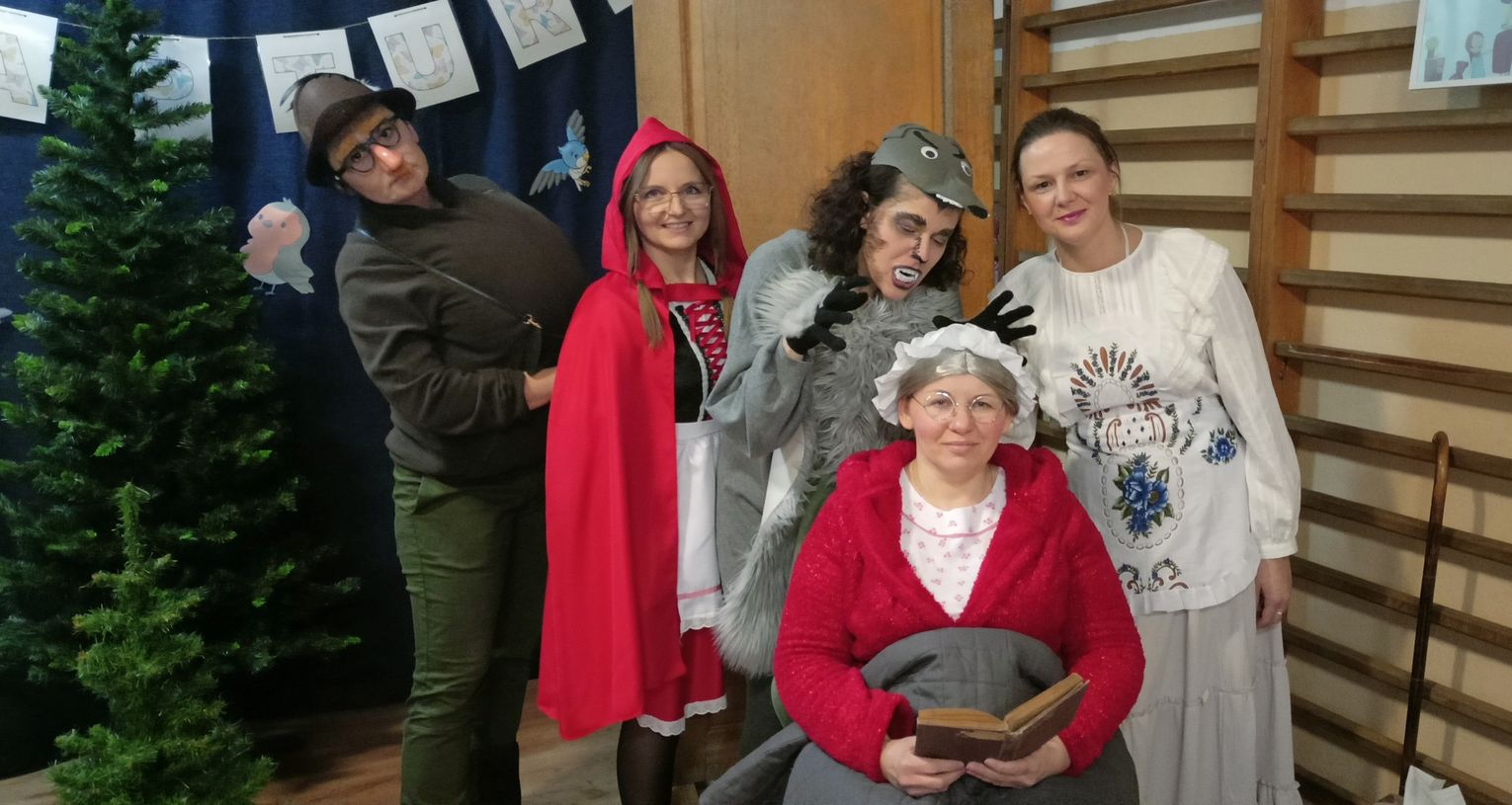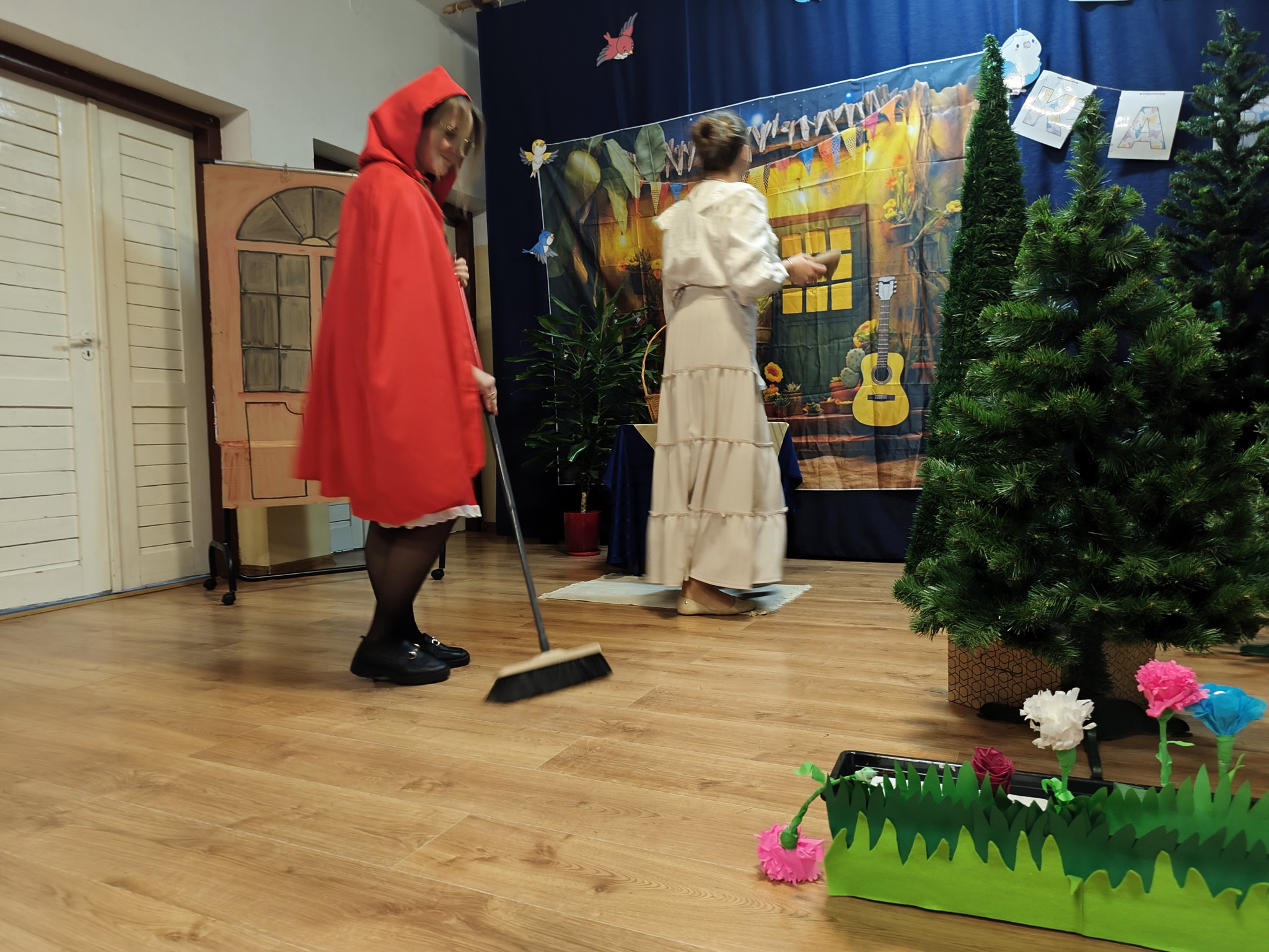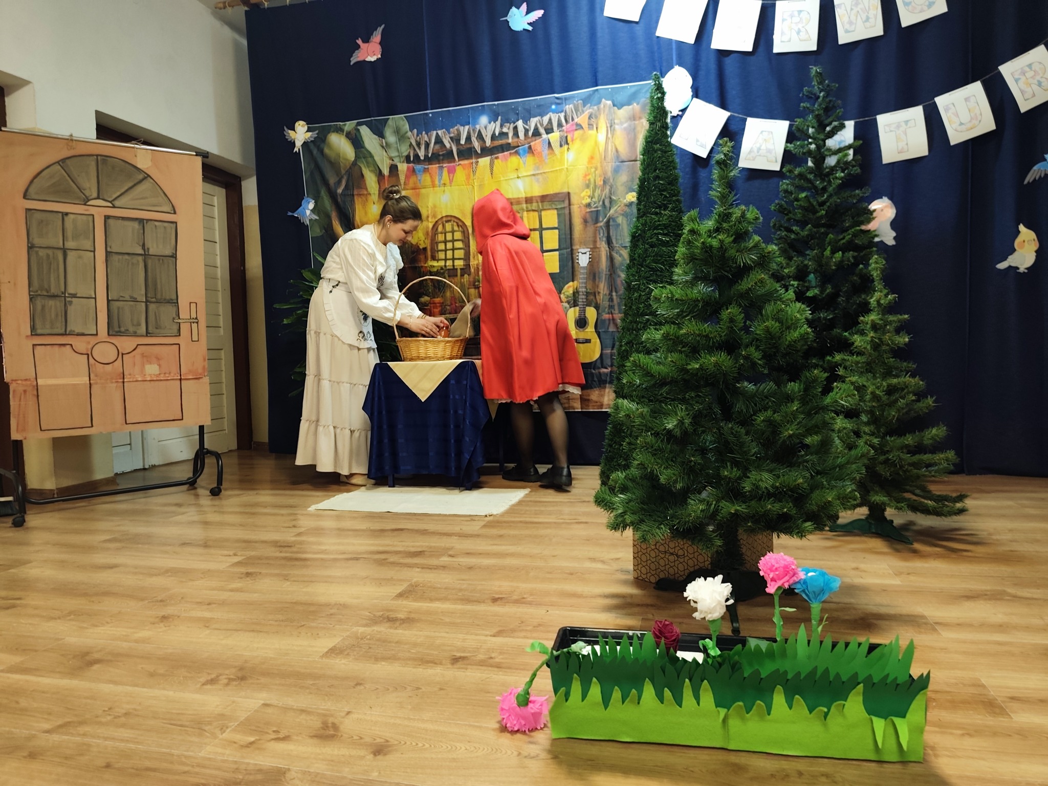 W tym roku mogliśmy podziwiać na naszej scenie znaną baśń „Czerwony Kapturek” w nowej, pełnej humoru odsłonie. Barwne kostiumy, starannie przygotowana scenografia, a przede wszystkim ogromne zaangażowanie nauczycieli i rodziców sprawiły, że widownia od pierwszych minut była zachwycona. Nie zabrakło śmiechu i akcji pełnej momentów zaskoczenia. Aktorzy potrafili nawiązać z publicznością żywą interakcję, co oczywiście najbardziej spodobało się najmłodszym.