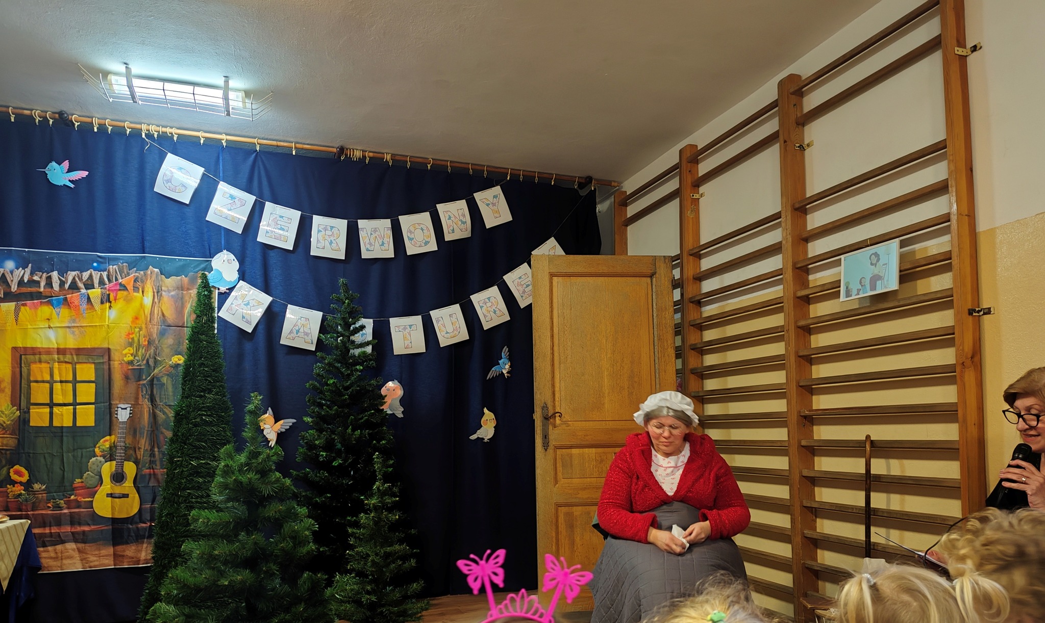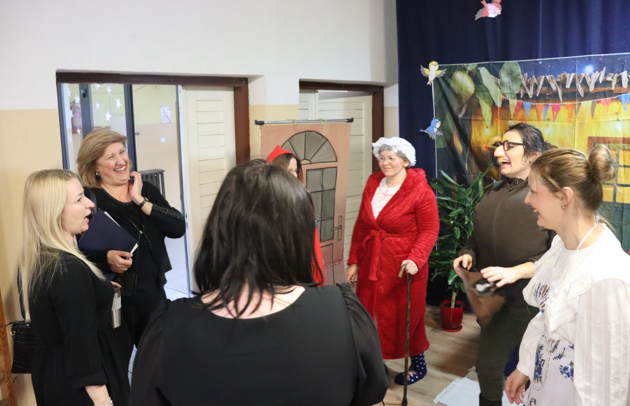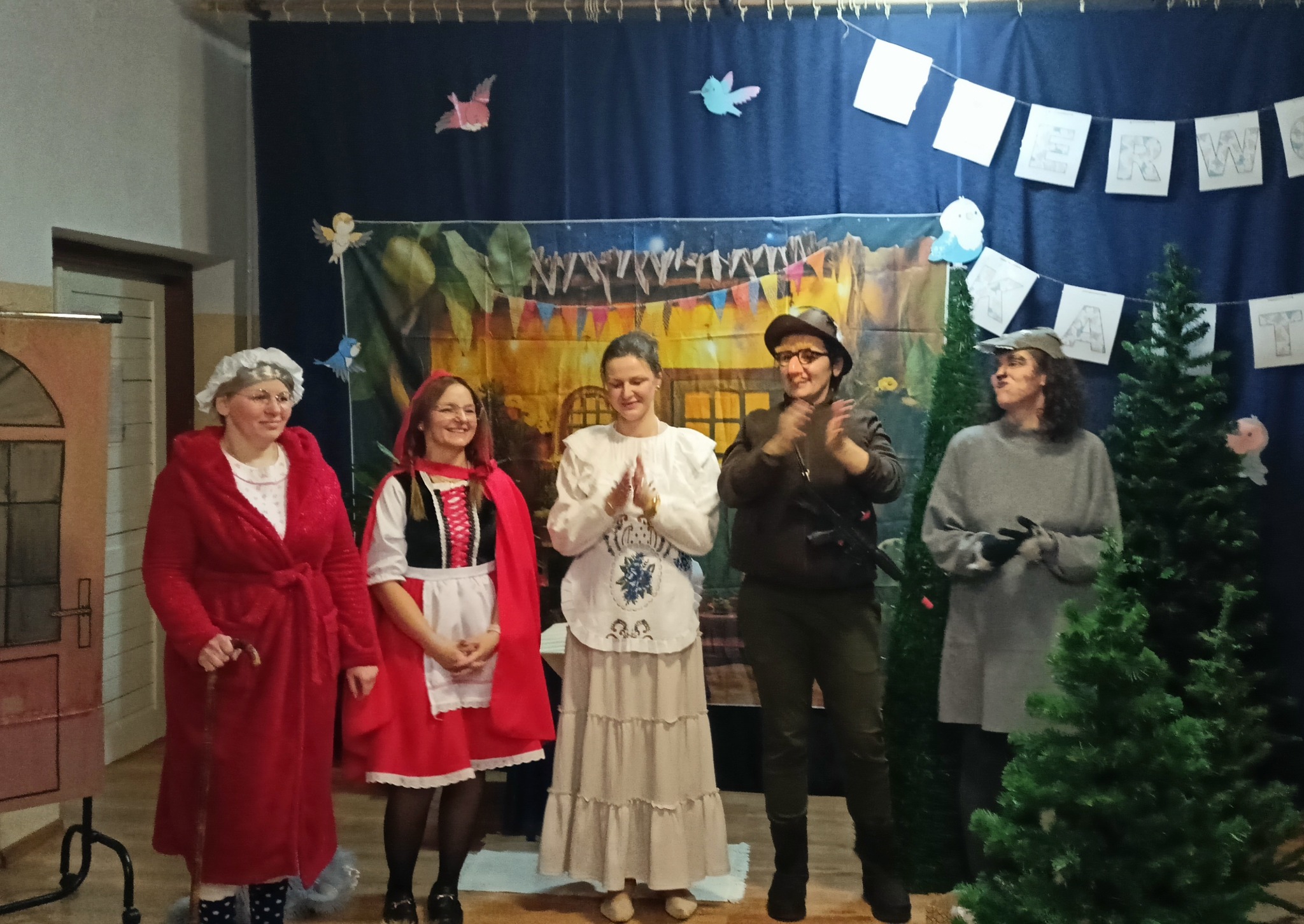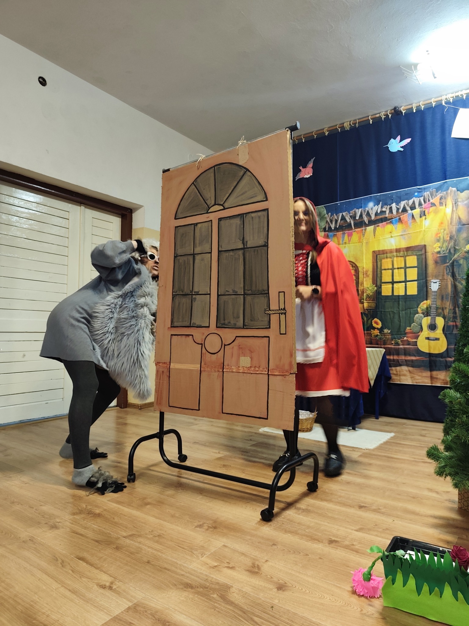 W tym roku mogliśmy podziwiać na naszej scenie znaną baśń „Czerwony Kapturek” w nowej, pełnej humoru odsłonie. Barwne kostiumy, starannie przygotowana scenografia, a przede wszystkim ogromne zaangażowanie nauczycieli i rodziców sprawiły, że widownia od pierwszych minut była zachwycona. Nie zabrakło śmiechu i akcji pełnej momentów zaskoczenia. Aktorzy potrafili nawiązać z publicznością żywą interakcję, co oczywiście najbardziej spodobało się najmłodszym.