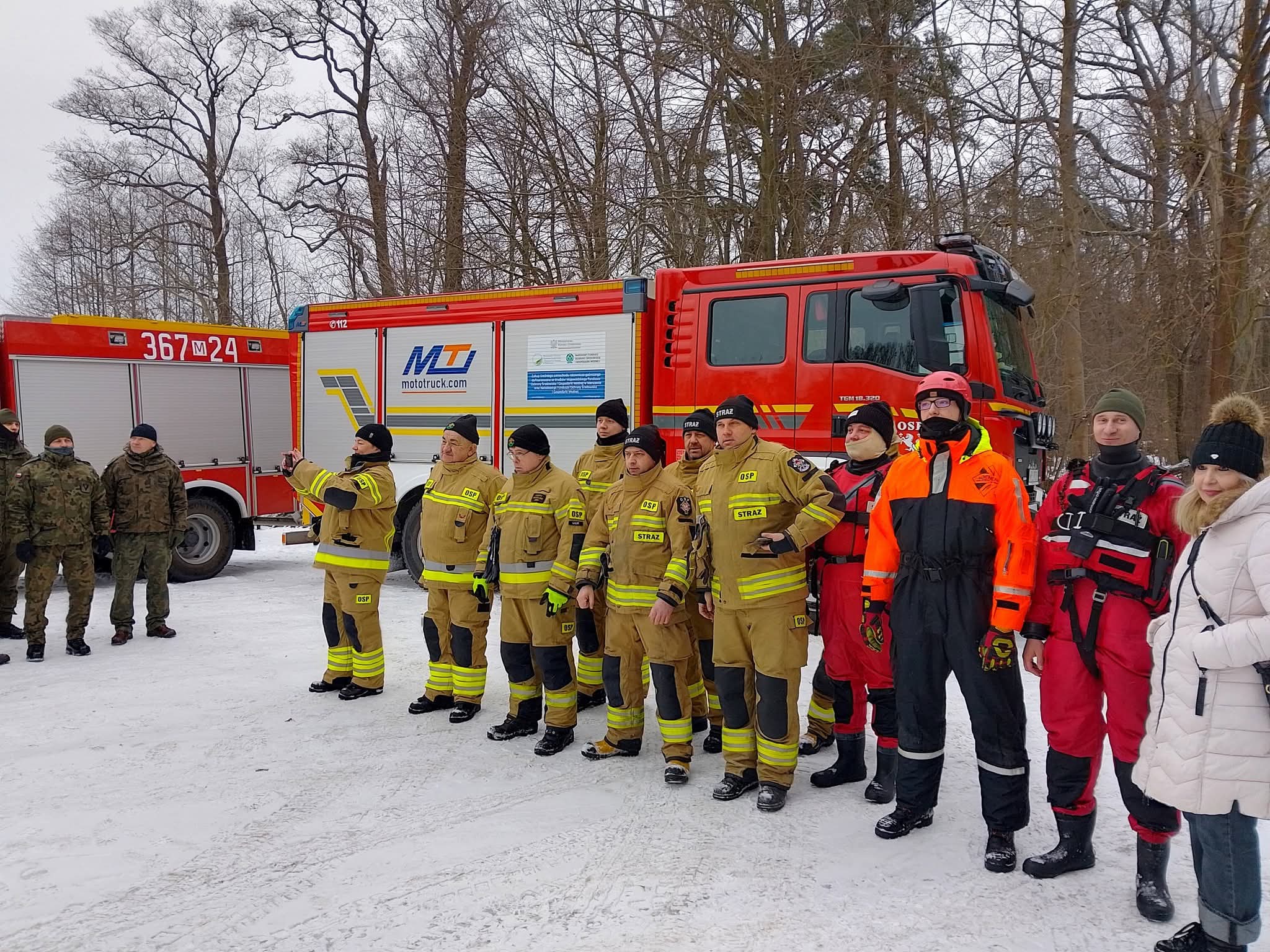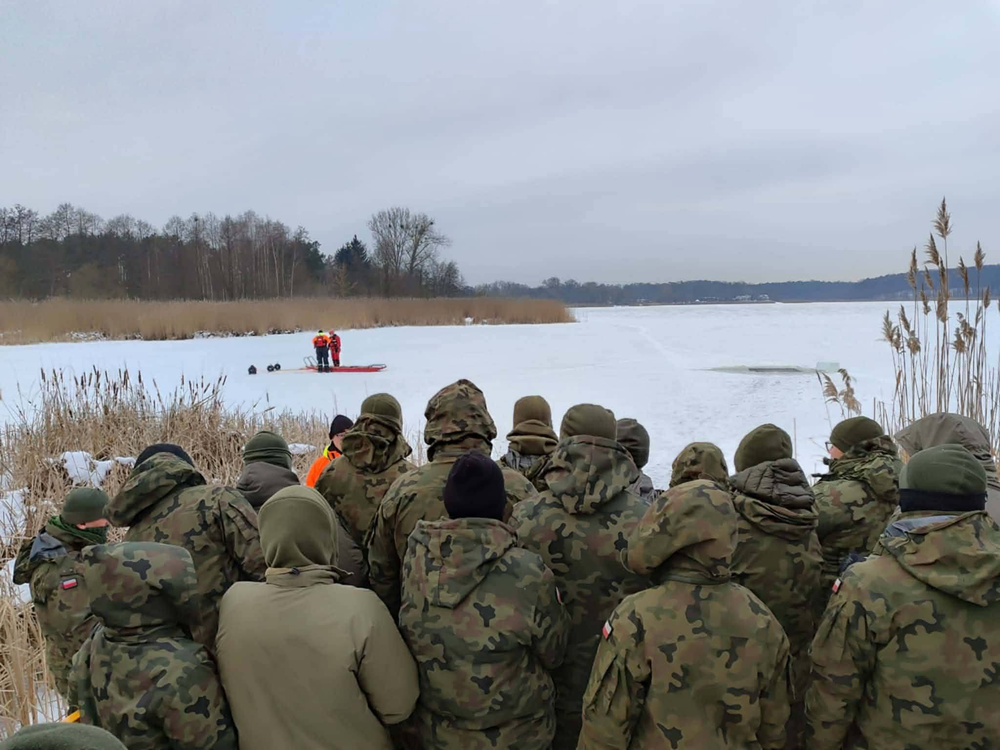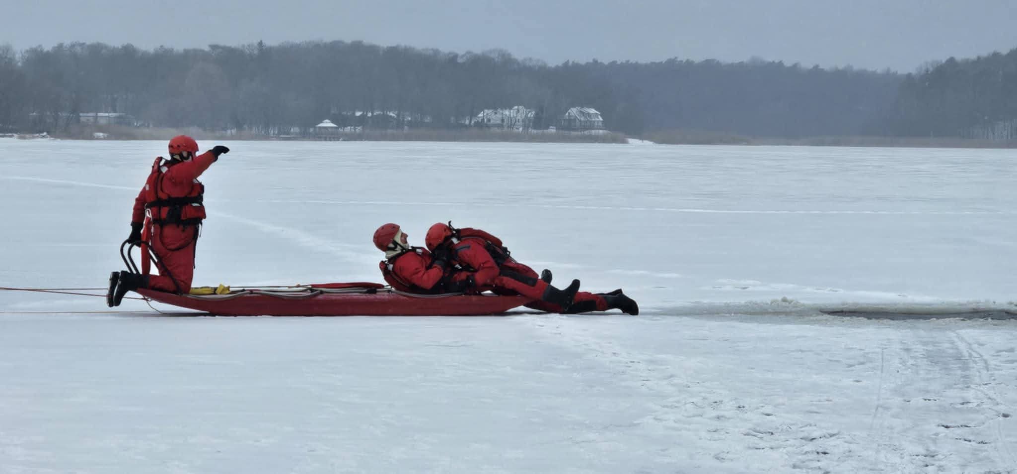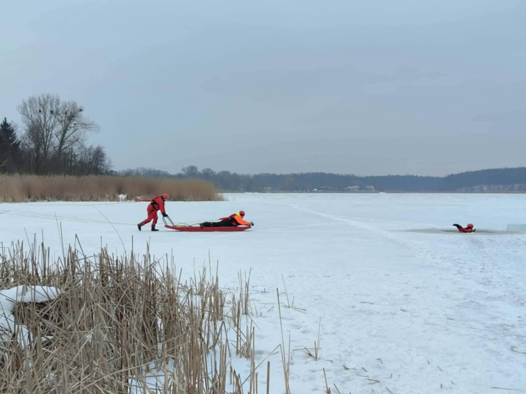 Ćwiczenia miały charakter warsztatowy i były podzielone na trzy specjalistyczne stanowiska. Pierwsze stanowisko poświęcone było ratownictwu wodno-lodowemu. Ratownicy przećwiczyli scenariusz, w którym pozorant znalazł się w wodzie po załamaniu się lodu. Instruktorzy przypomnieli zasady bezpiecznego podejścia do krawędzi przerębla, użycia lin ratowniczych oraz technik wyciągania poszkodowanego przy zachowaniu bezpieczeństwa własnego i zespołu. Ćwiczenia obejmowały także praktyczne wykorzystanie sprzętu i układanie taktyki działania w zmieniających się warunkach lodowych.