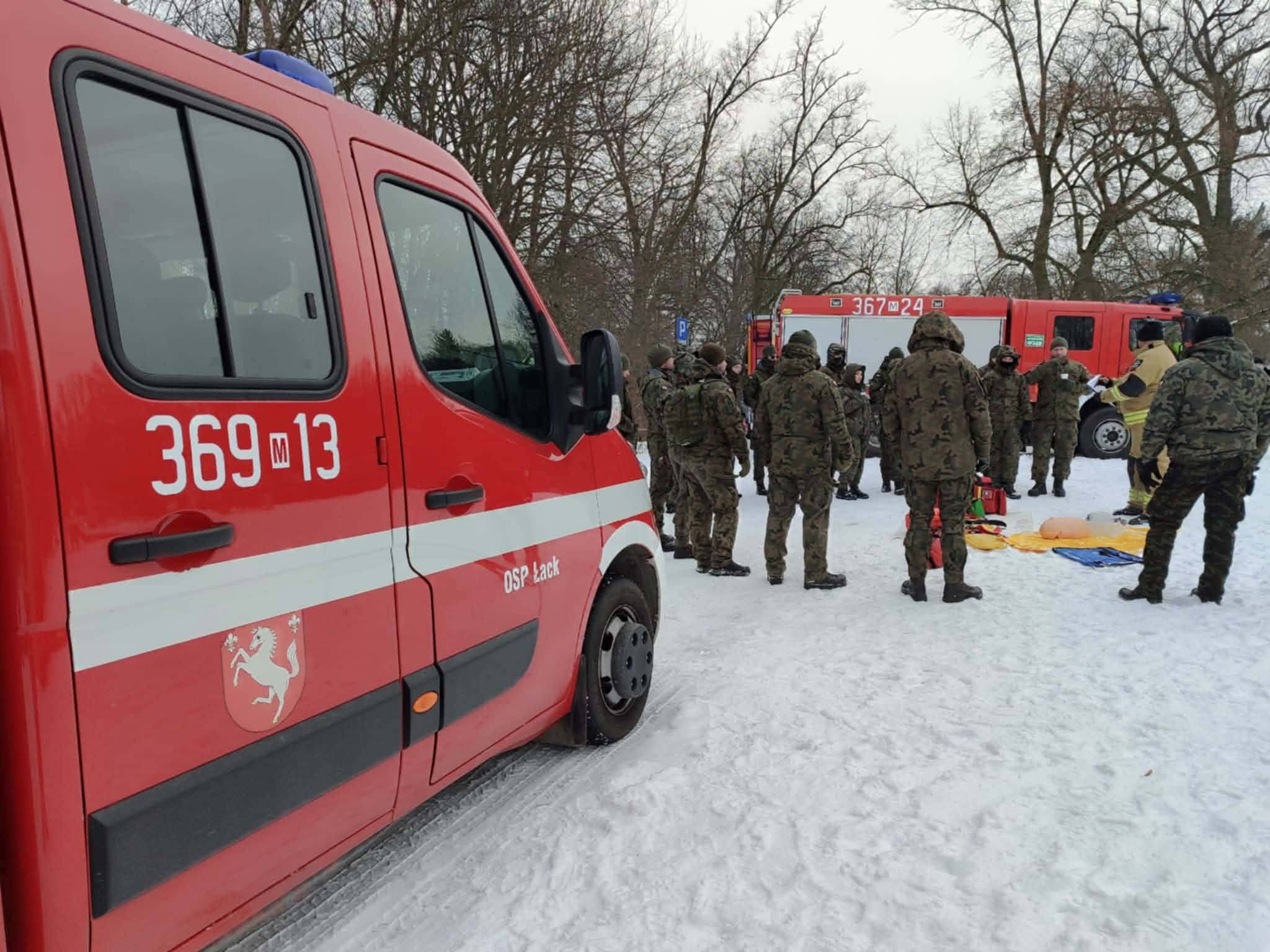 Sobotnie ćwiczenia nad jeziorem Łąckim Dużym, przy ulicy Rusałki, zorganizowano z myślą o doskonaleniu praktycznych umiejętności ratowniczych i współpracy między służbami. W działaniach wzięły udział jednostki OSP Łąck, OSP Korzeń oraz 64. Batalion Lekkiej Piechoty Wojsk Obrony Terytorialnej.