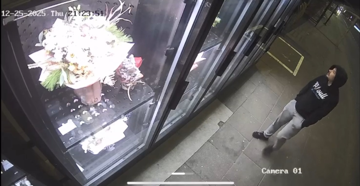 Do zdarzenia doszło 25 grudnia 2025 roku. Sprawca przy ulicy Okrzei 70 we Włocławku po wybiciu szyby w kwiatomacie dokonał kradzieży bukietu kwiatów.